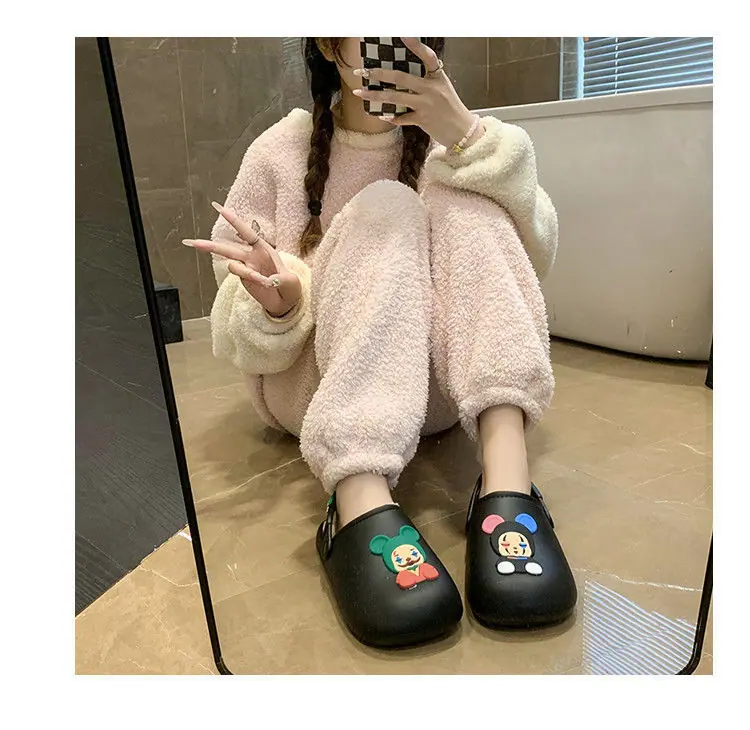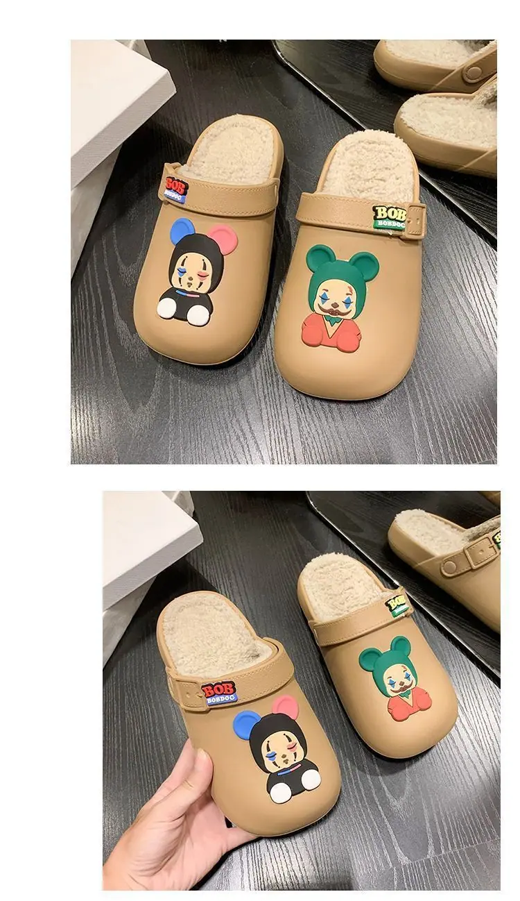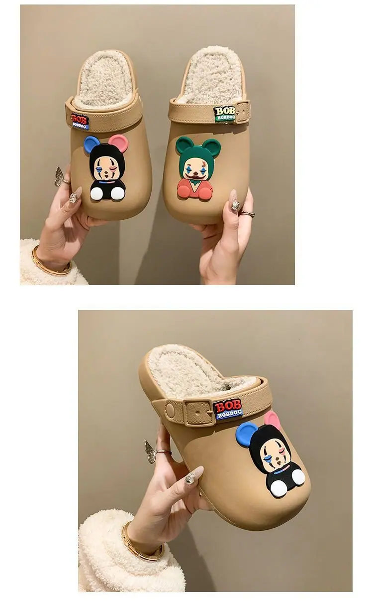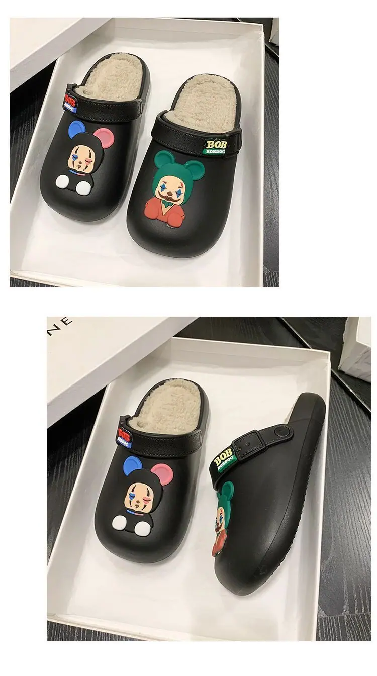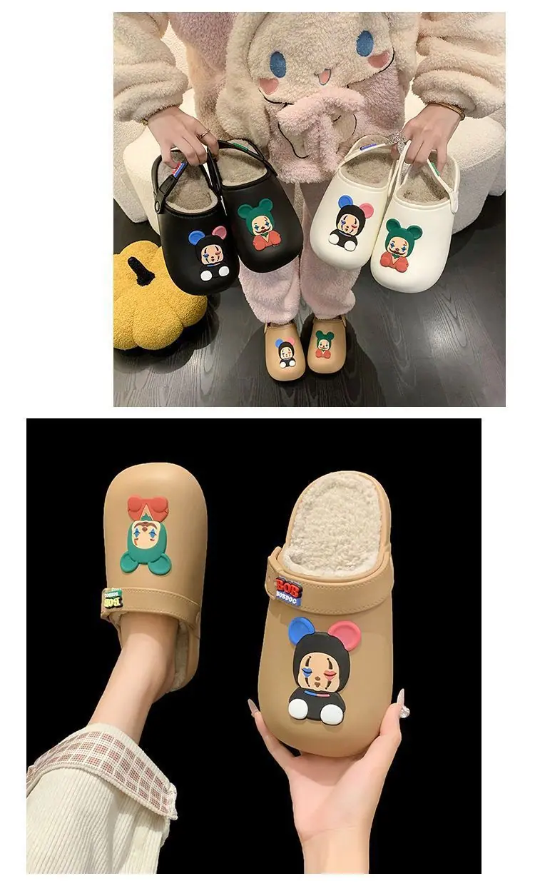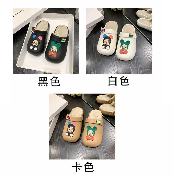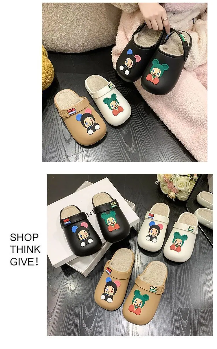 Pantuflas de algodón más pantuflas peludas de terciopelo pantuflas de punta cerrada invierno exterior cálido 2025 antideslizantes nuevo dibujo animado interior hogar
