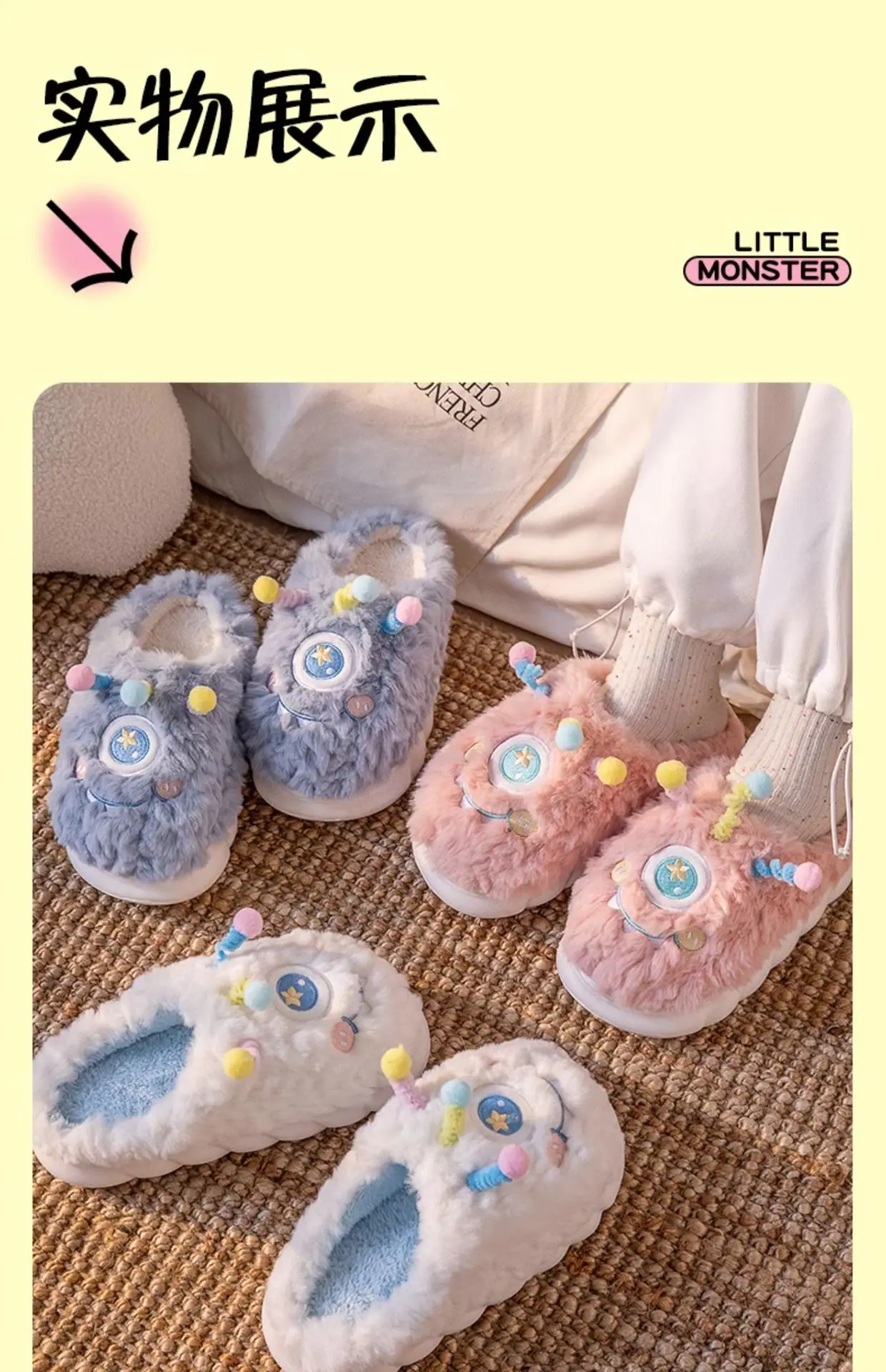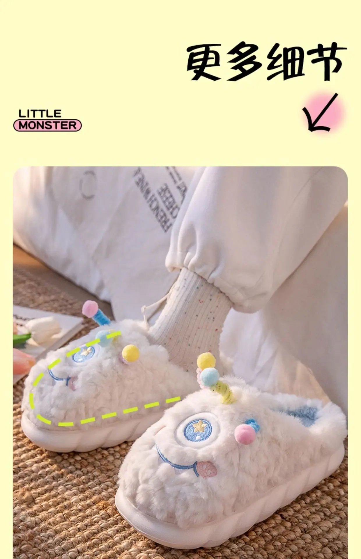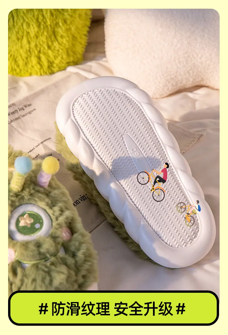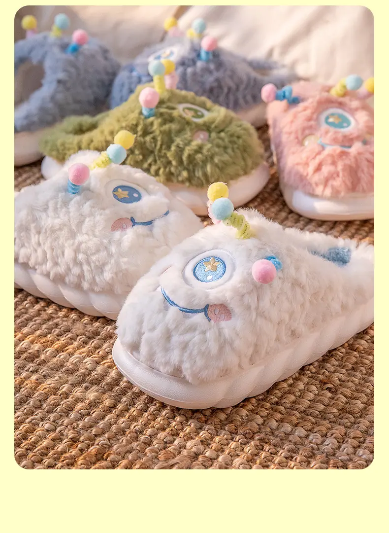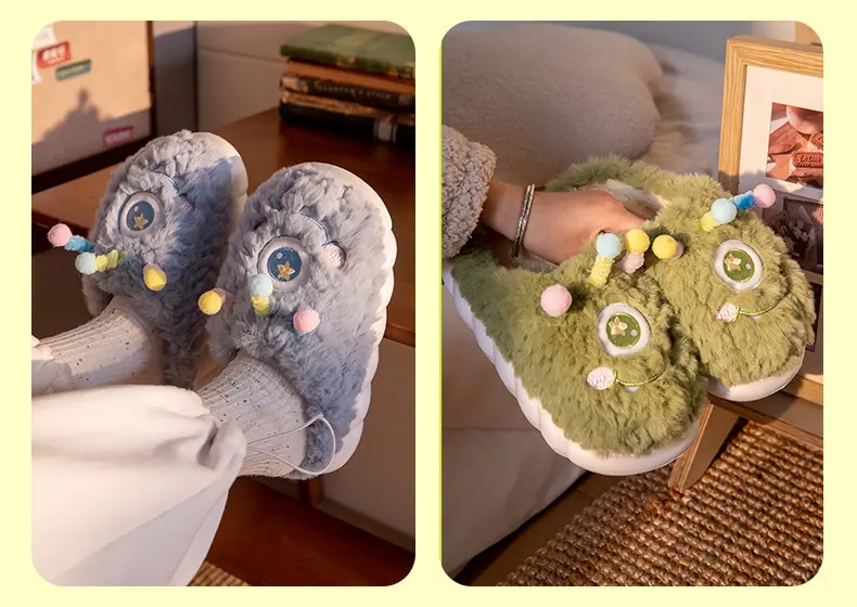 Fábrica de Zapatos Qidan Pantuflas de Algodón de Dibujos Animados para Mujer Invierno Hogar Lindas Divertidas Pareja Sensación de Pisar Caca Pantuflas Cálidas de Punta Cerrada para Hombre