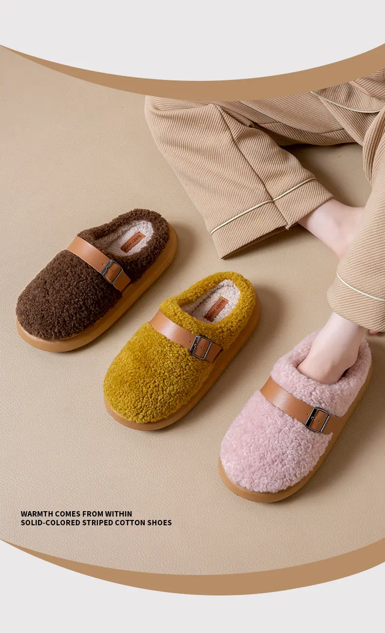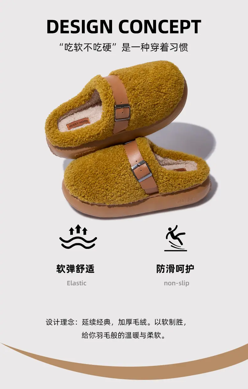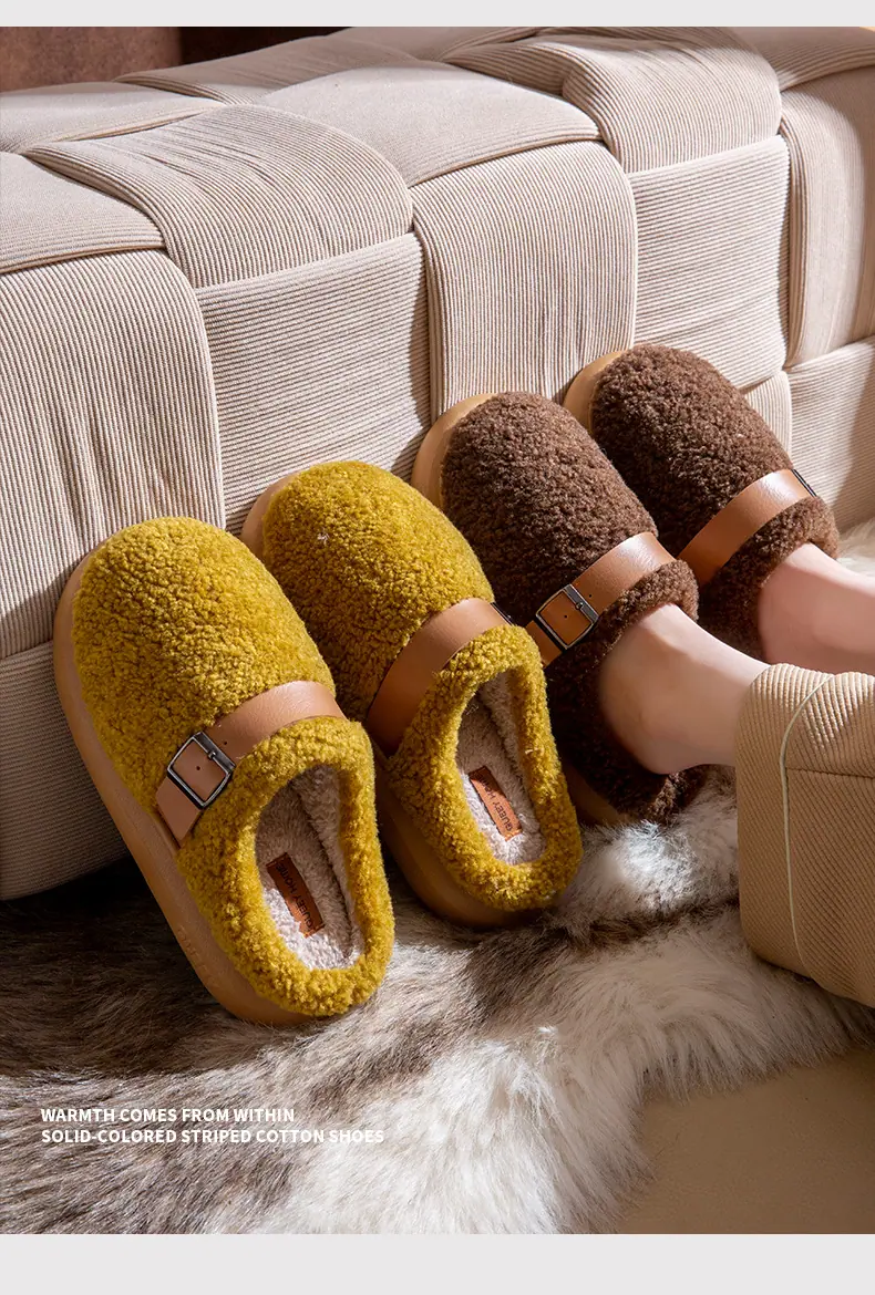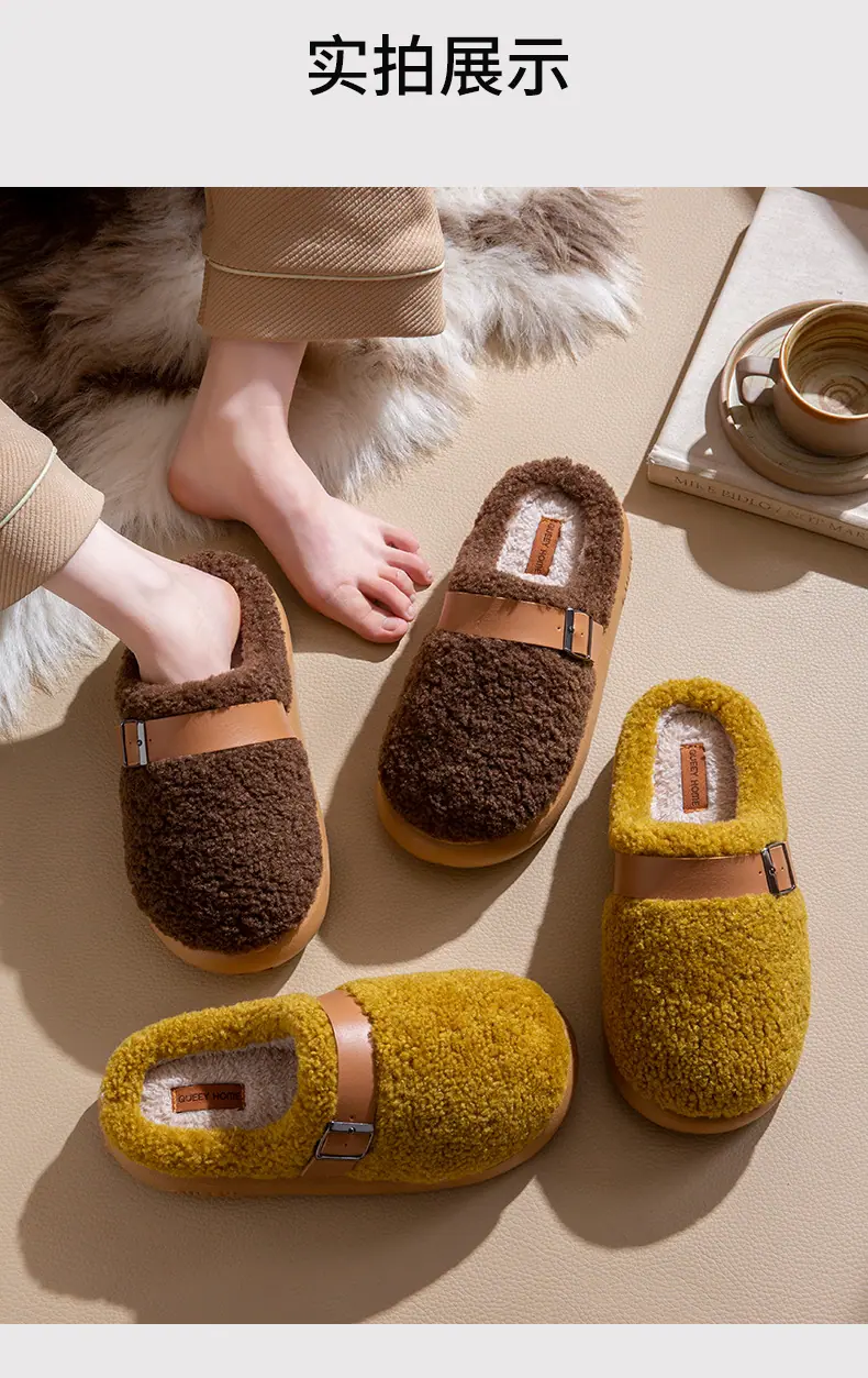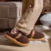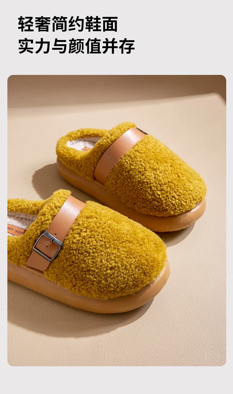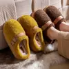 Pantuflas de Algodón Mujer Otoño Invierno Felpa Interior Hogar Antideslizantes Suela Gruesa Sensación de Pisar Mierda Pantuflas Cálidas Postparto Pareja Hombre