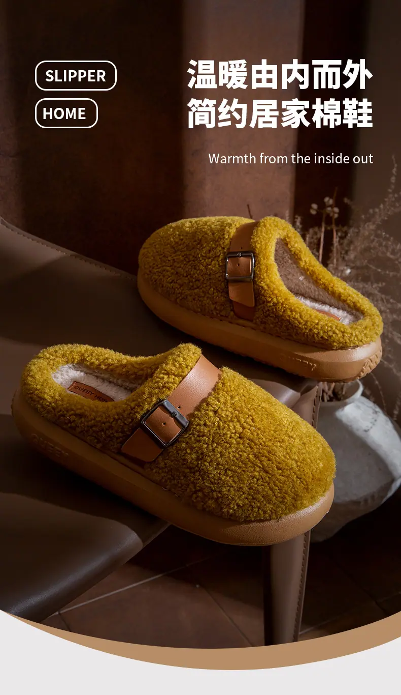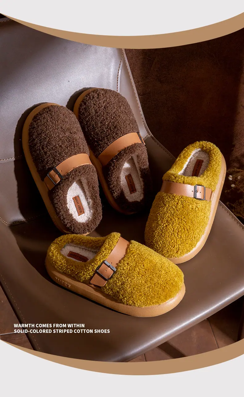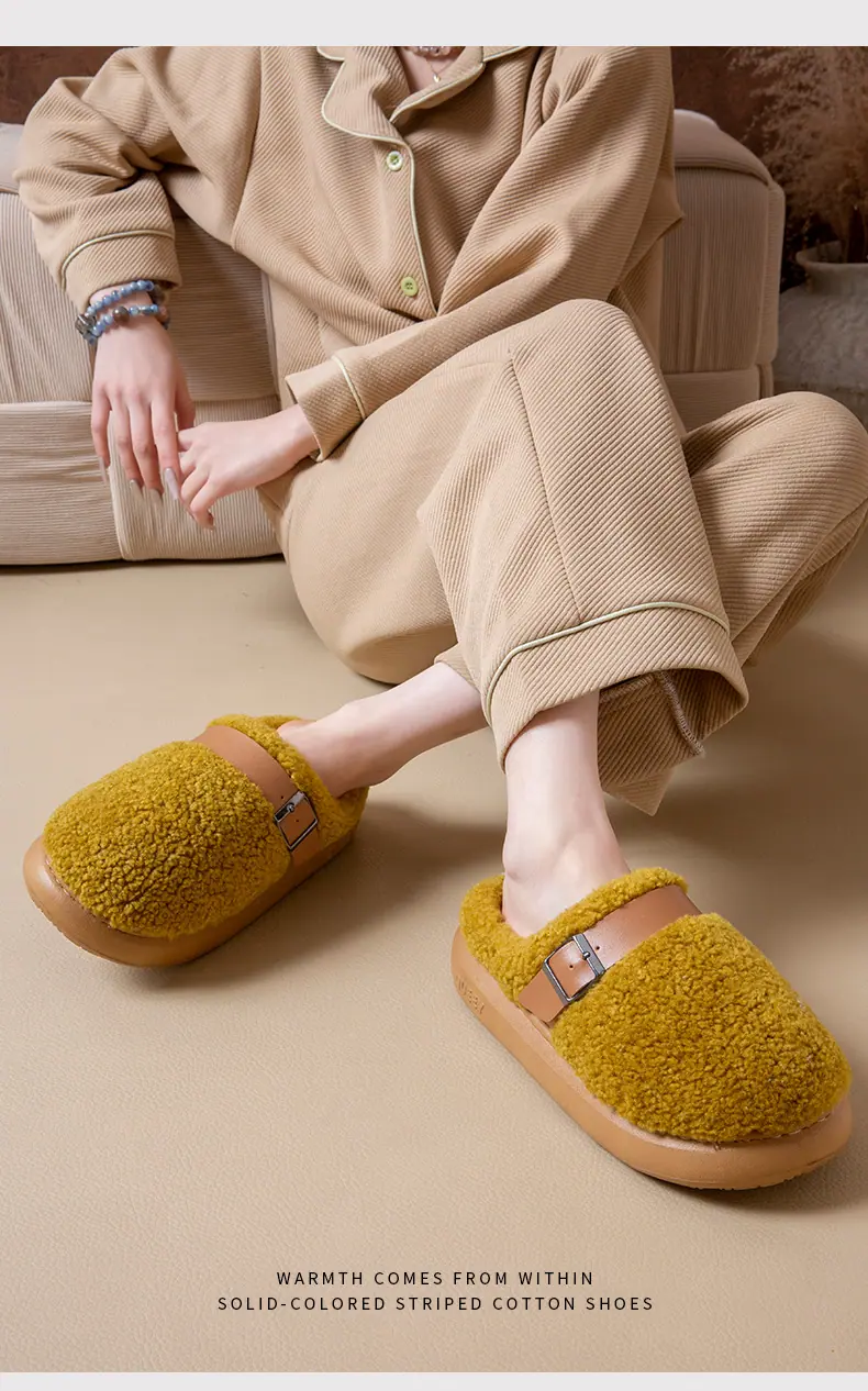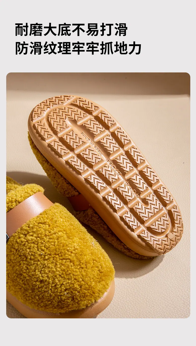 Pantuflas de Algodón Mujer Otoño Invierno Felpa Interior Hogar Antideslizantes Suela Gruesa Sensación de Pisar Mierda Pantuflas Cálidas Postparto Pareja Hombre