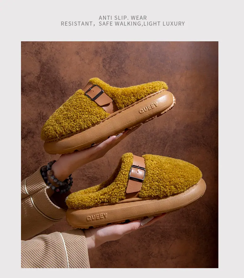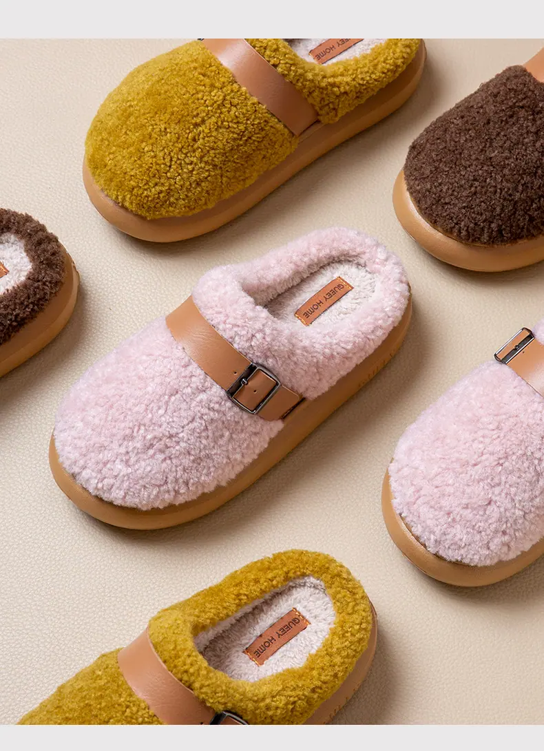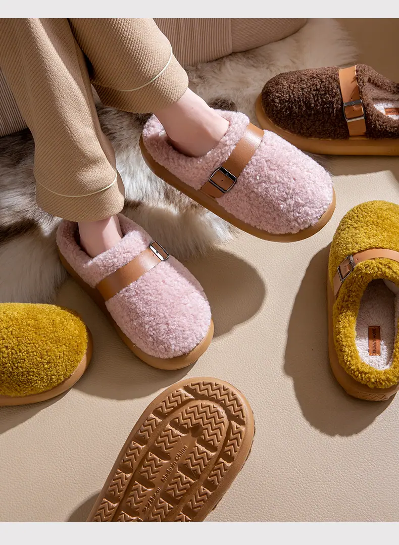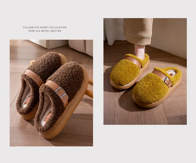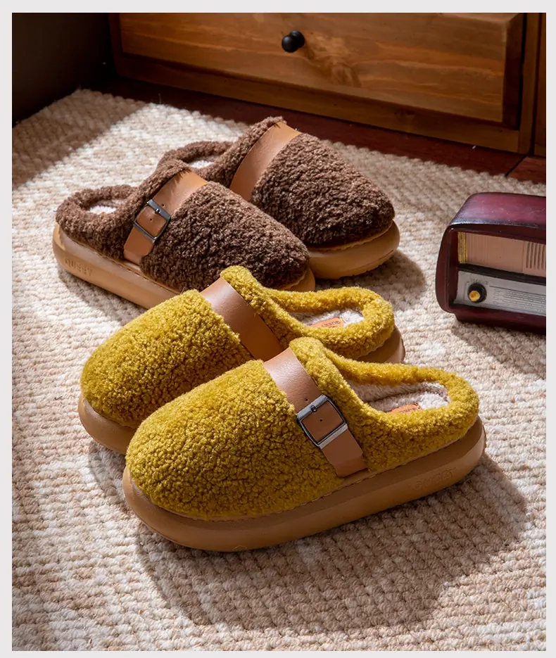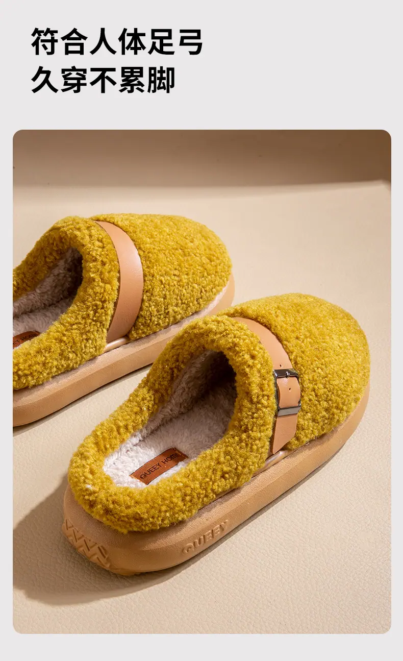 Pantuflas de Algodón Mujer Otoño Invierno Felpa Interior Hogar Antideslizantes Suela Gruesa Sensación de Pisar Mierda Pantuflas Cálidas Postparto Pareja Hombre