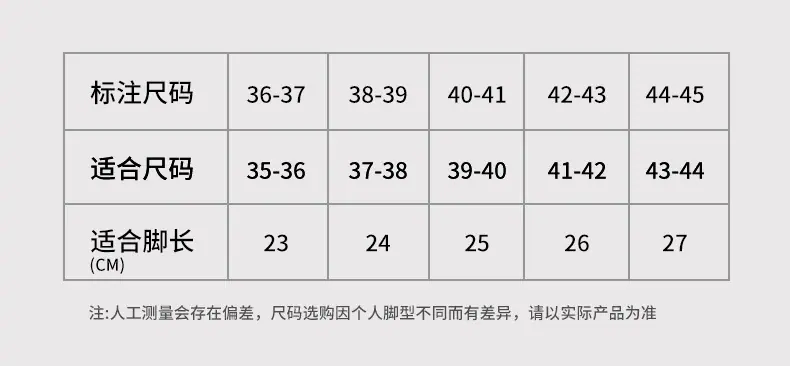 36-37 (suitable for size 35-36), 38-39 (suitable for size 37-38), 40-41 (suitable for size 39-40), 42-43 (suit...