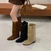 Botas de Caballero Largas de Tacón Alto Puntiagudas de Gamuza Color Café Maillard para Mujer Botas de Invierno y Otoño 2025 Botas Slim Estilo Western