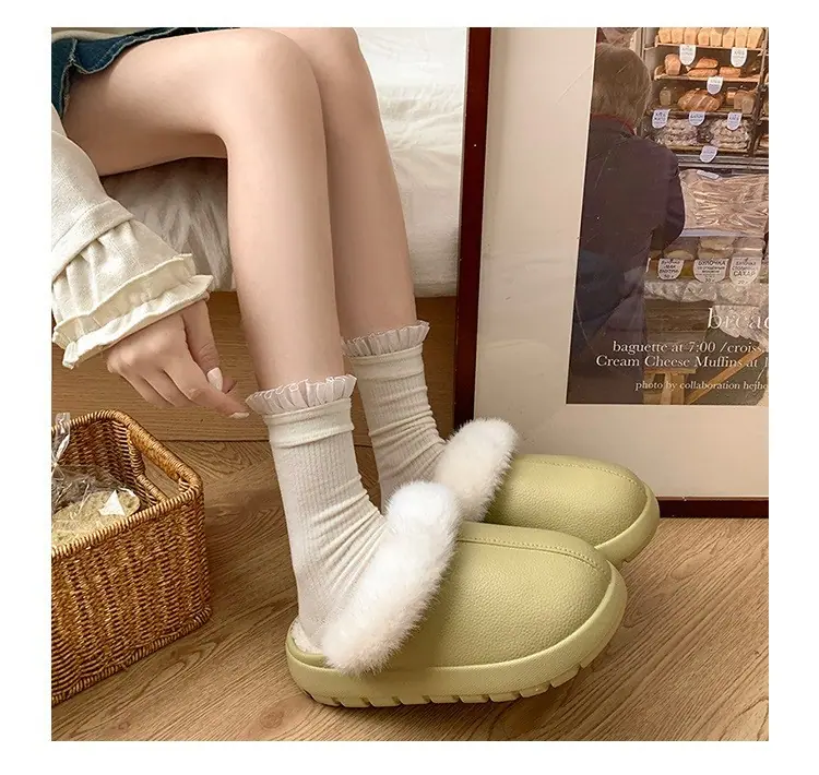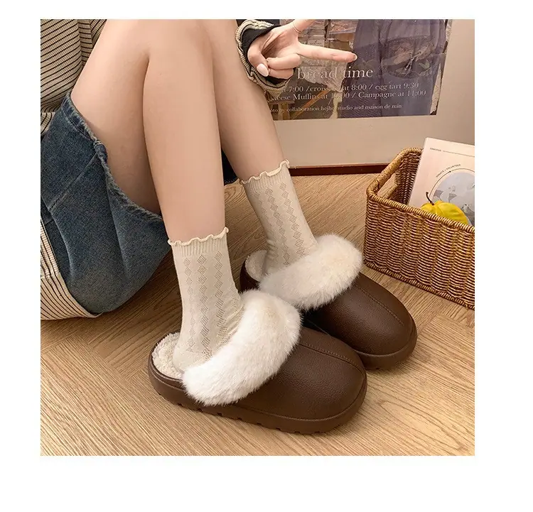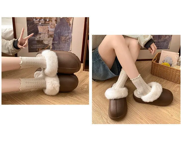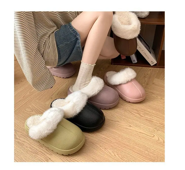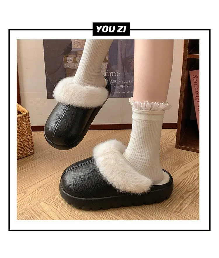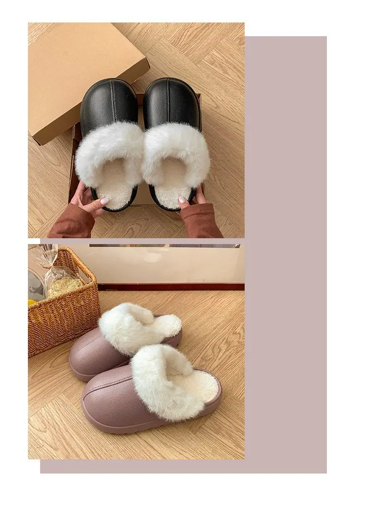 Pantuflas de Algodón Desmontables e Impermeables de Suela Gruesa para Hombre y Mujer Otoño/Invierno Antideslizantes para Uso en Casa Interior/Exterior Cálidas y Peludas de Algodón