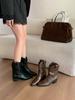 Botas de Motocicleta Marrones de Media Pantorrilla para Mujer, Botas Vaqueras Western de Tacón Alto, Botas Tipo Funda de Tacón Grueso, Botas Cortas para Otoño e Invierno