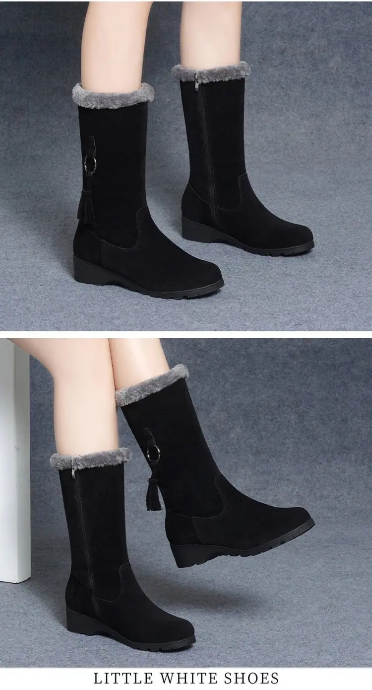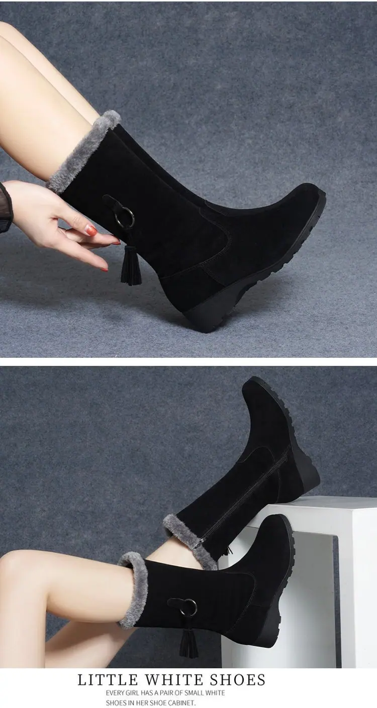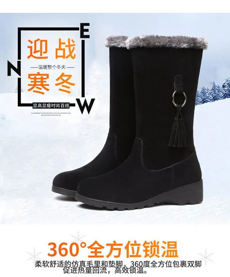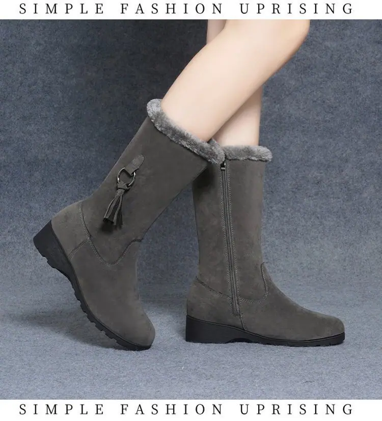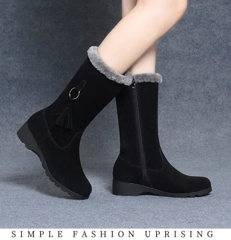 Nuevo invierno transfronterizo estilo coreano botas de algodón para mujer más terciopelo más gruesas media pantorrilla cálidas suela plana cremallera lateral botas de nieve