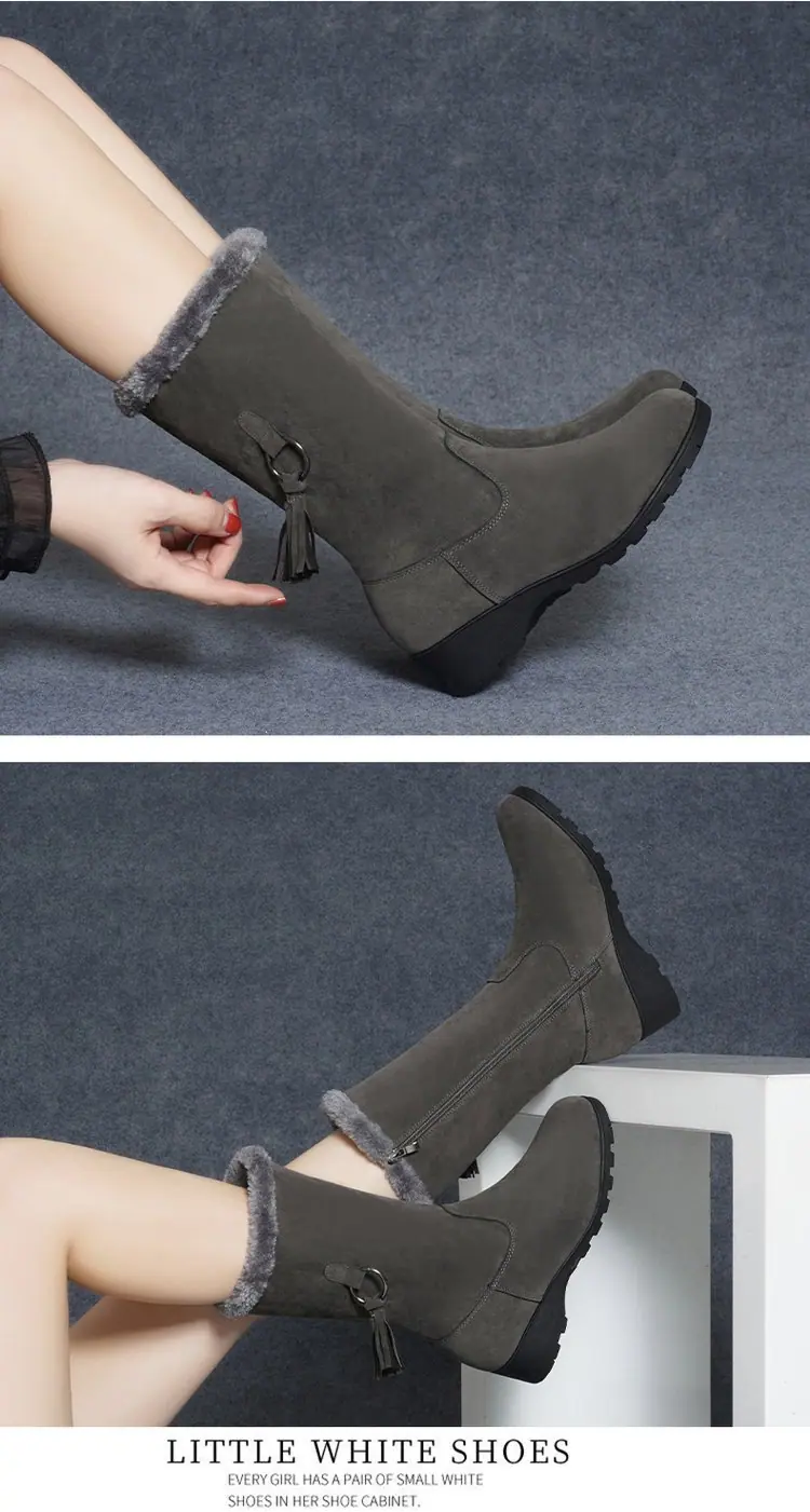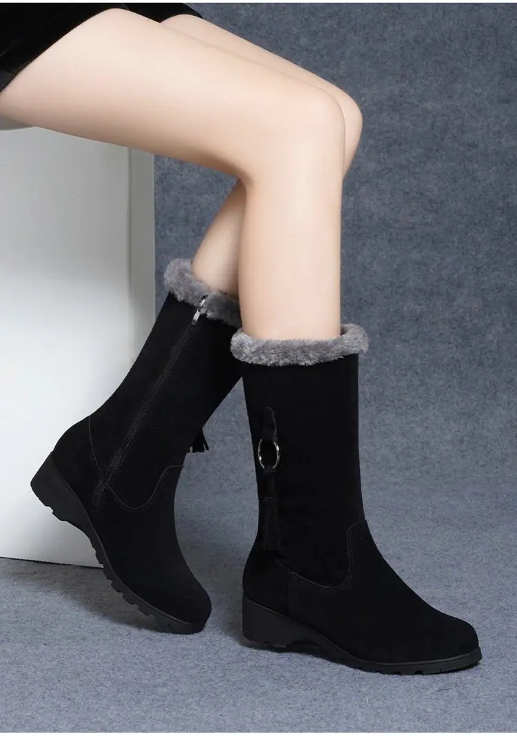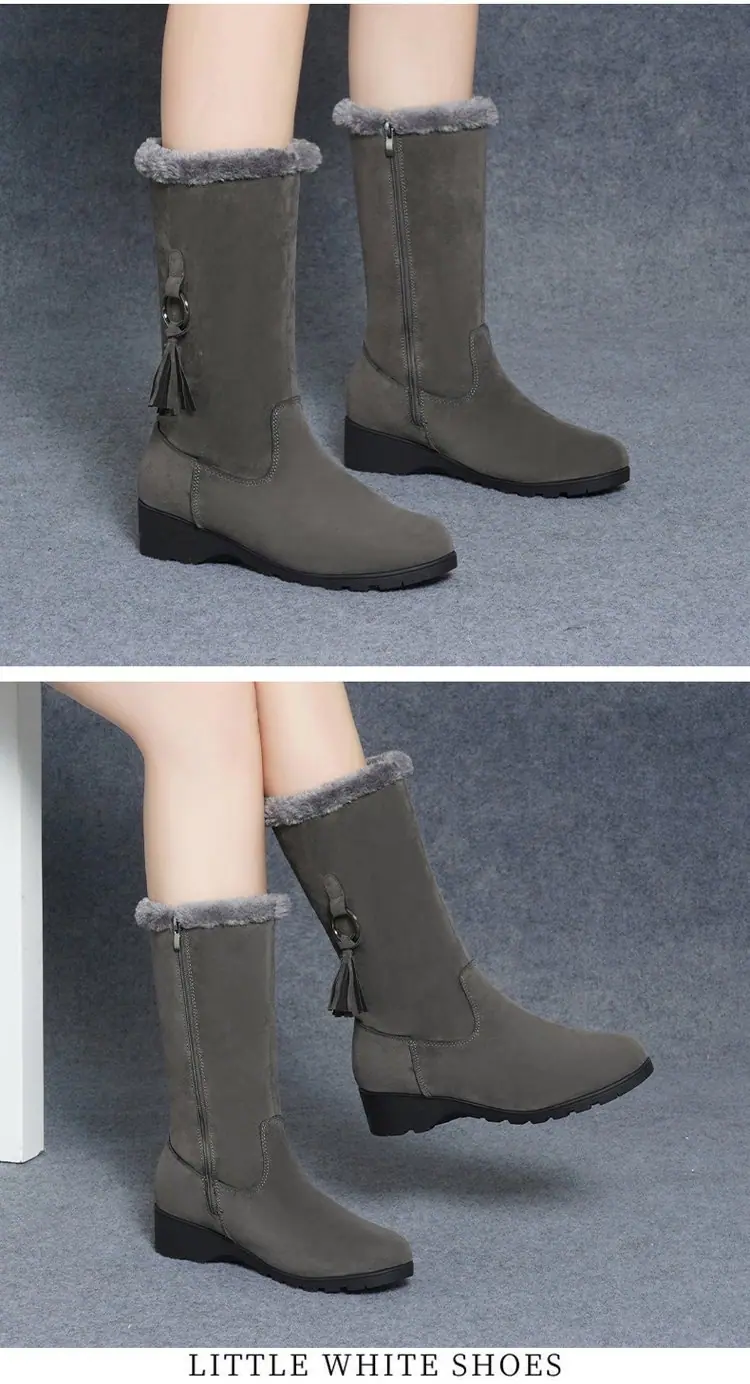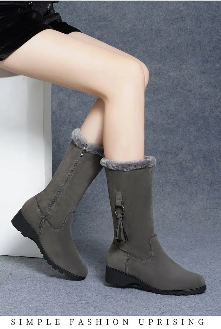 Nuevo invierno transfronterizo estilo coreano botas de algodón para mujer más terciopelo más gruesas media pantorrilla cálidas suela plana cremallera lateral botas de nieve