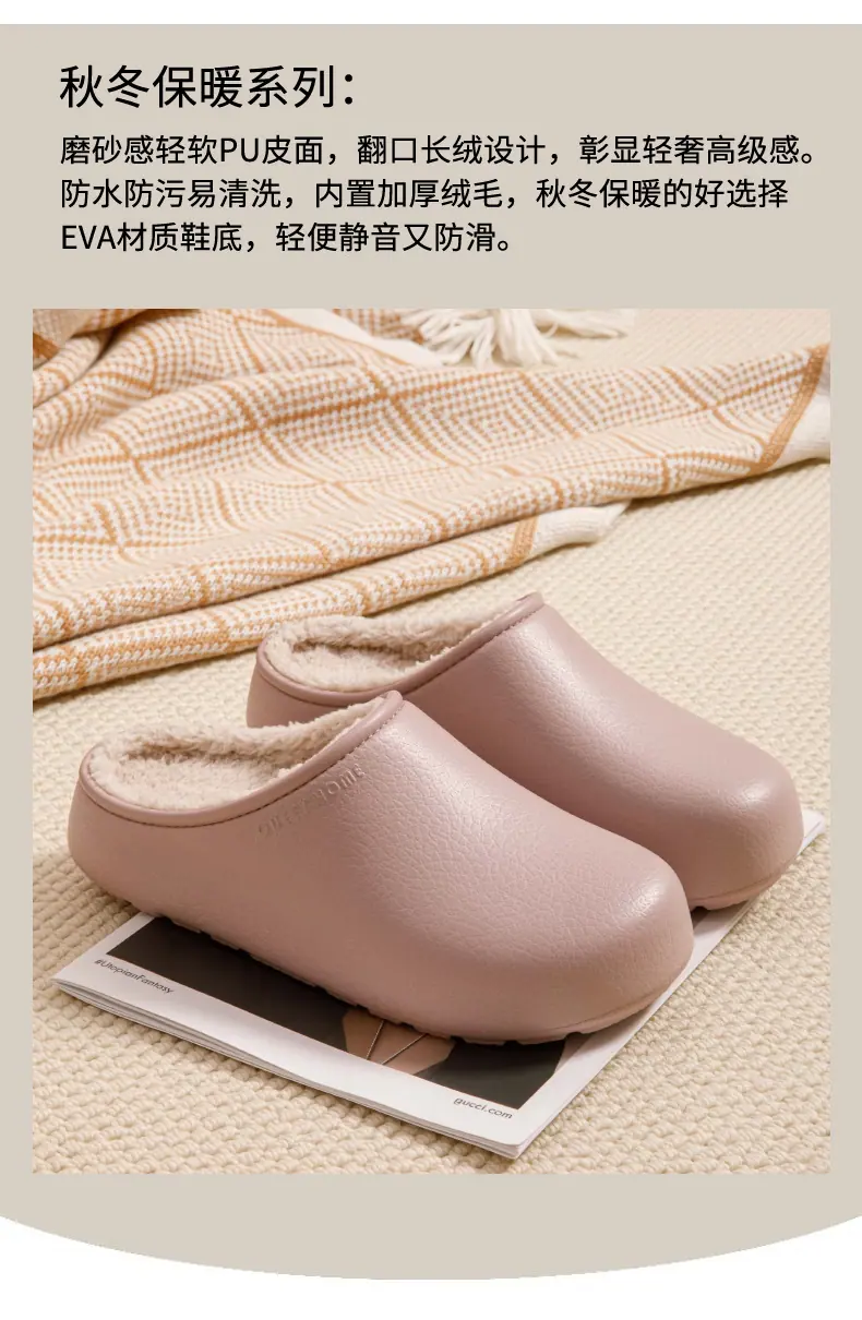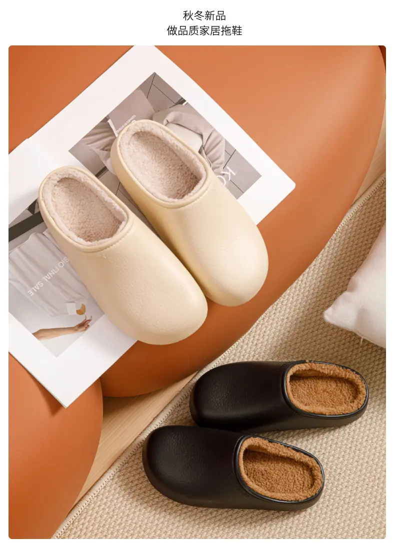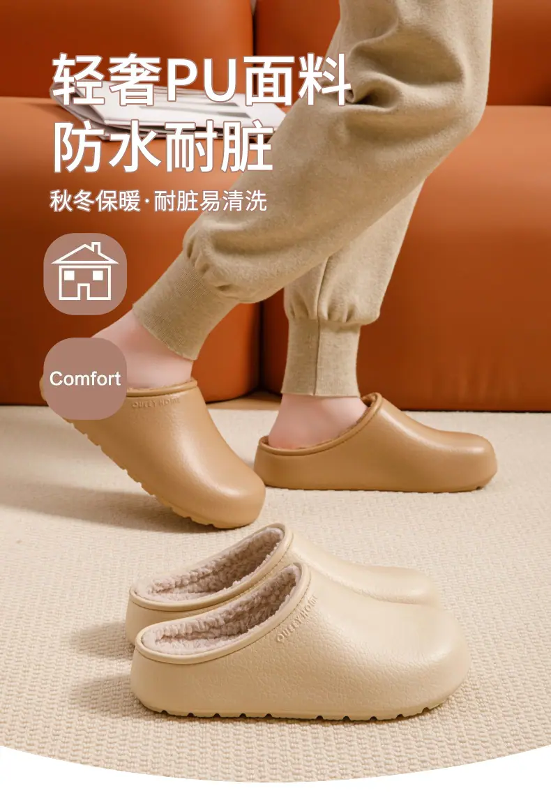 Pantuflas de Algodón para Exterior con Cubierta de Talón para Mujer Invierno 2025 Nuevo Impermeable Cálido Felpa Cómodo Hogar Antideslizante Zapatos de Algodón de Suela Gruesa para Hombre