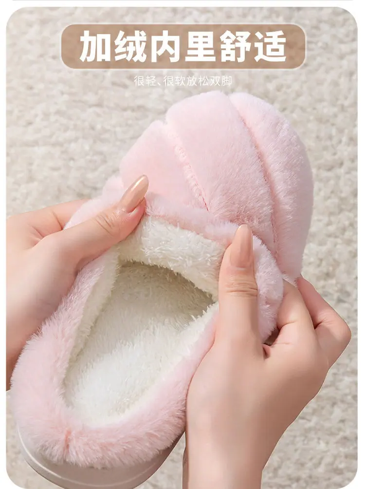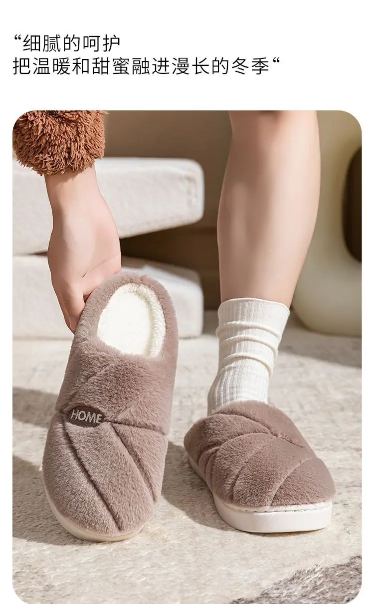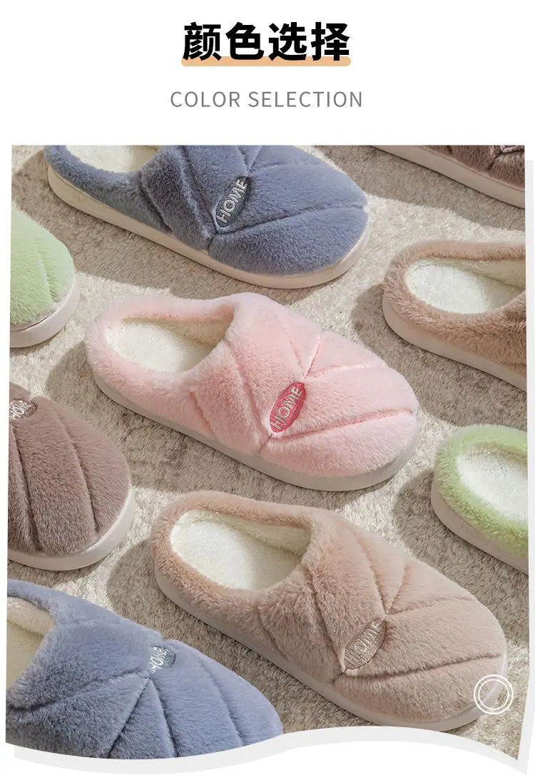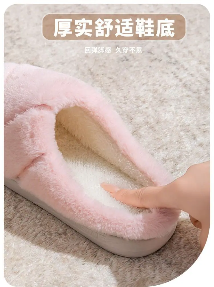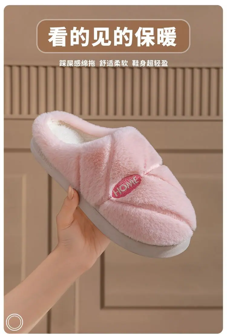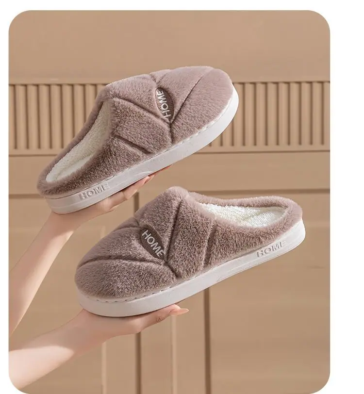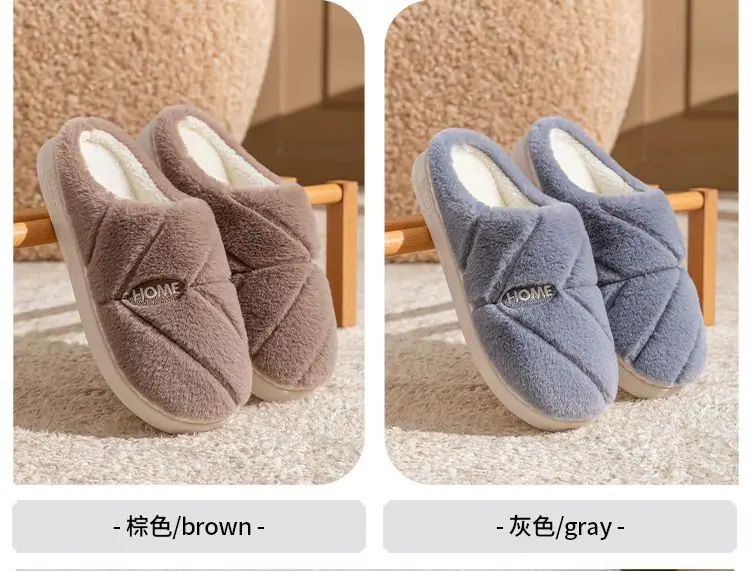 Pantuflas de algodón cálidas de felpa antideslizantes para pareja, pantuflas de algodón para mujer, otoño e invierno, para el hogar, interior, suela gruesa