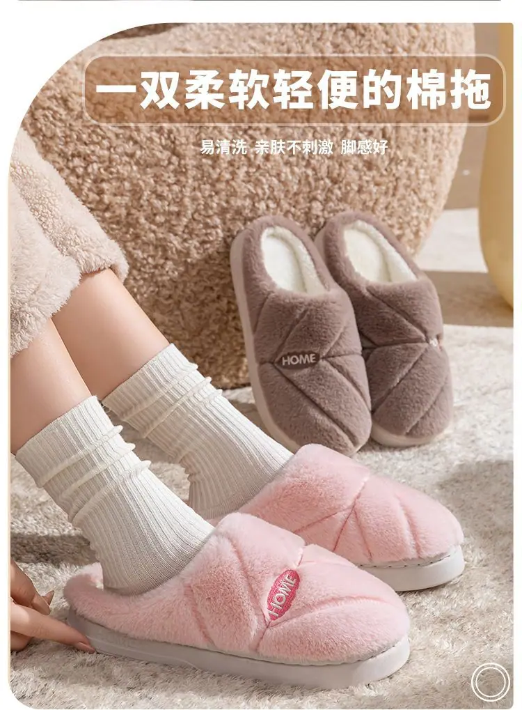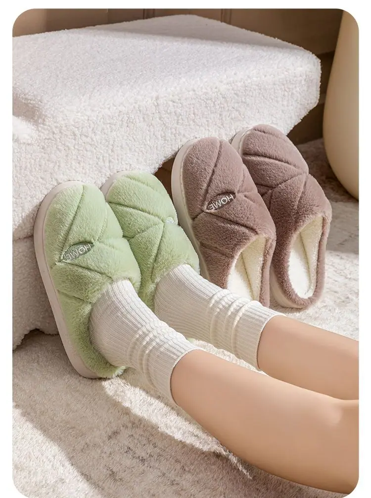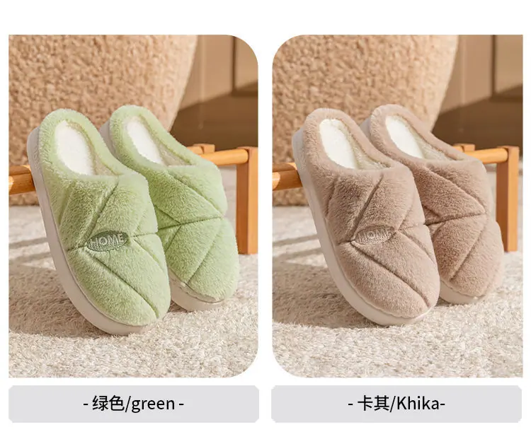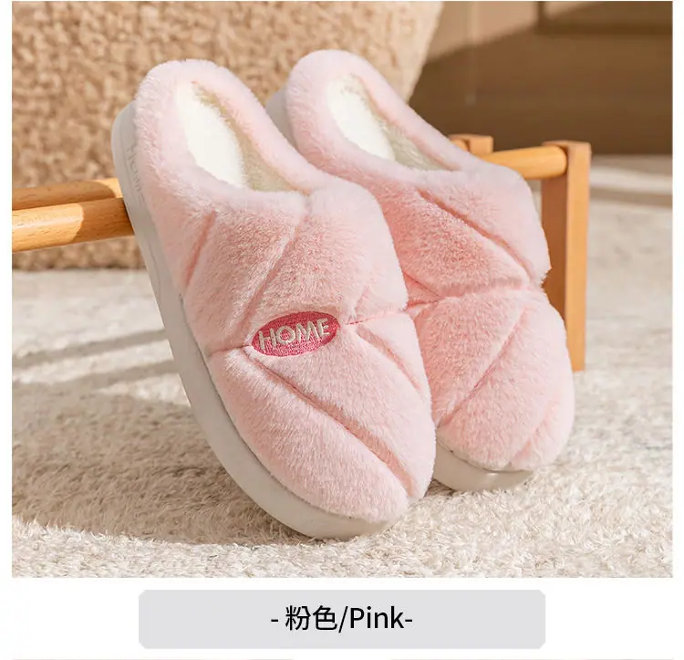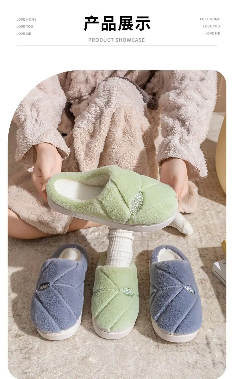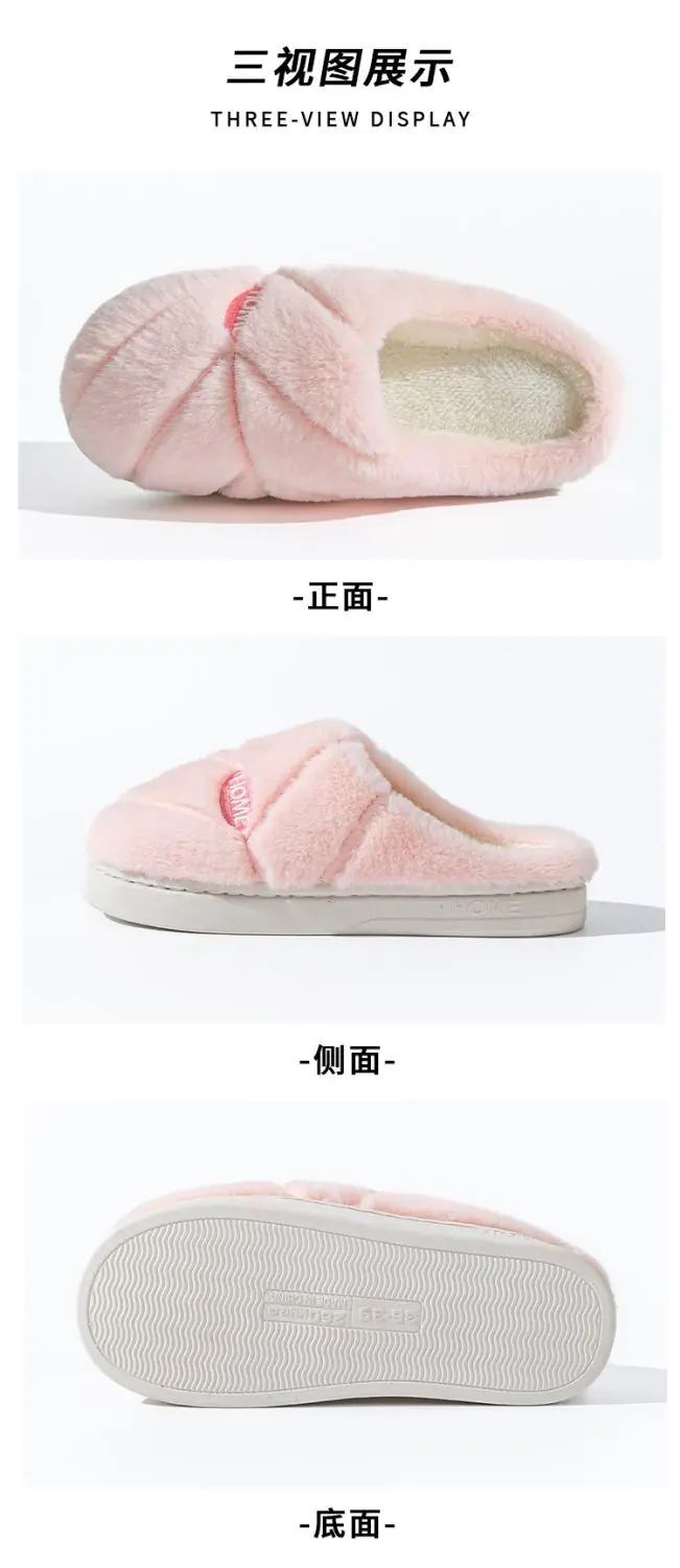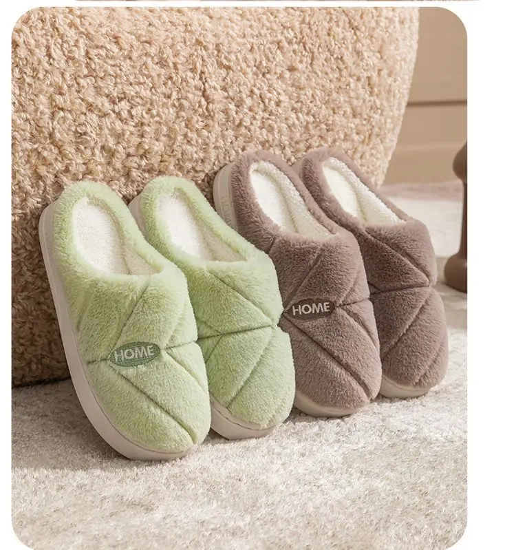 Pantuflas de algodón cálidas de felpa antideslizantes para pareja, pantuflas de algodón para mujer, otoño e invierno, para el hogar, interior, suela gruesa