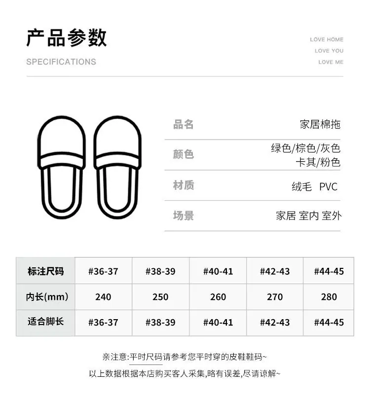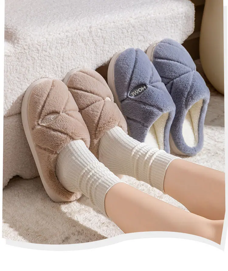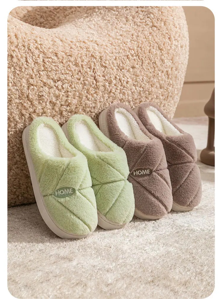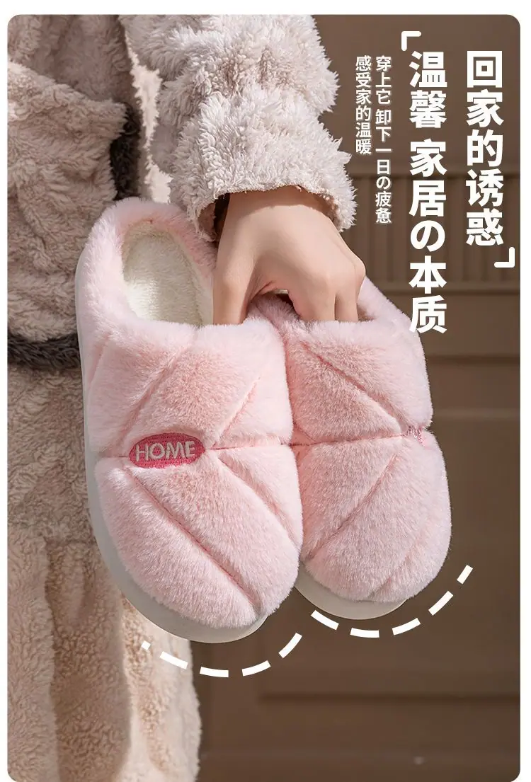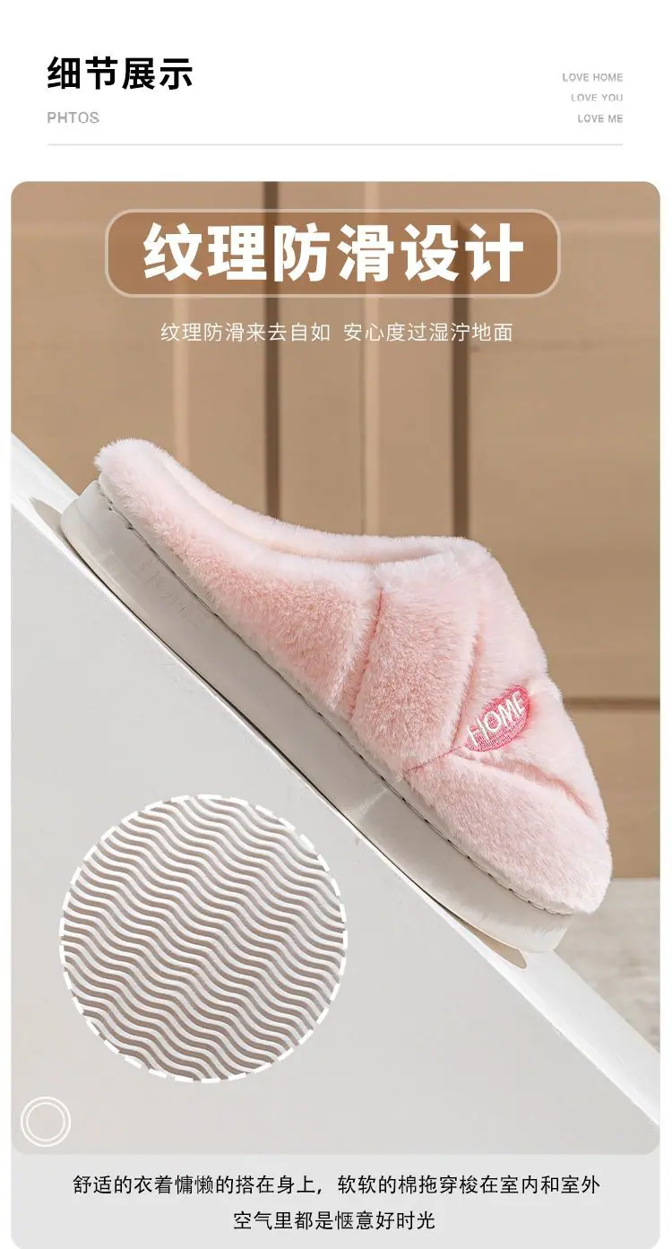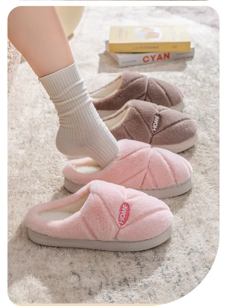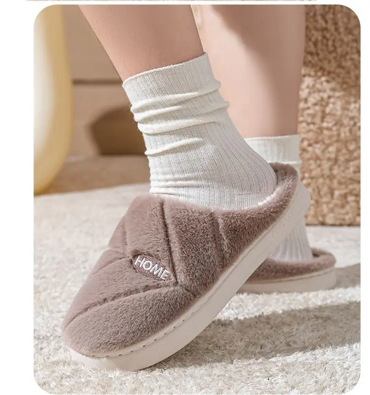 Pantuflas de algodón cálidas de felpa antideslizantes para pareja, pantuflas de algodón para mujer, otoño e invierno, para el hogar, interior, suela gruesa
