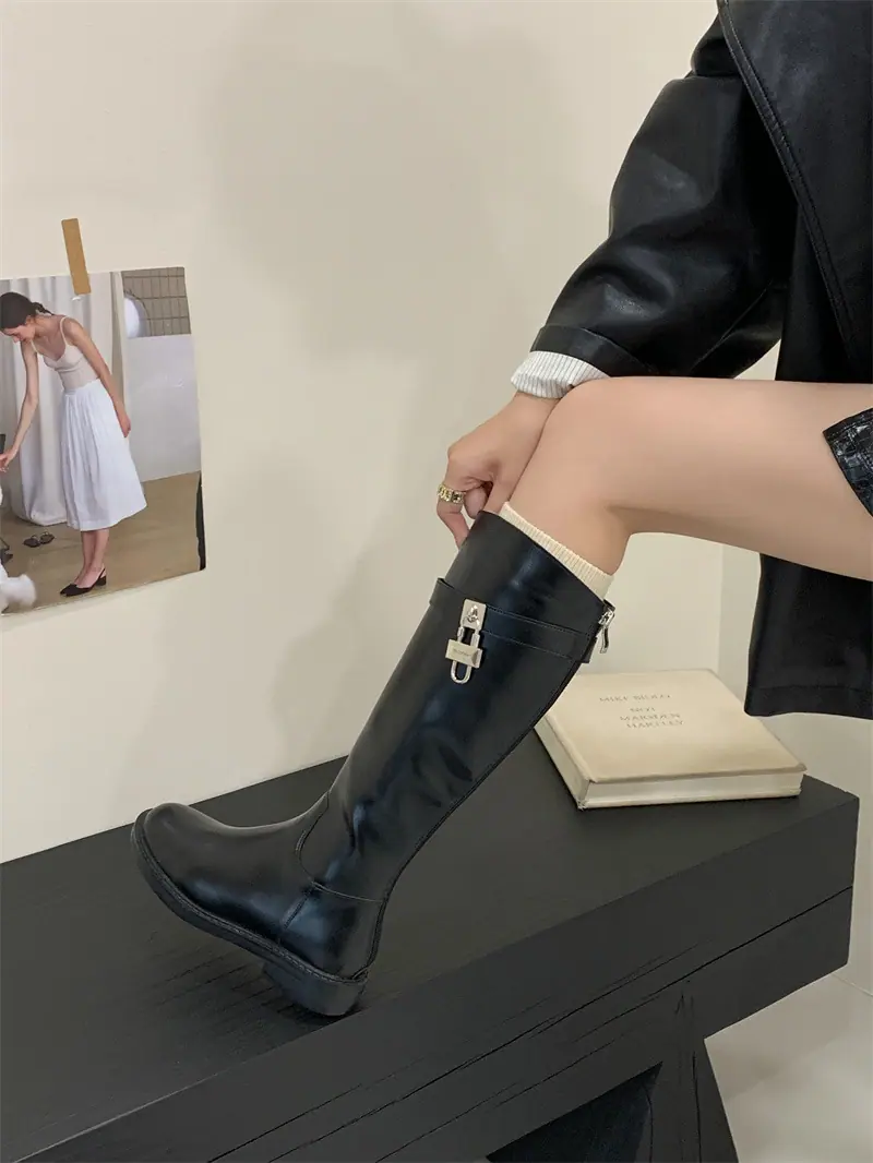 Botas de Caballero con Hebilla Europea y Americana Botas Largas de Mujer 2025 Otoño/Invierno Botas por Encima de la Rodilla Adelgazantes Botas Altas