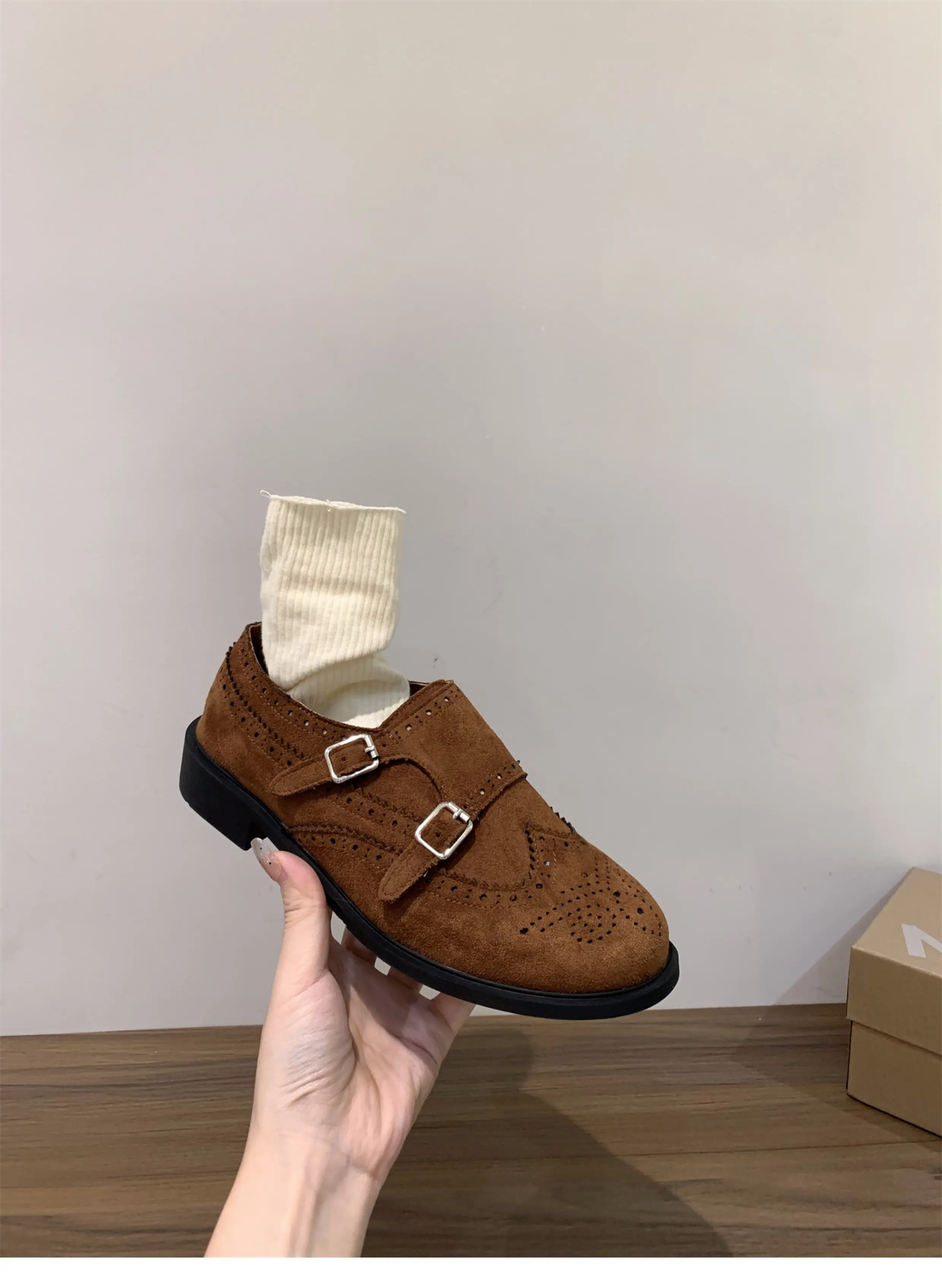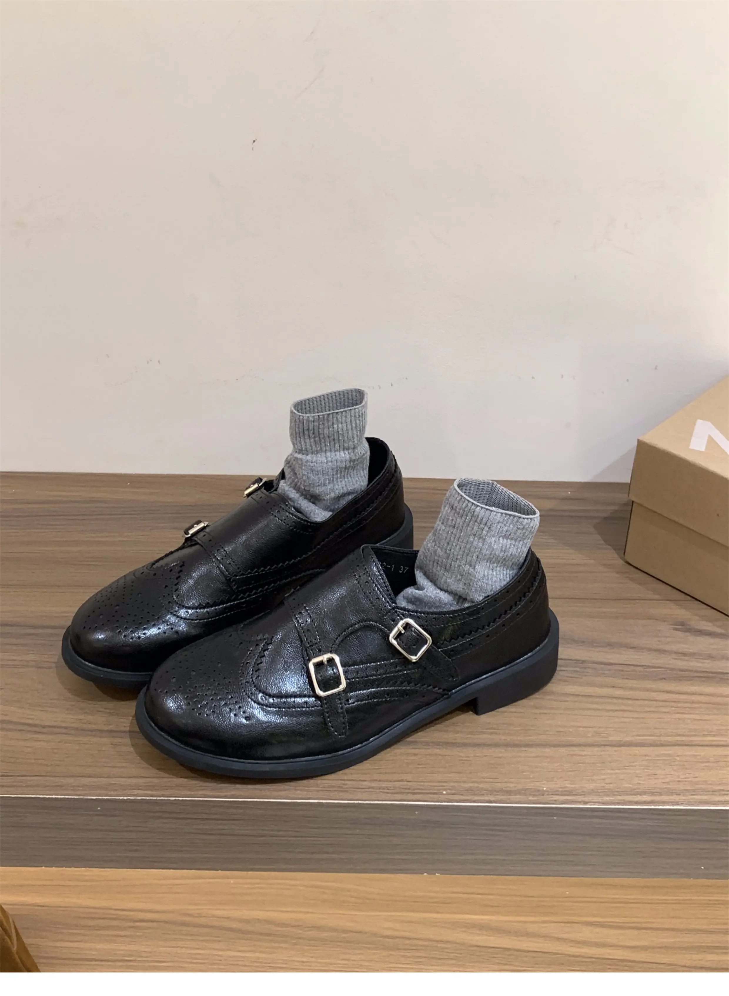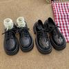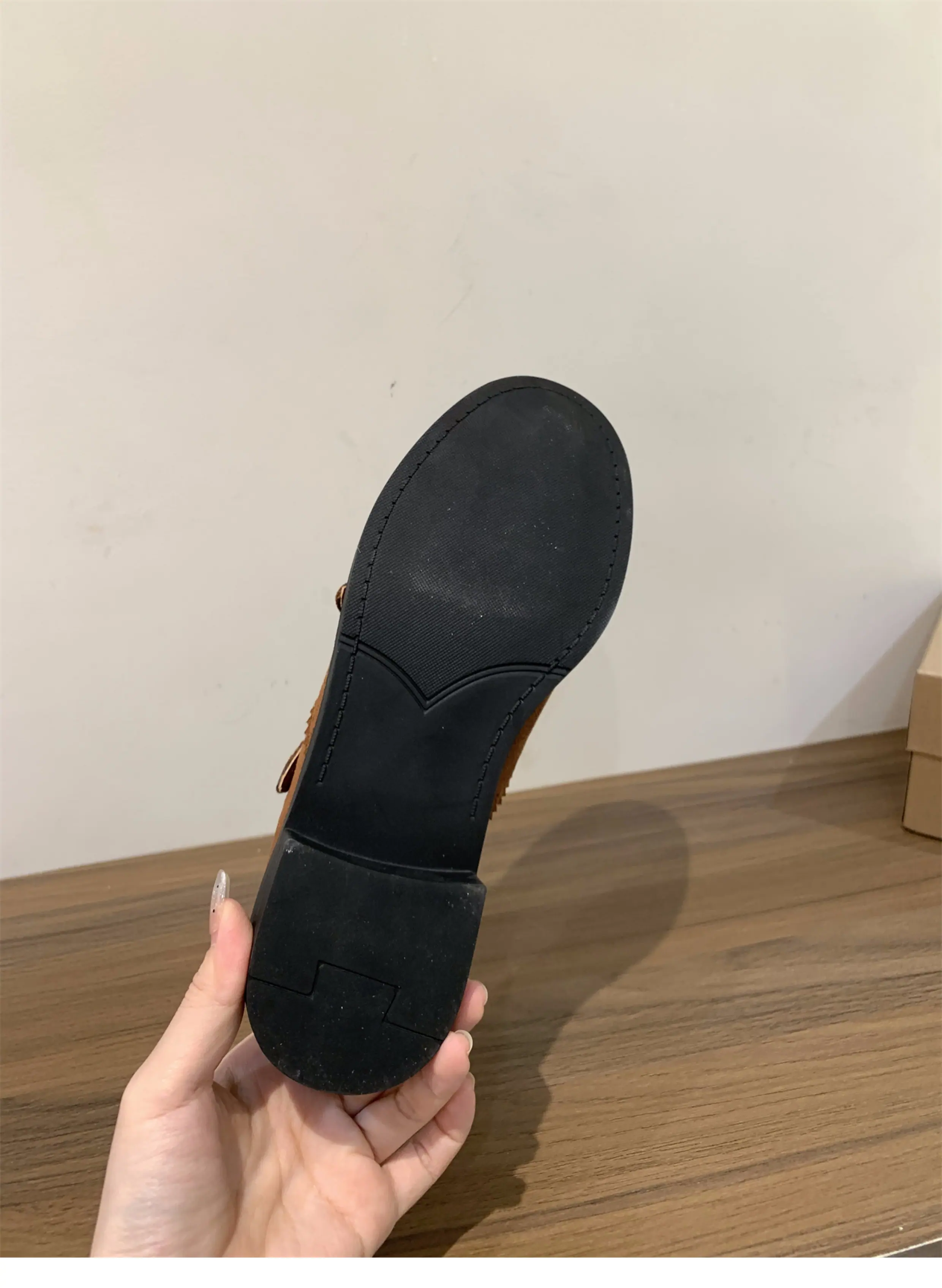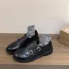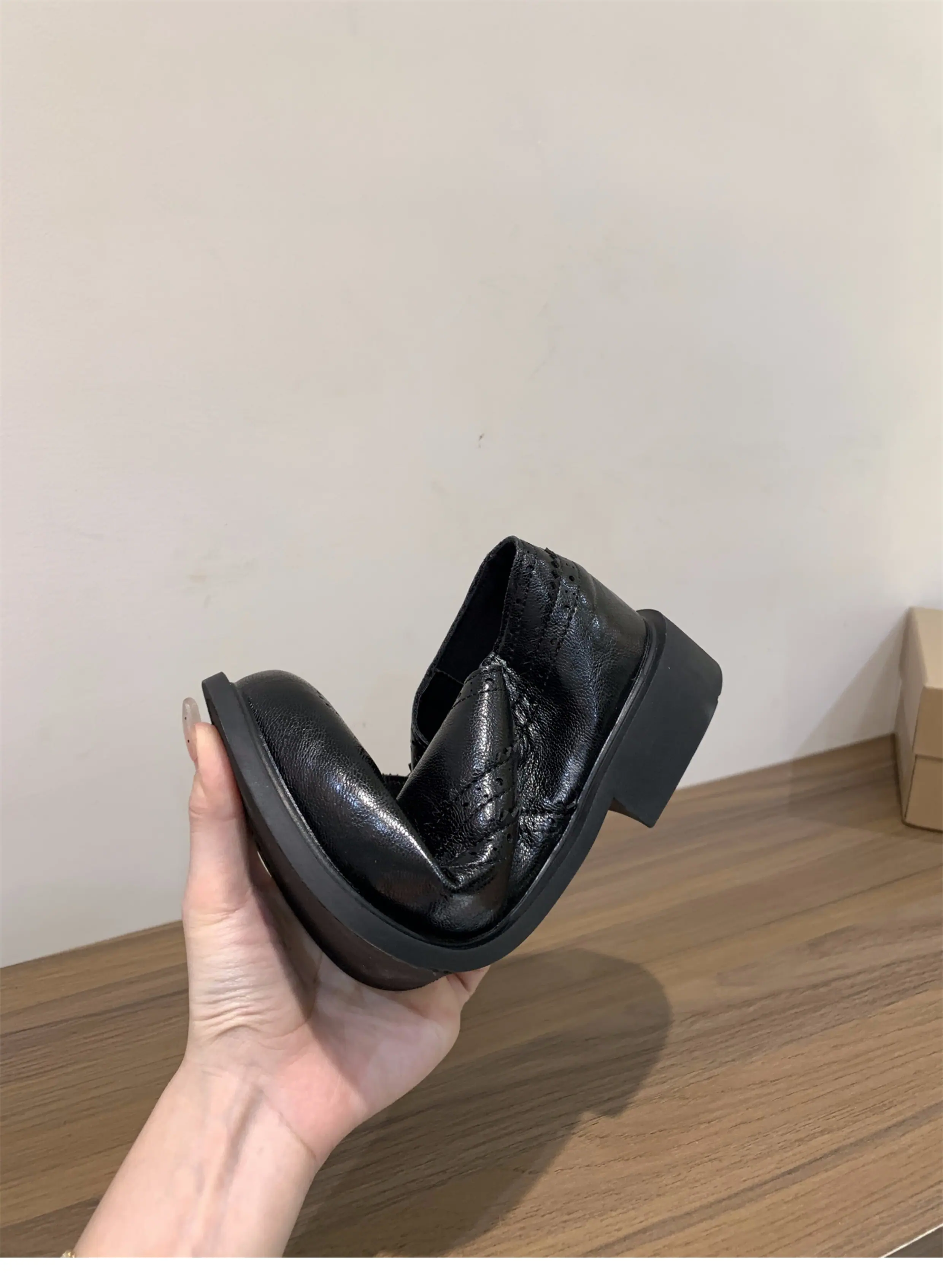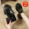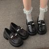 Zapatos de tacón grueso negros estilo británico zapatos pequeños de cuero zapatos de mujer primavera y otoño 2025 mocasines de gamuza estilo francés con falda zapatos individuales