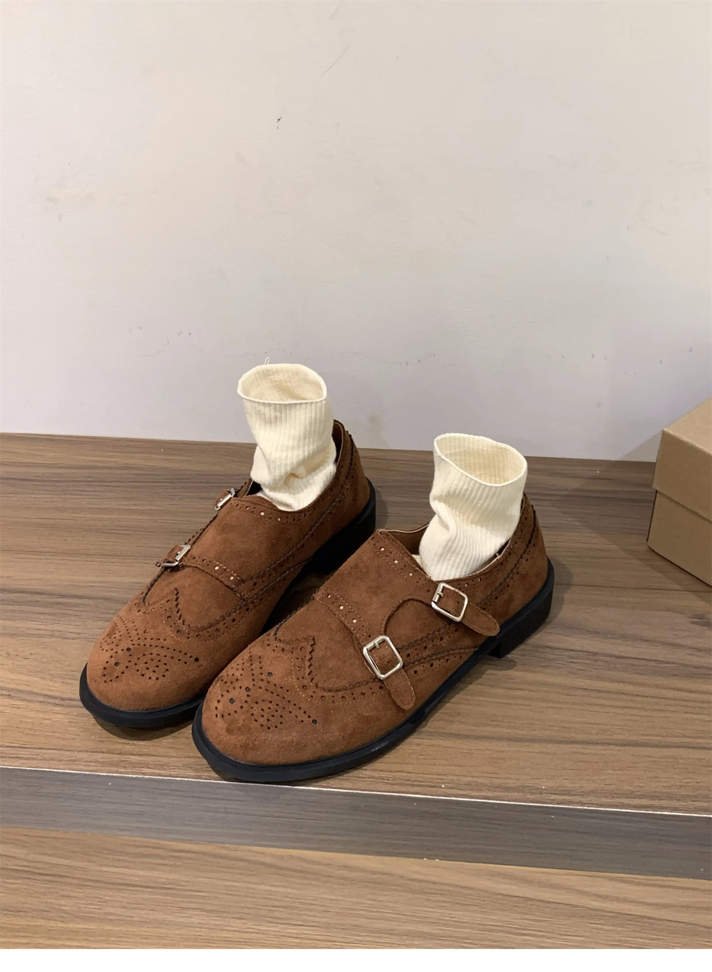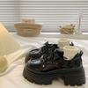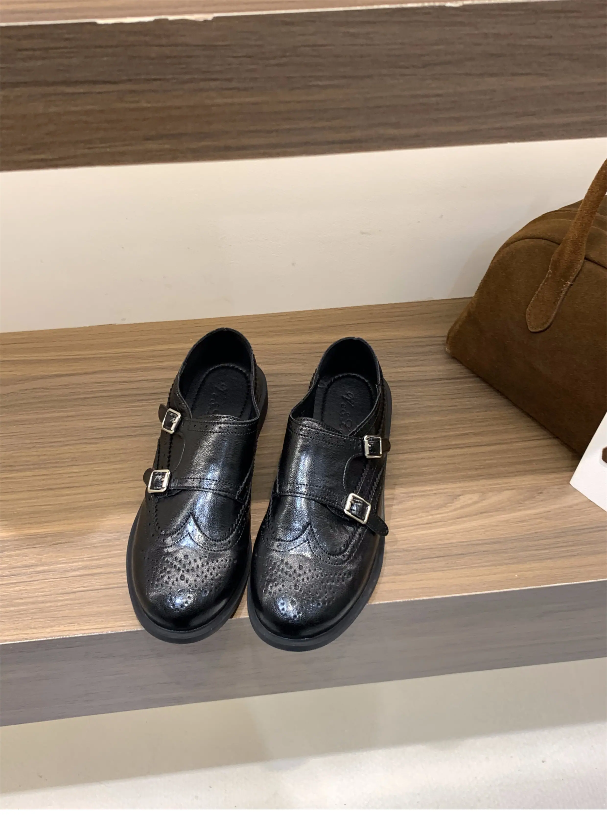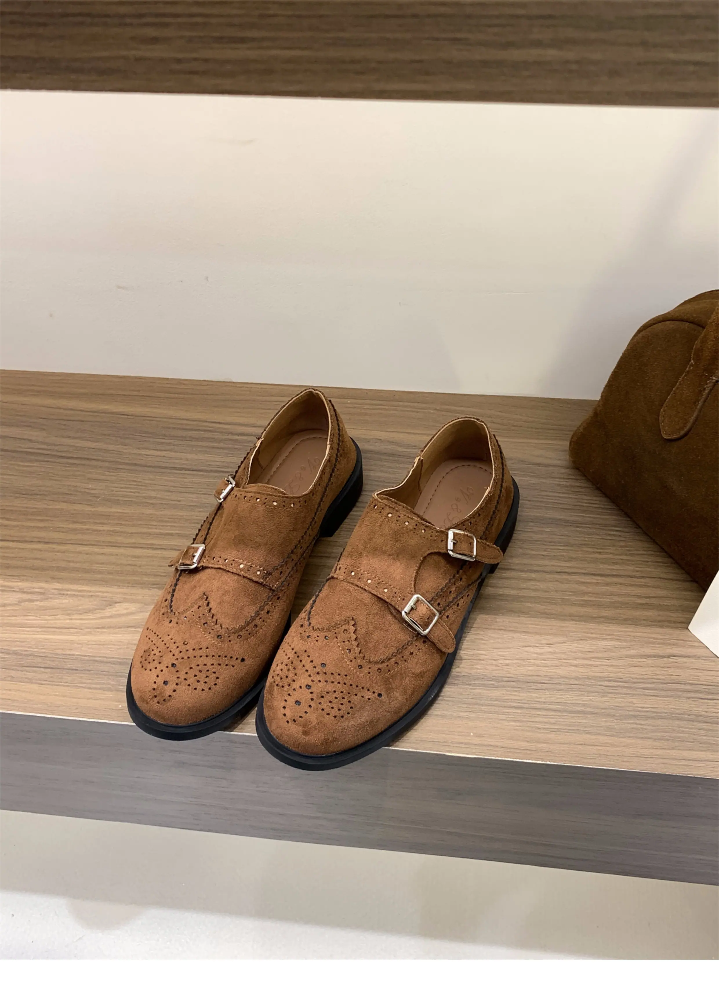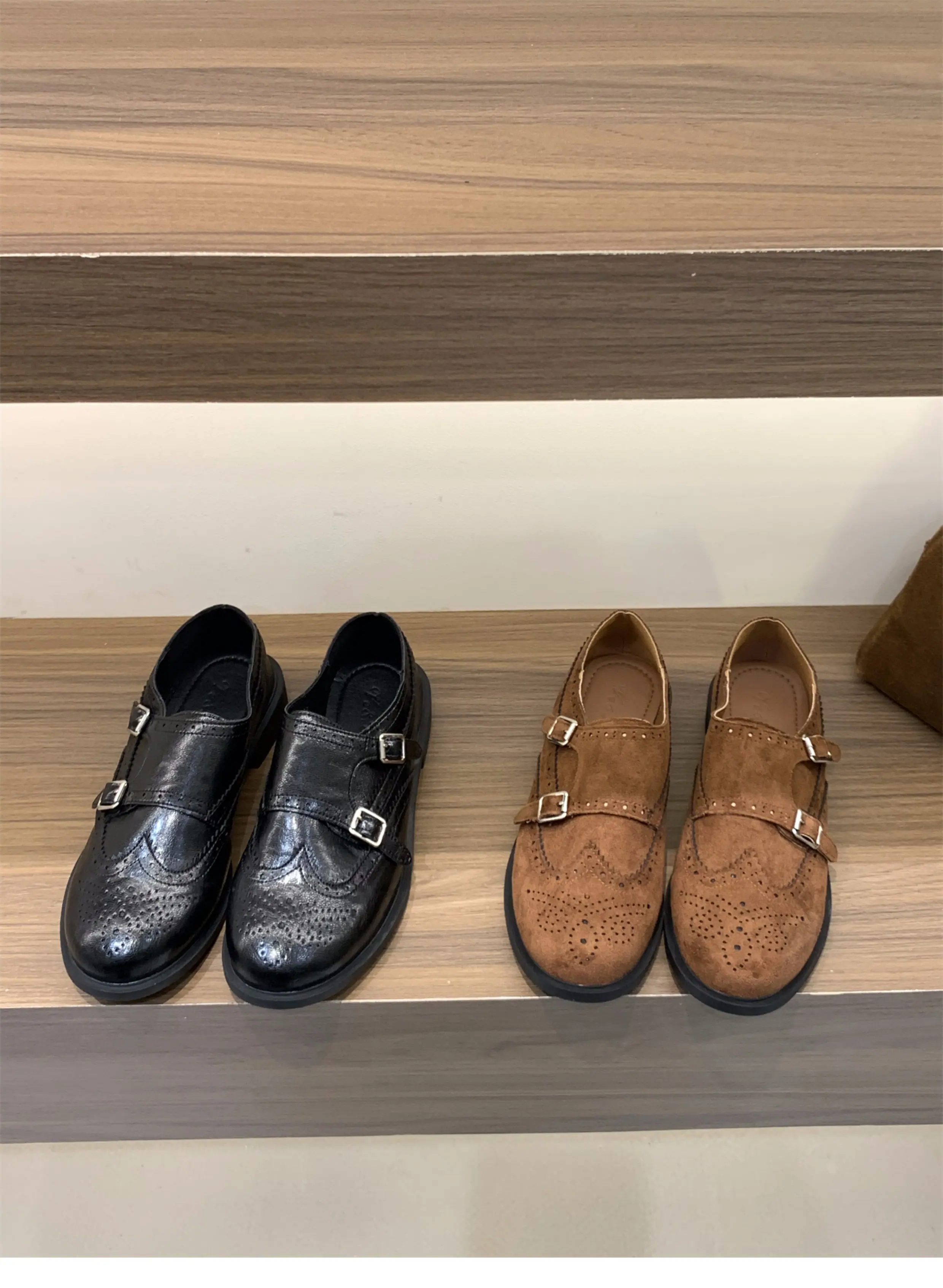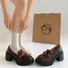 Zapatos de tacón grueso negros estilo británico zapatos pequeños de cuero zapatos de mujer primavera y otoño 2025 mocasines de gamuza estilo francés con falda zapatos individuales