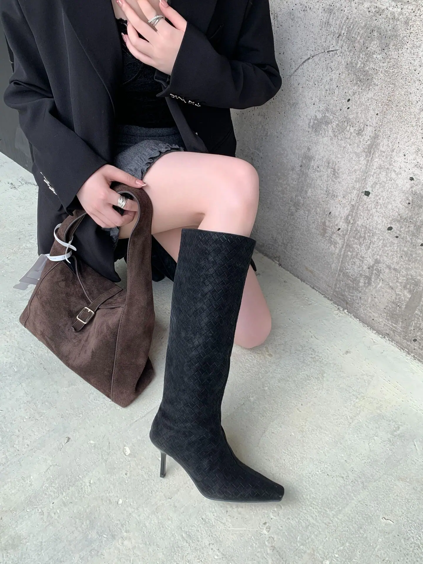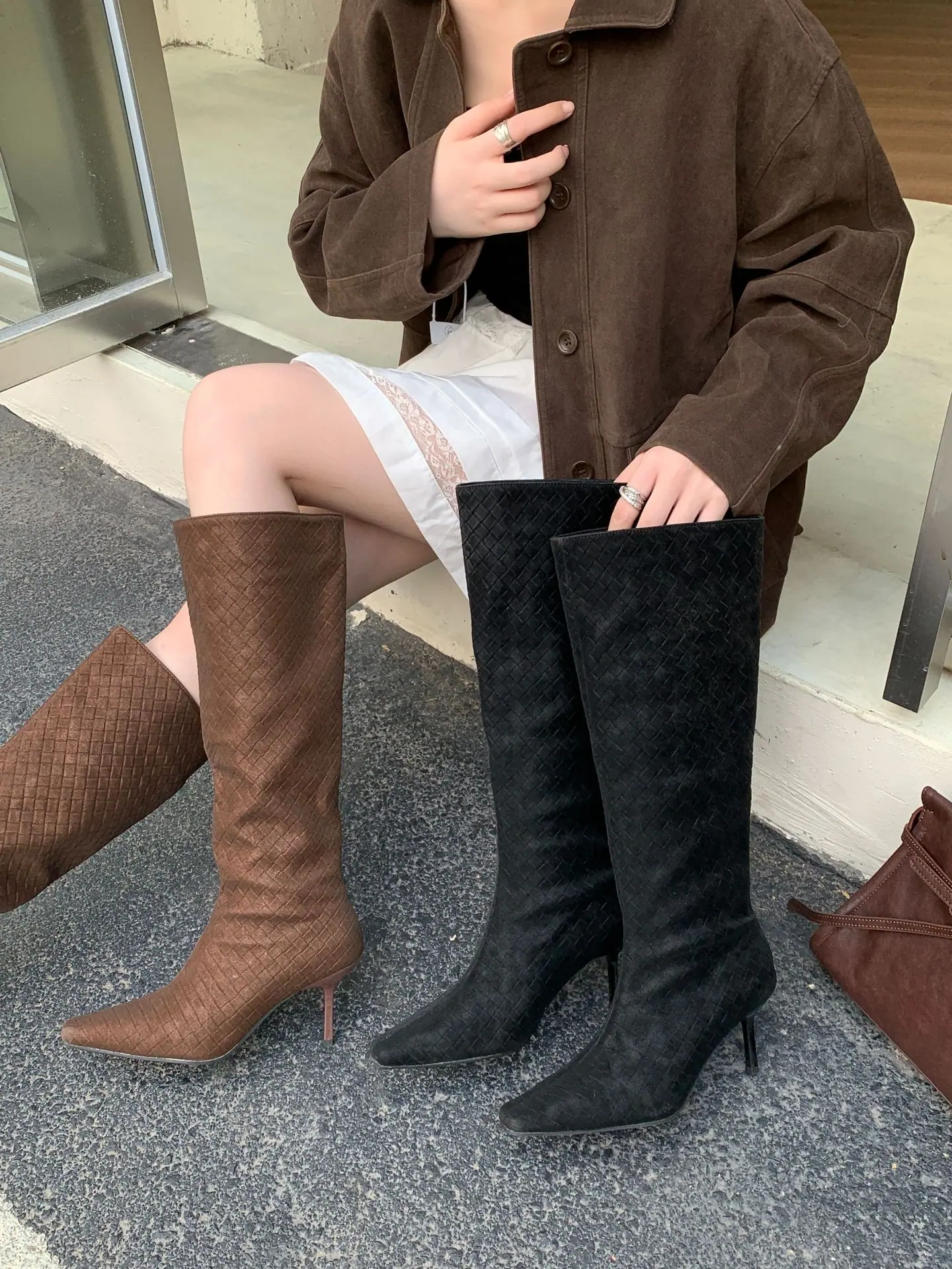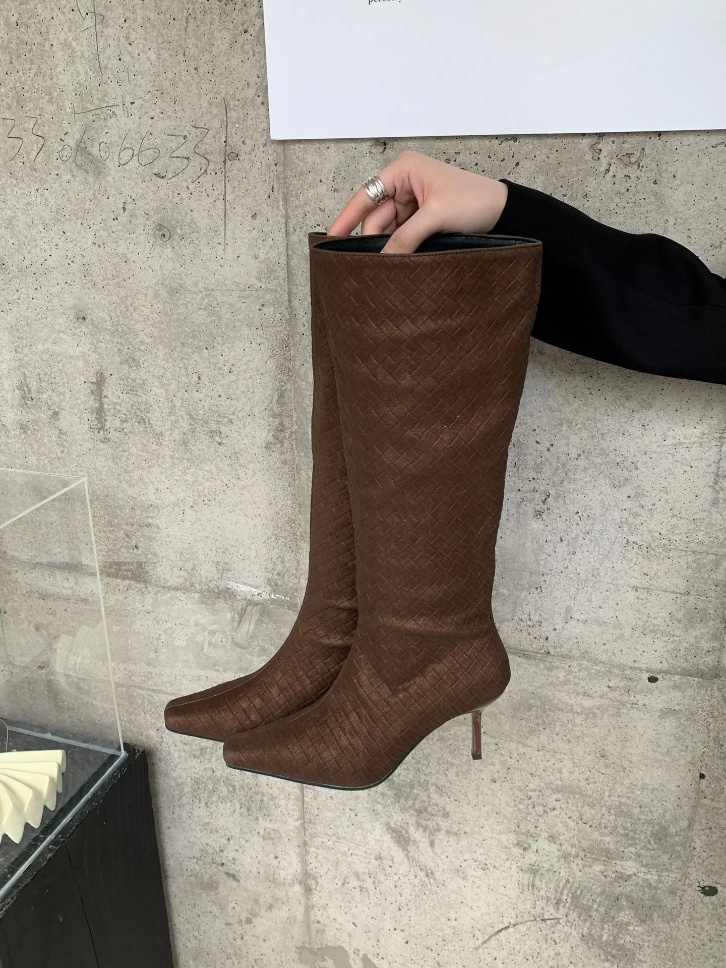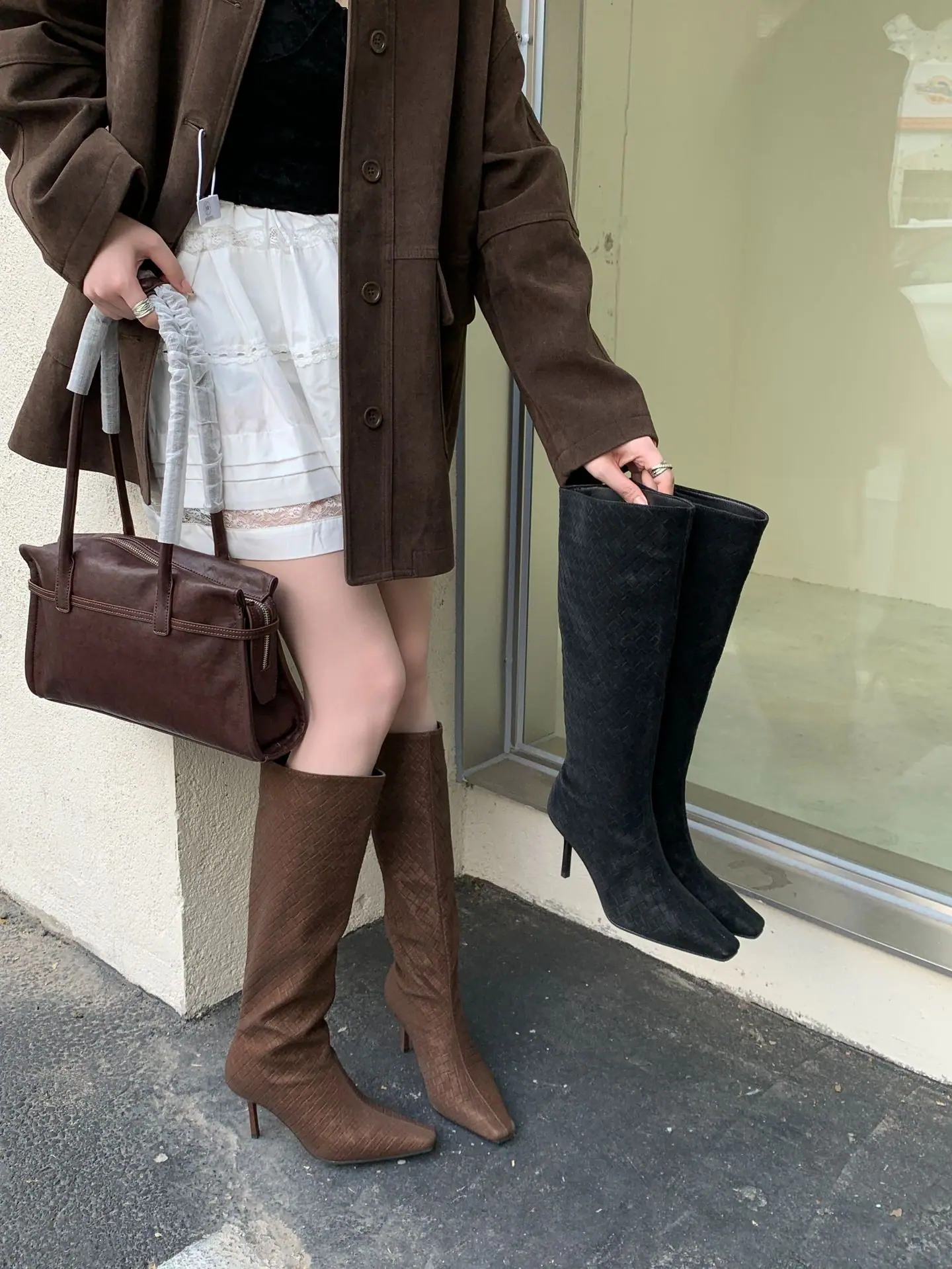 Otoño/Invierno 2025 Nuevo Europeo y Americano Ante Punta Cuadrada Tacón de Aguja Tacón Alto Temperamento Moda Francesa Belleza Sexy Botas Largas
