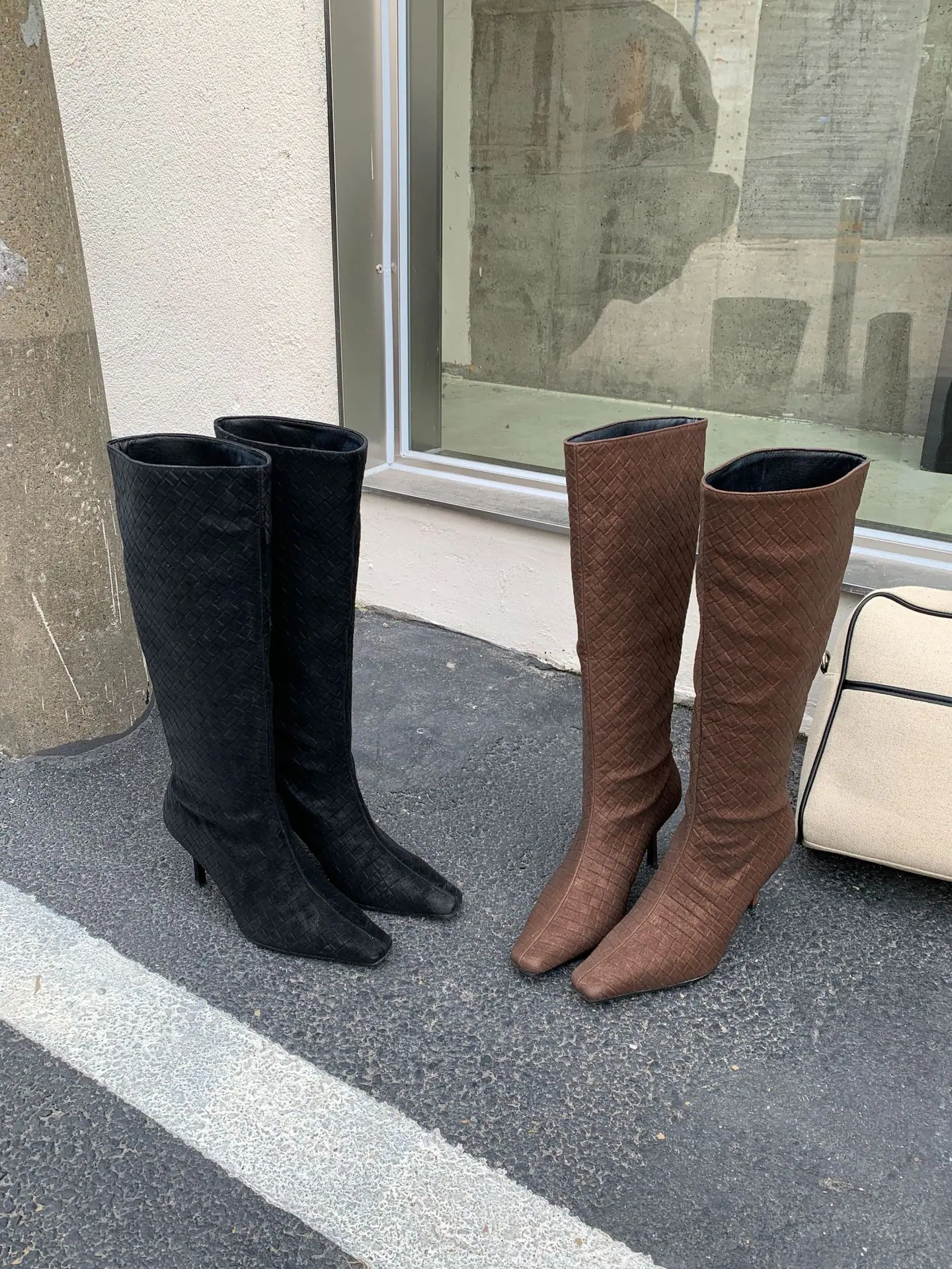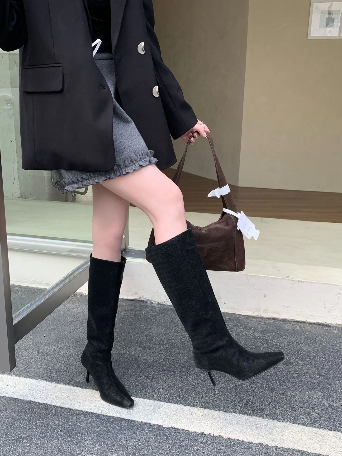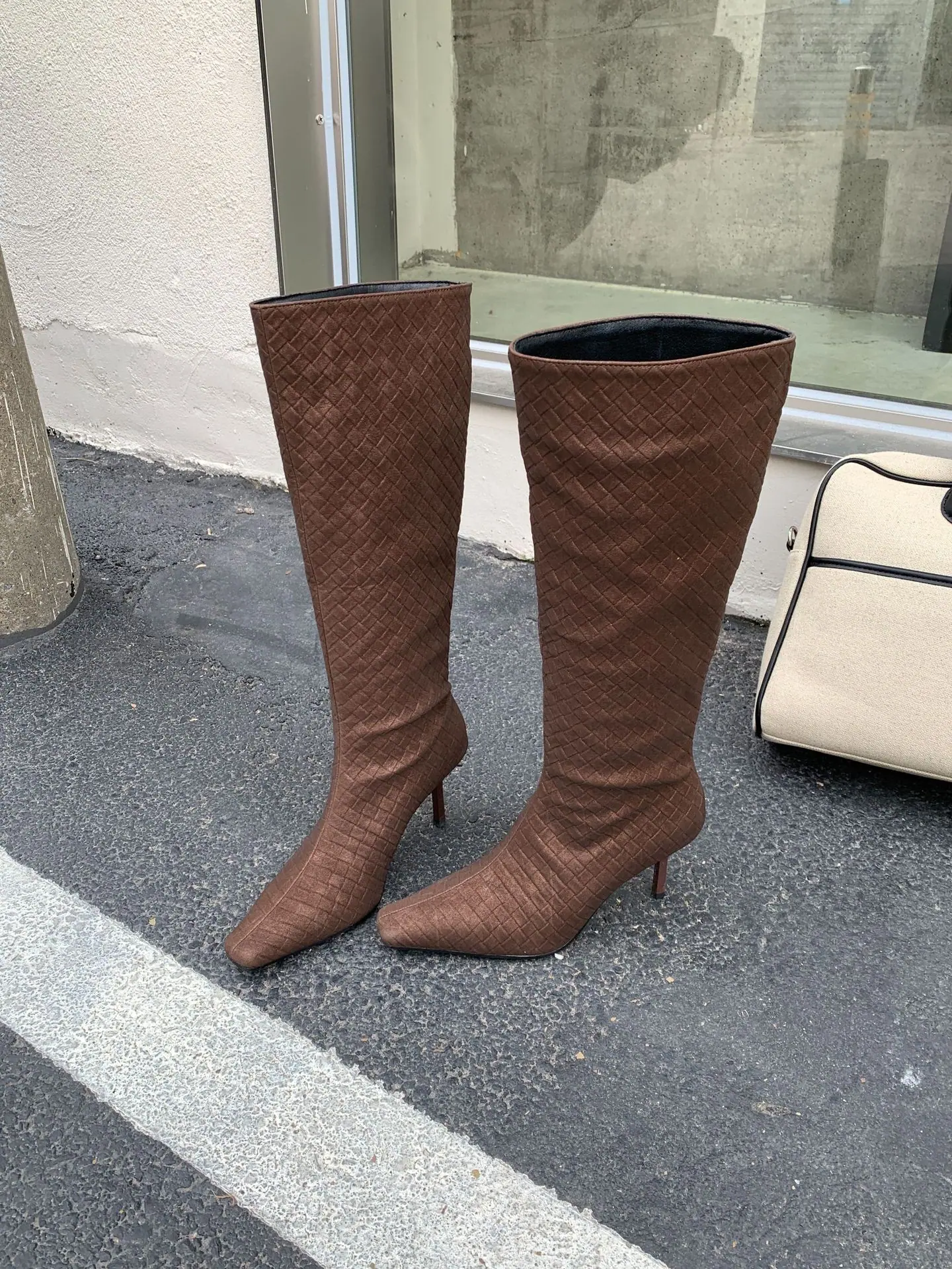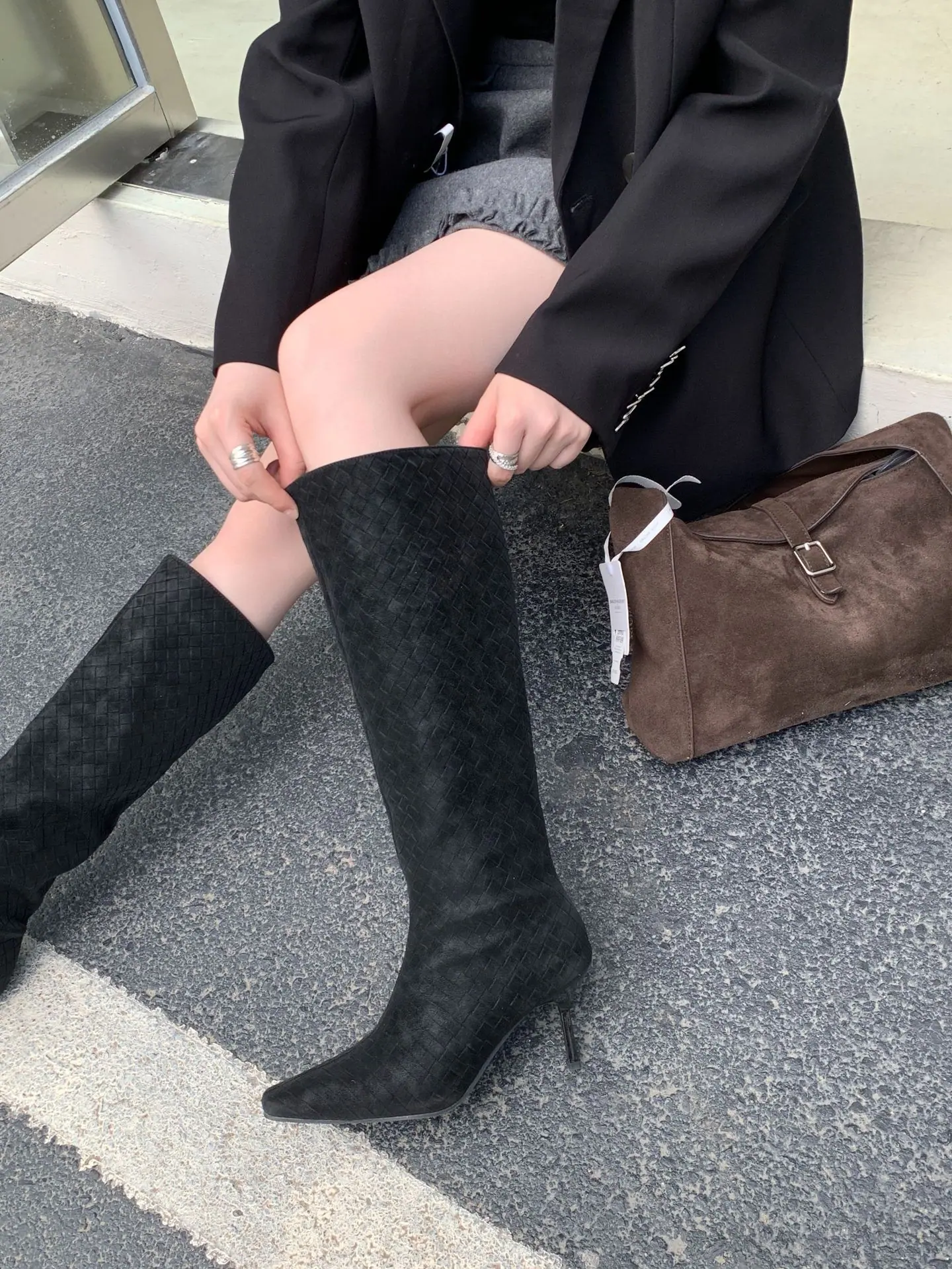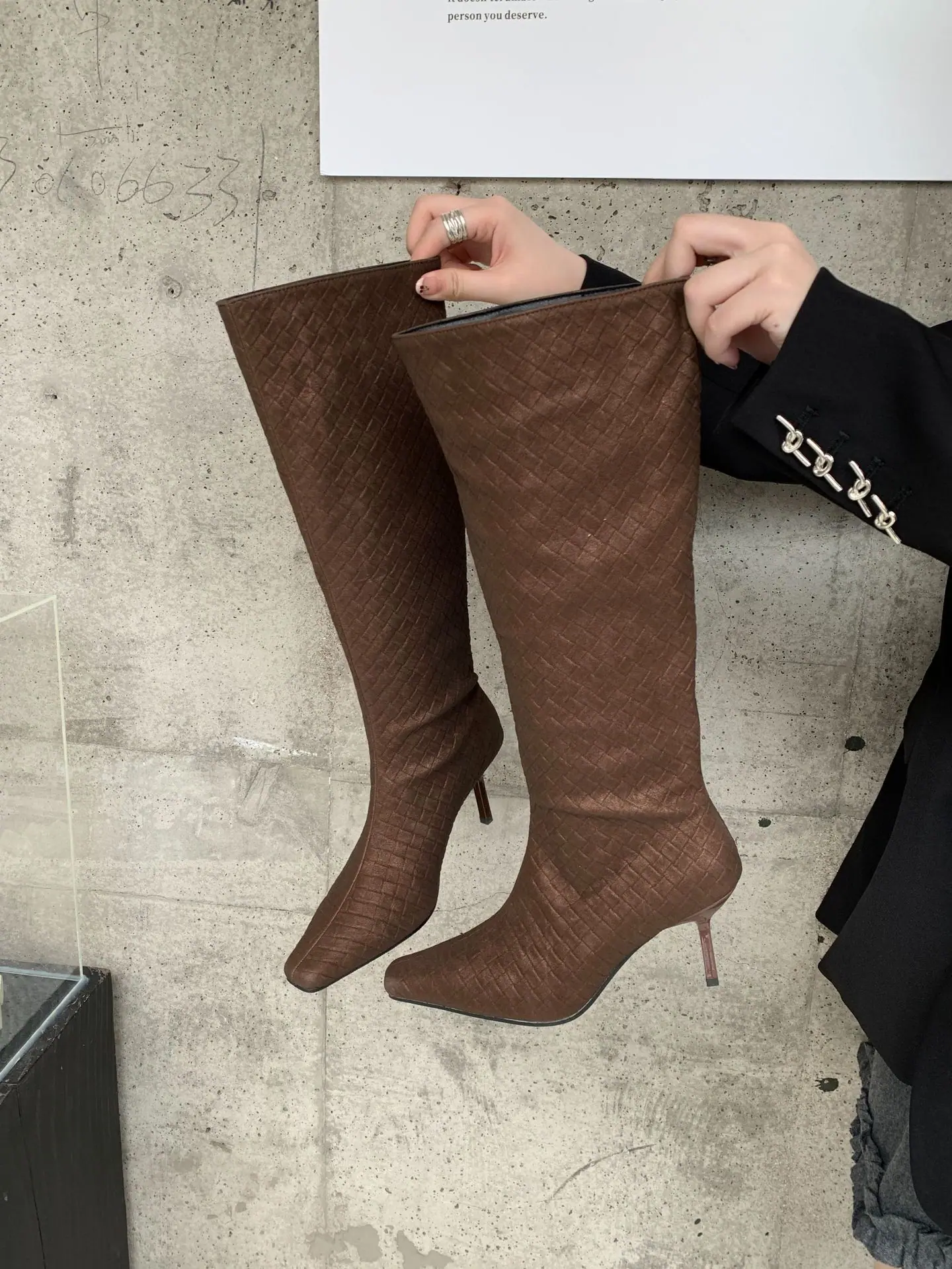 Otoño/Invierno 2025 Nuevo Europeo y Americano Ante Punta Cuadrada Tacón de Aguja Tacón Alto Temperamento Moda Francesa Belleza Sexy Botas Largas