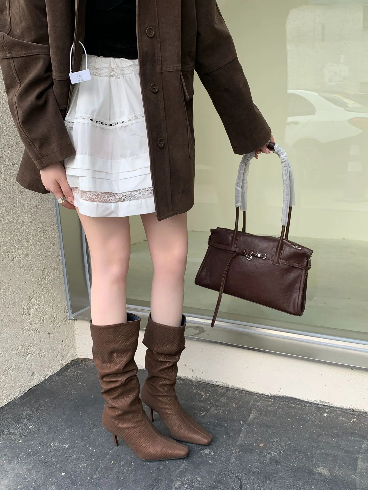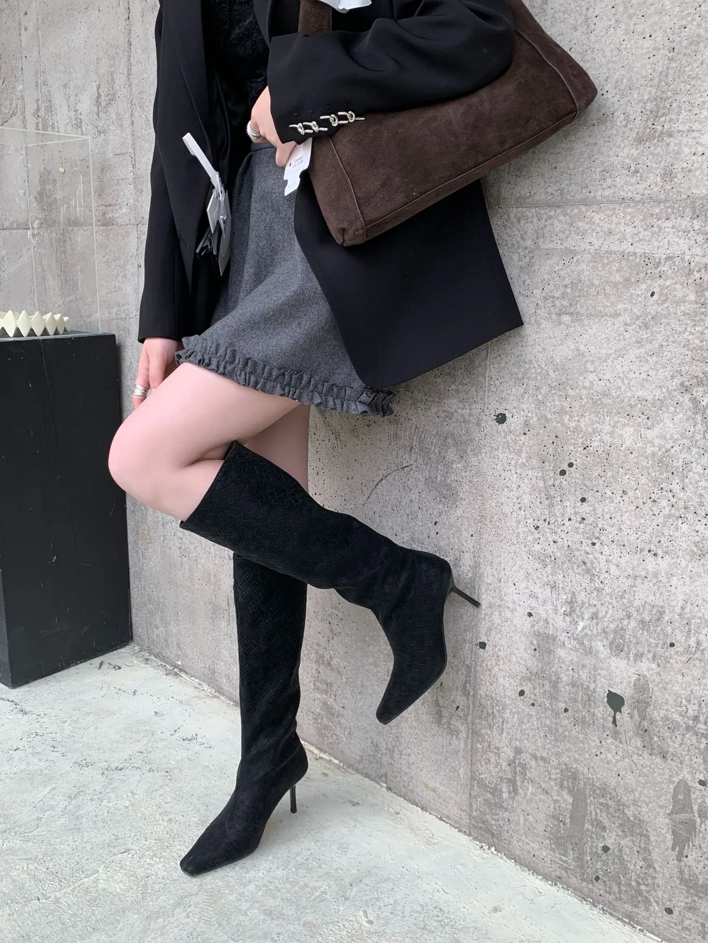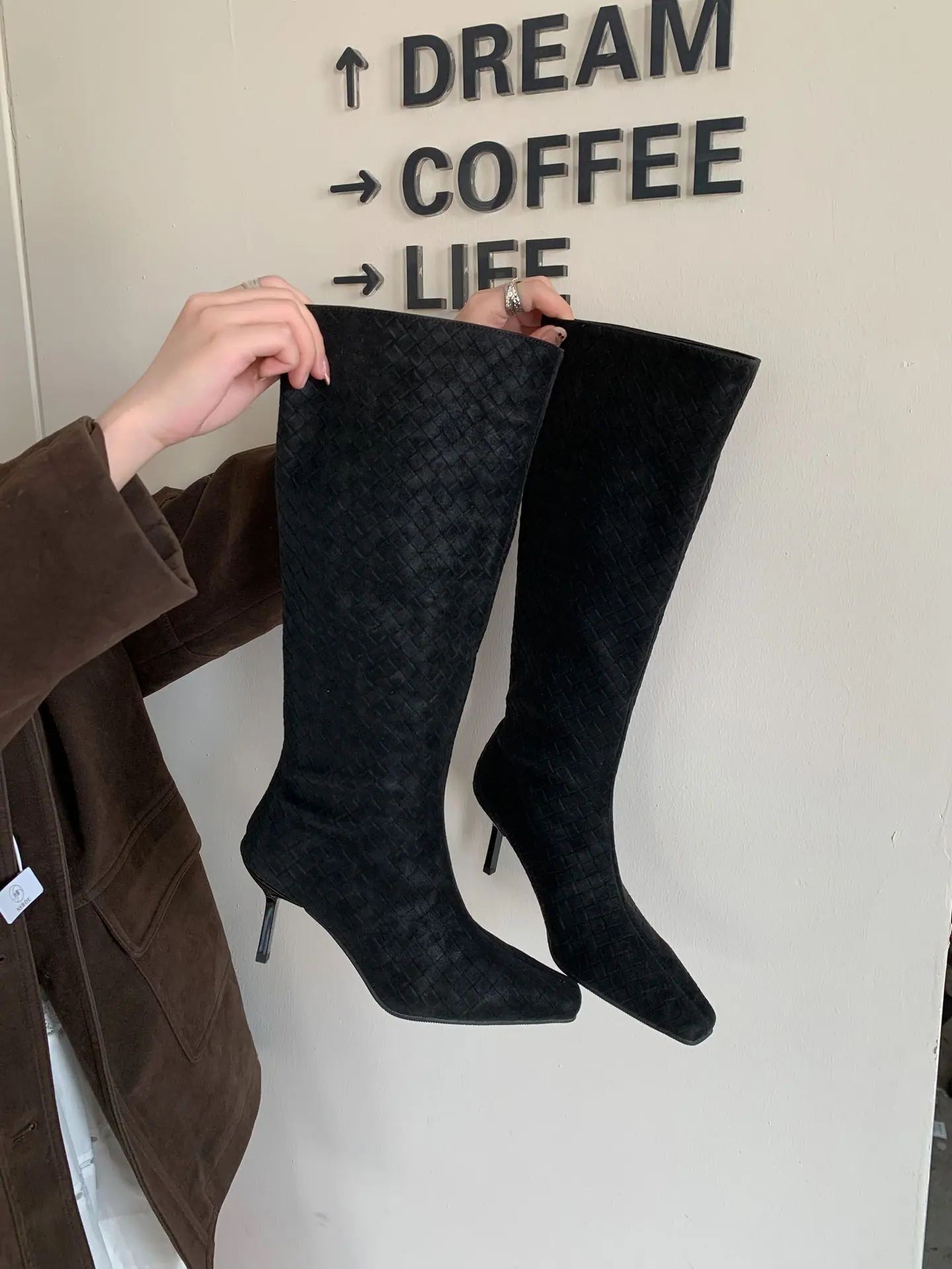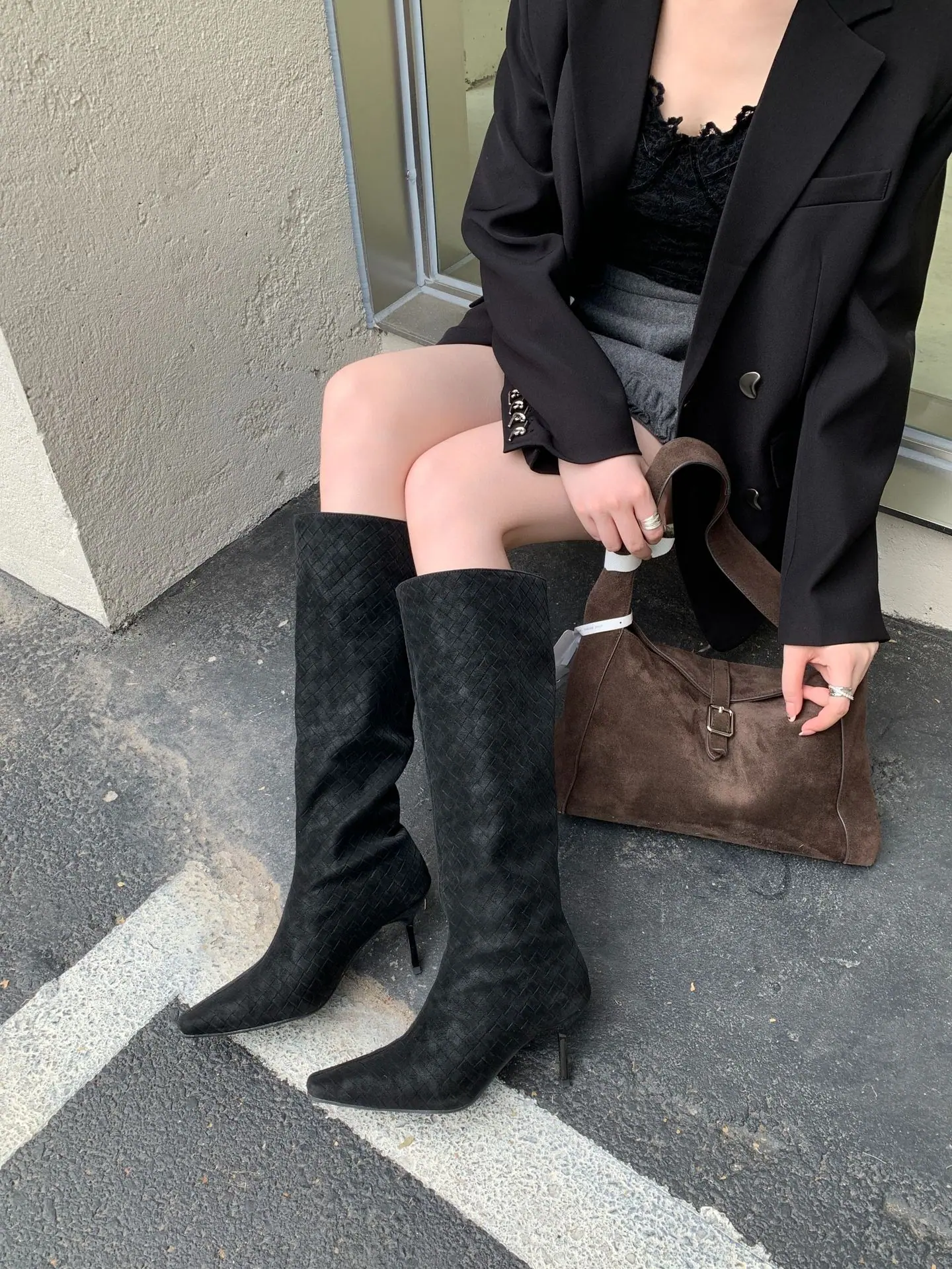 Otoño/Invierno 2025 Nuevo Europeo y Americano Ante Punta Cuadrada Tacón de Aguja Tacón Alto Temperamento Moda Francesa Belleza Sexy Botas Largas