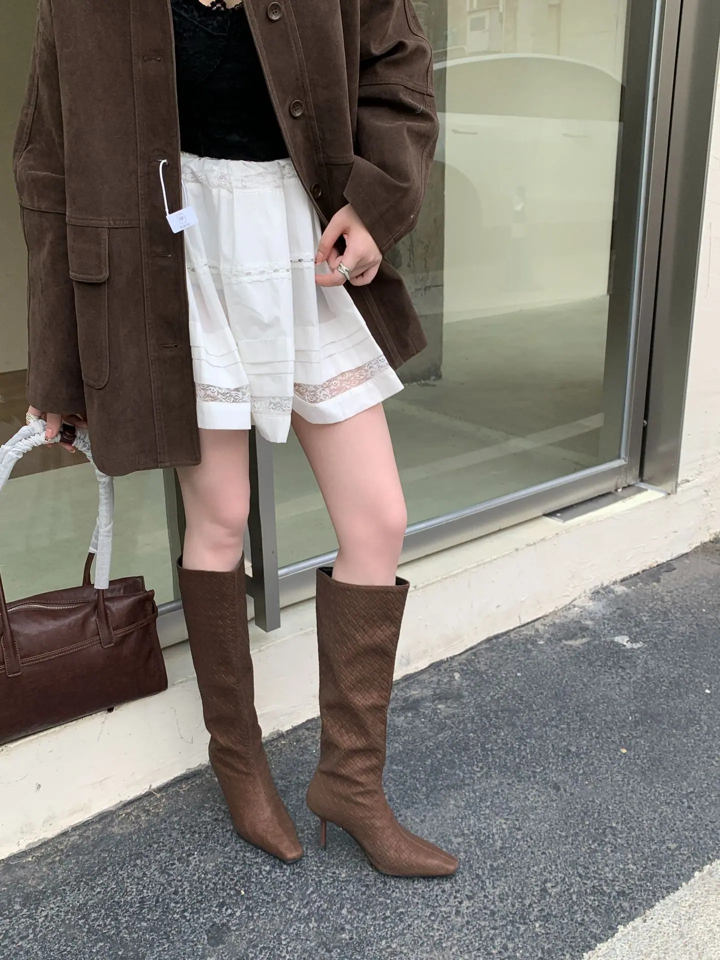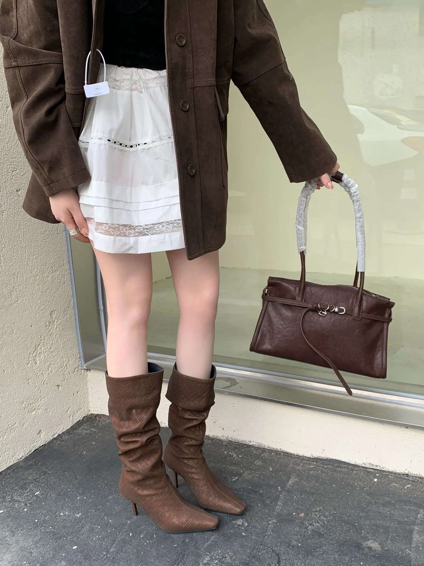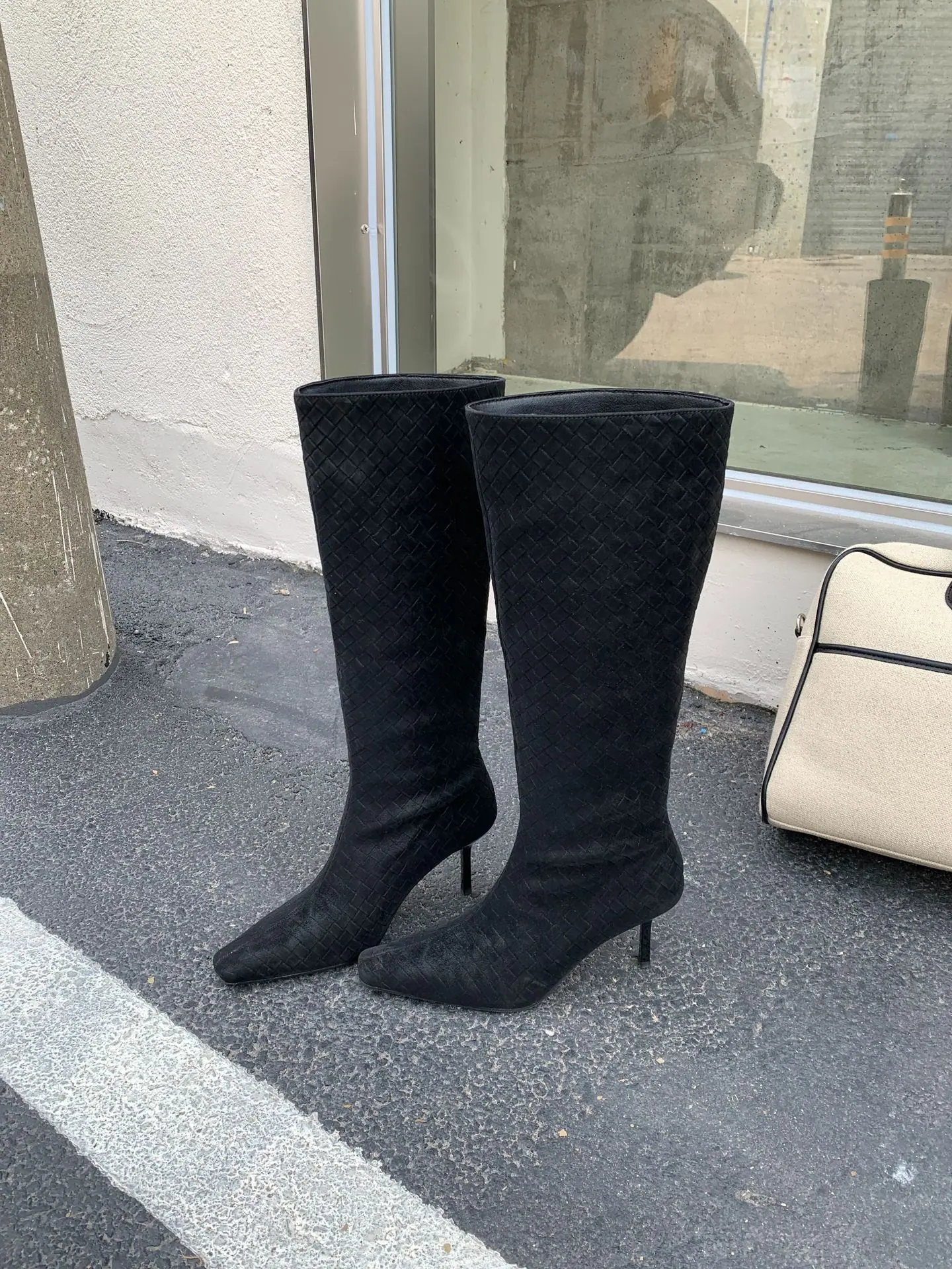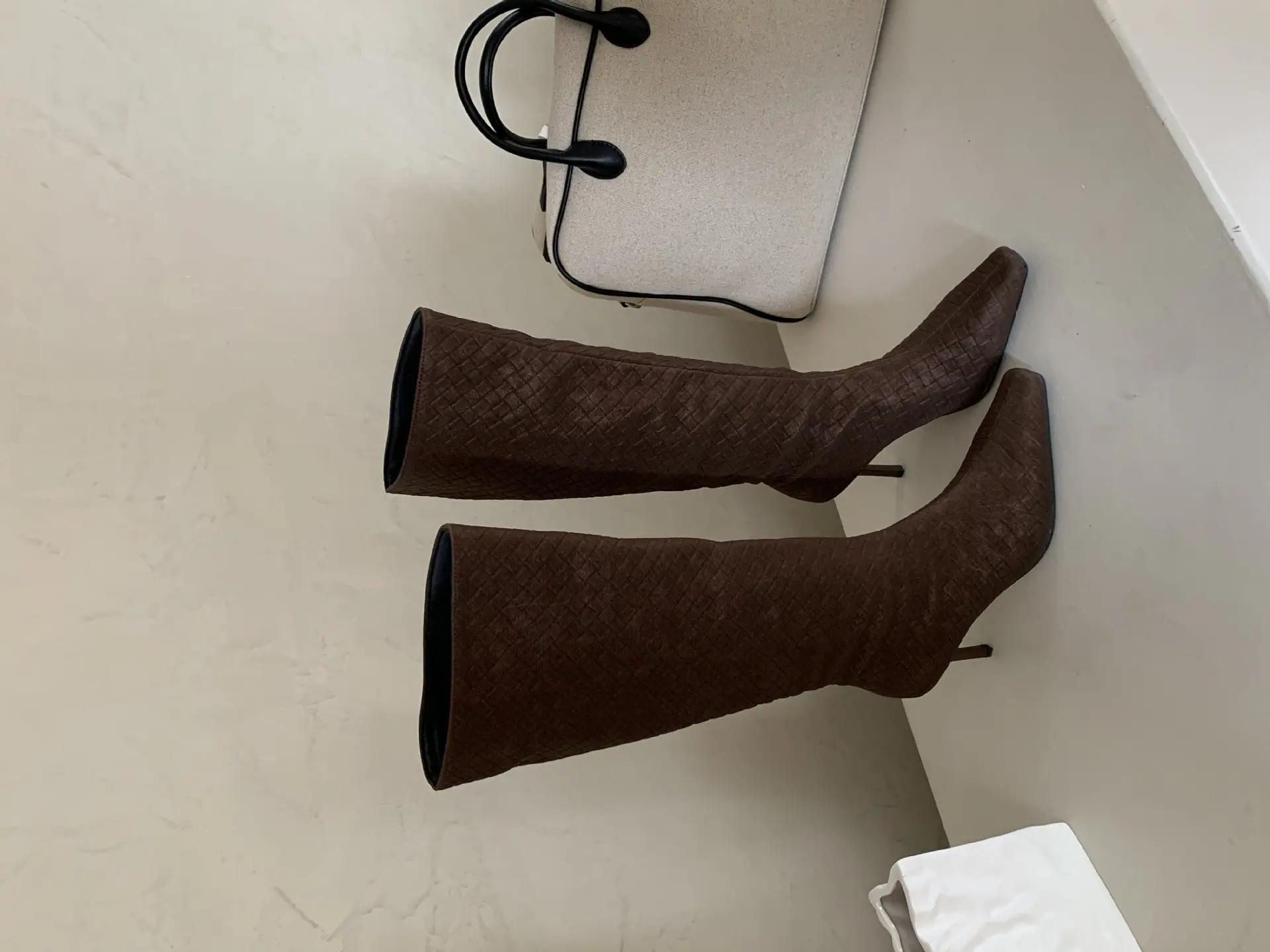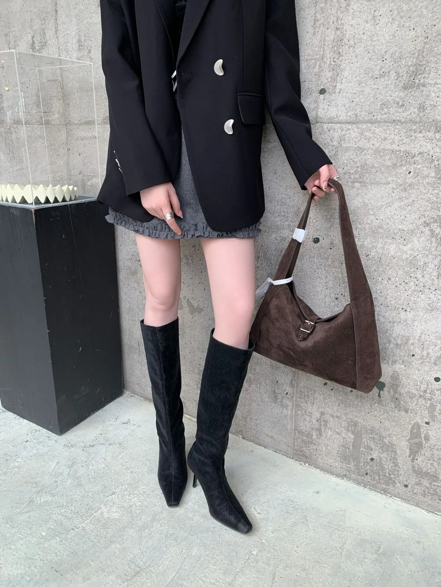 Otoño/Invierno 2025 Nuevo Europeo y Americano Ante Punta Cuadrada Tacón de Aguja Tacón Alto Temperamento Moda Francesa Belleza Sexy Botas Largas