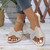 Comercio Exterior Estilo Coreano Lazo de Pedrería Ligeras Flats Pantuflas para Mujer Uso Transfronterizo Patrón de Piedra Sandalias de Playa Wish