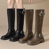 Botas Largas para Mujer, Botas Largas de Caballero Estilo Británico Retro, Nuevas Botas Western de Caña Alta con Hebilla de Cinturón Moda Otoño e Invierno 2025