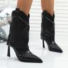 Compra Botas de Moda de Tacón Alto con Punta y Remaches Retro para Mujer 2025 Invierno Nuevas Botas de Pantalón de Tacón de Aguja Comercio Exterior Venta al por Mayor al por mayor en Joom.pro