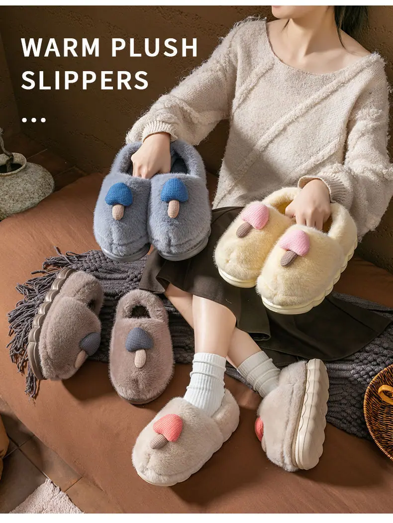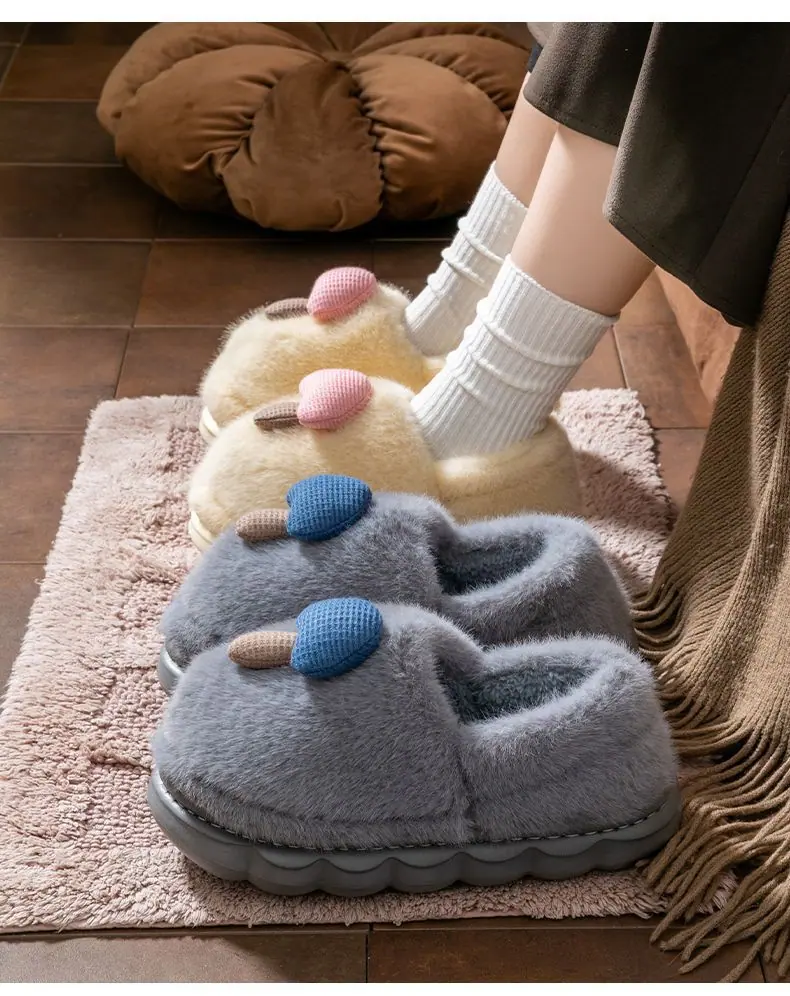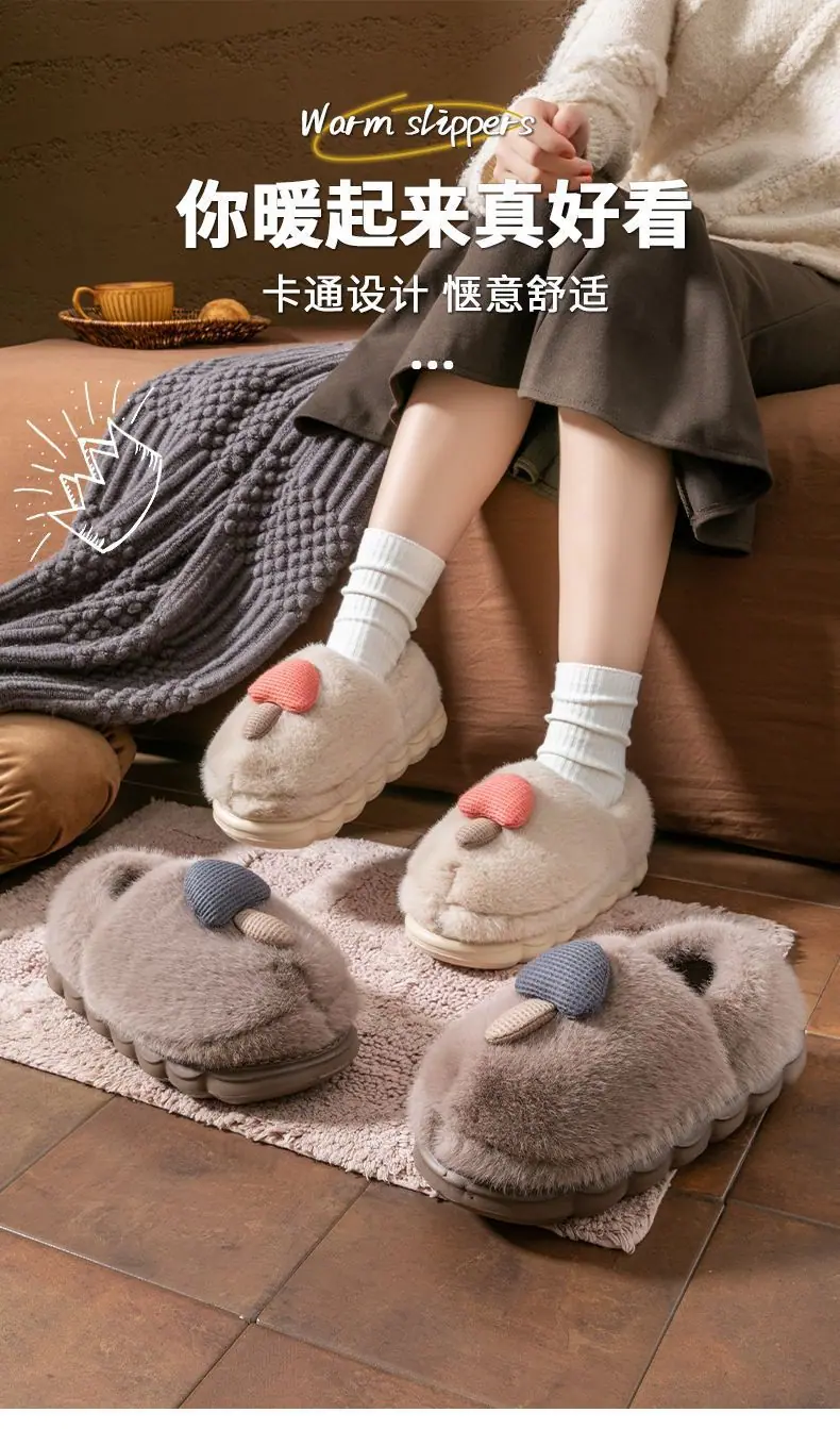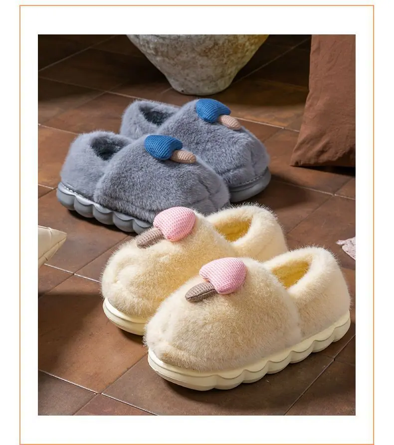Pantuflas de Algodón Pareja Mujer Invierno Interior Hogar Antideslizantes Suela Gruesa Uso Exterior Pantuflas de Algodón Hongo Hombre