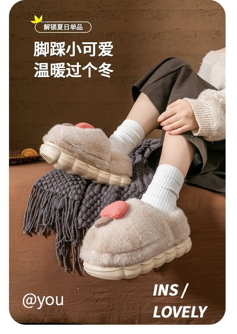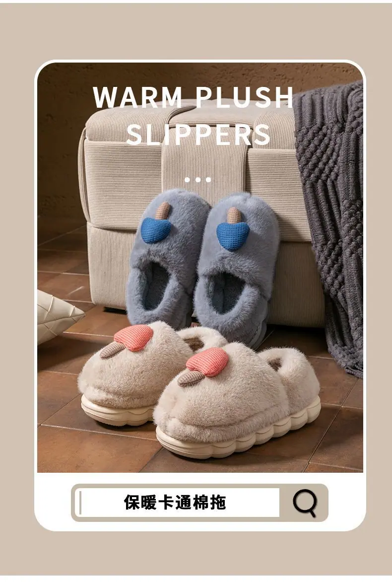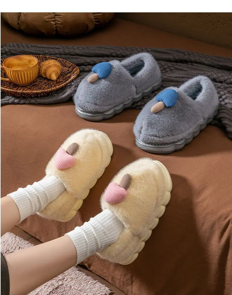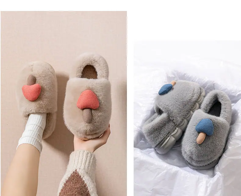 Pantuflas de Algodón Pareja Mujer Invierno Interior Hogar Antideslizantes Suela Gruesa Uso Exterior Pantuflas de Algodón Hongo Hombre