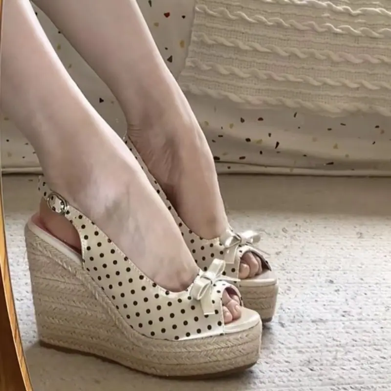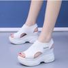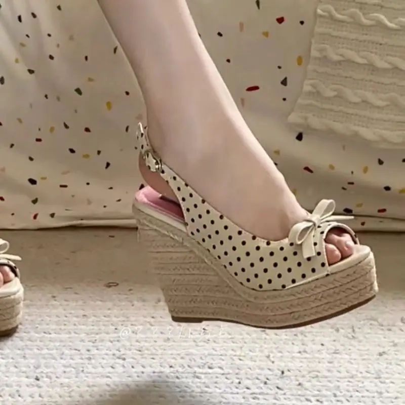 Sandalias de cuña pequeña con boca de pez para mujer 2025 Verano Nuevo Estilo Tejidas Tacón Alto Suela Gruesa Casual Retro Sandalias Romanas