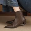 Botines Chelsea de Piel de Vacuno de Primera Capa con Tacón de Gatito Otoño e Invierno 2025 Ropa de Trabajo Sencilla Tacón Medio Grueso Punta Afilada Botines Cortos de Cuero Genuino para Mujer