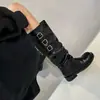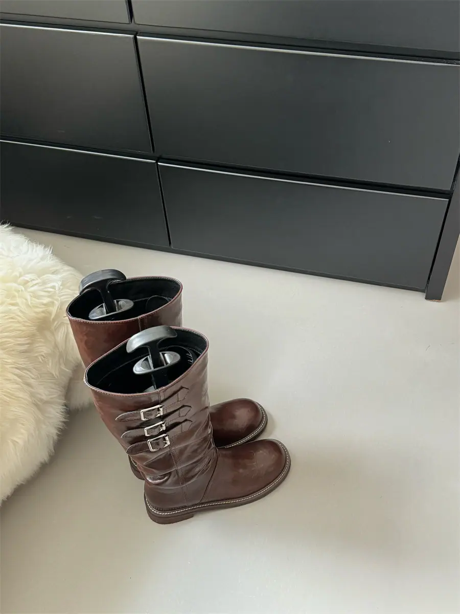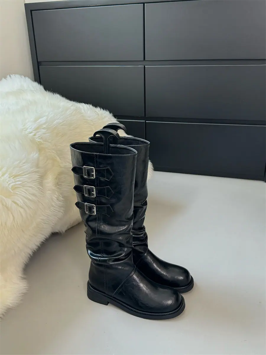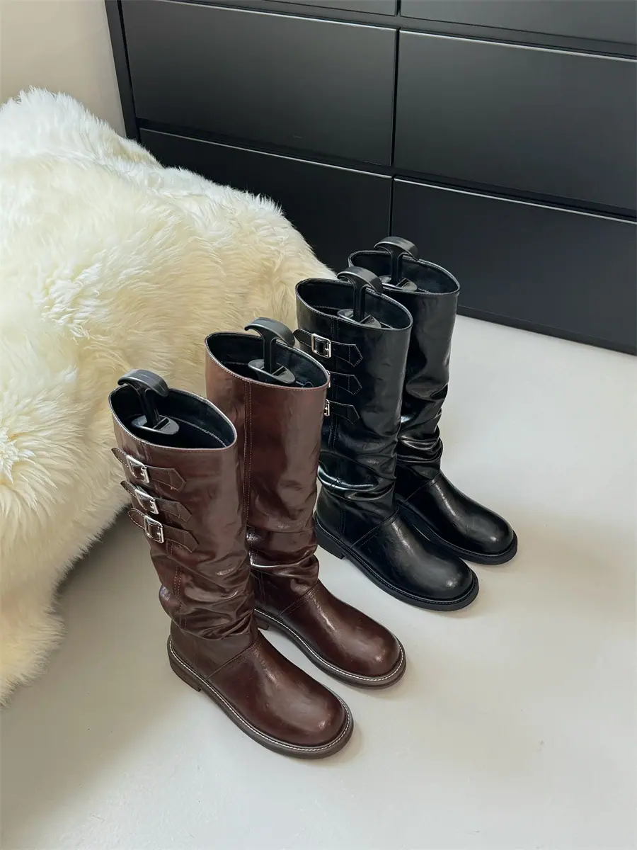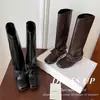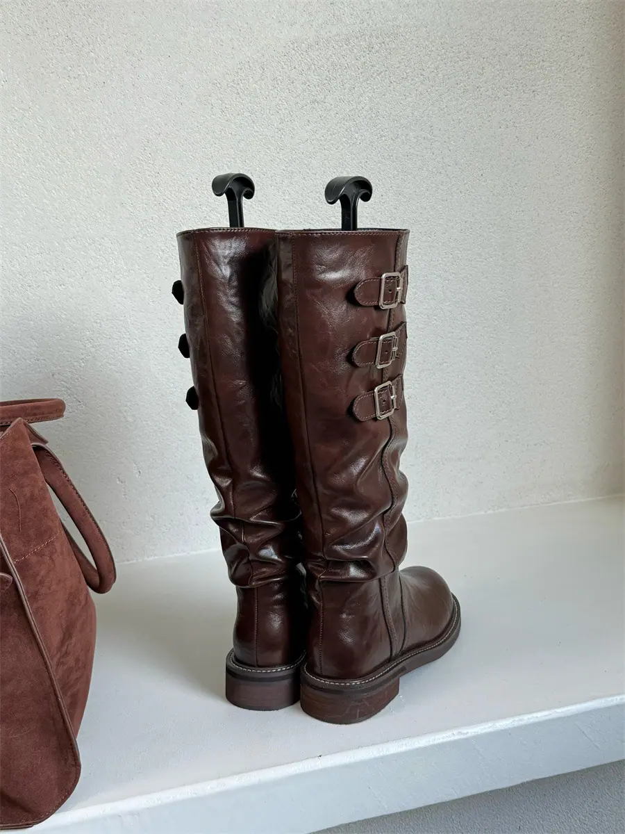 Botas de caballero hasta la rodilla de estilo europeo y americano con tacón grueso y suela gruesa, nicho, otoño e invierno 2025, nuevas, plisadas, retro, versátiles, con caña