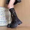 Botas Retro de Suela Gruesa para Mujer 2025 Otoño e Invierno Nuevo Estilo Británico Aumentando la Altura y Adelgazando la Figura Hebilla de Cinturón Botas Altas de Caballero