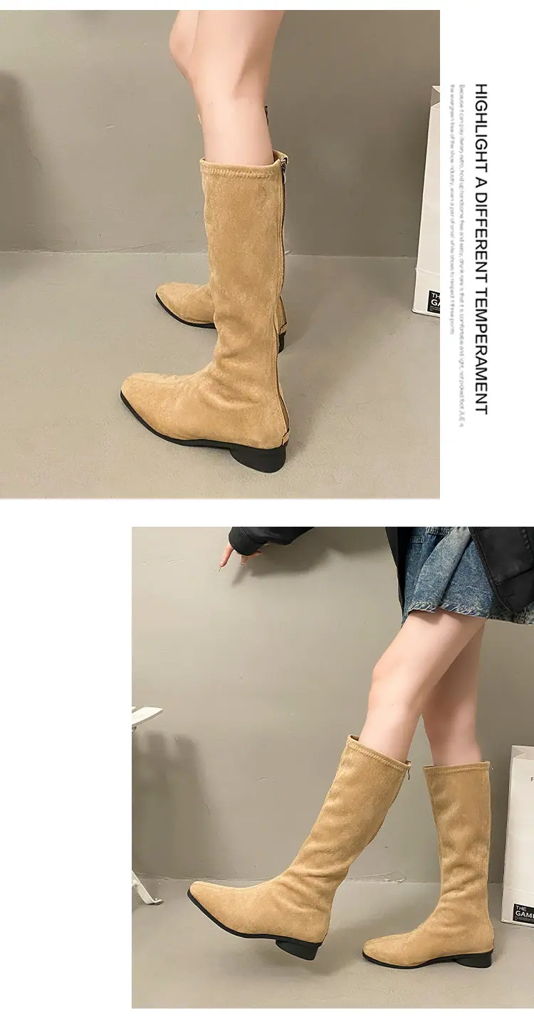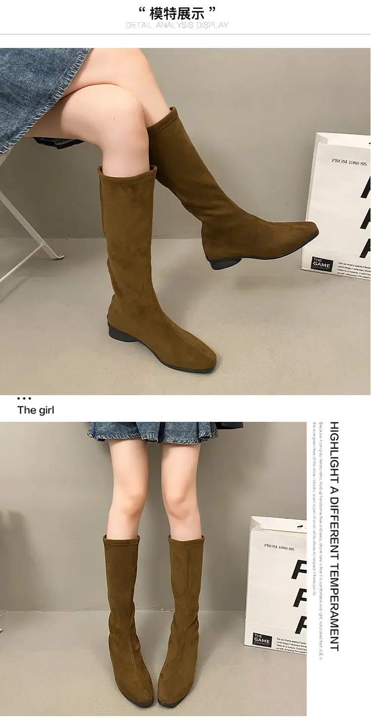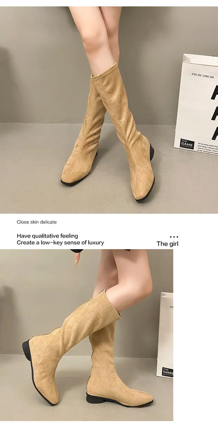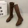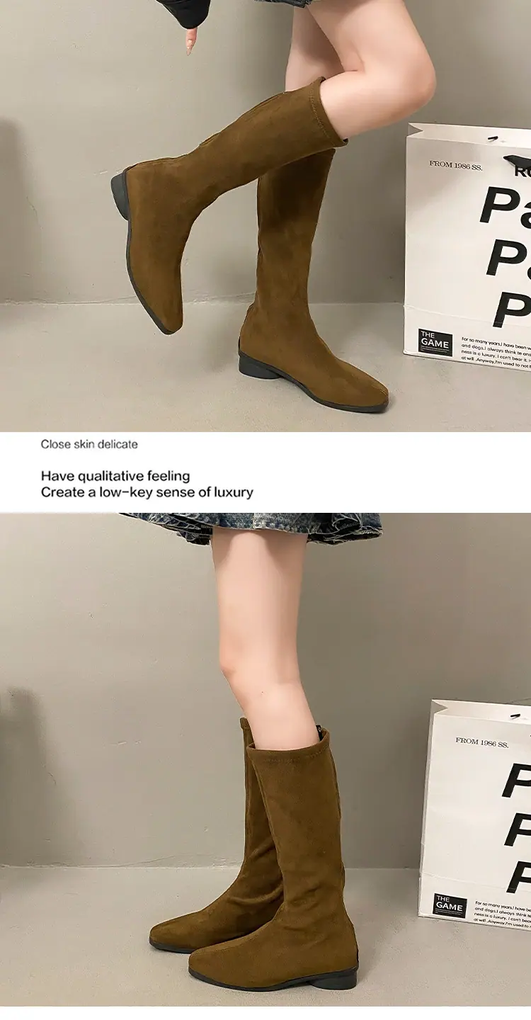Botas Retro Planas hasta la Rodilla Zapatos de Mujer 2025 Otoño e Invierno Nuevas Botas de Caballero Simples Versátiles Botas Largas Botas Individuales de Primavera y Otoño
