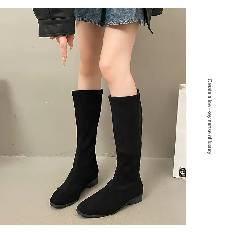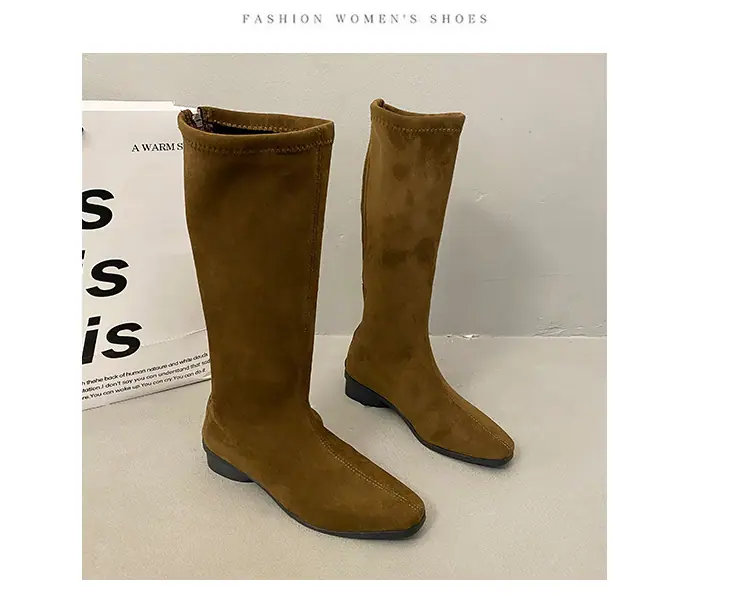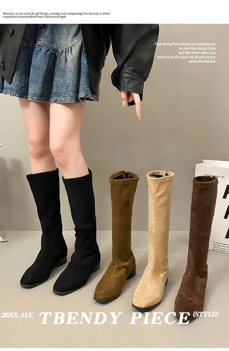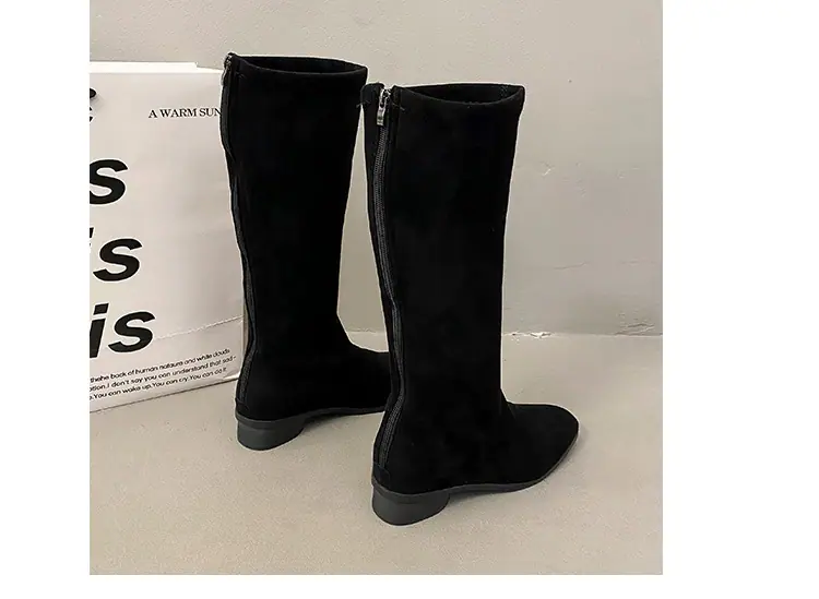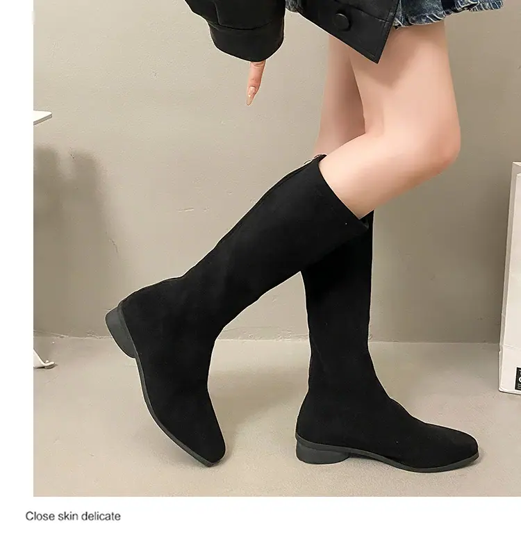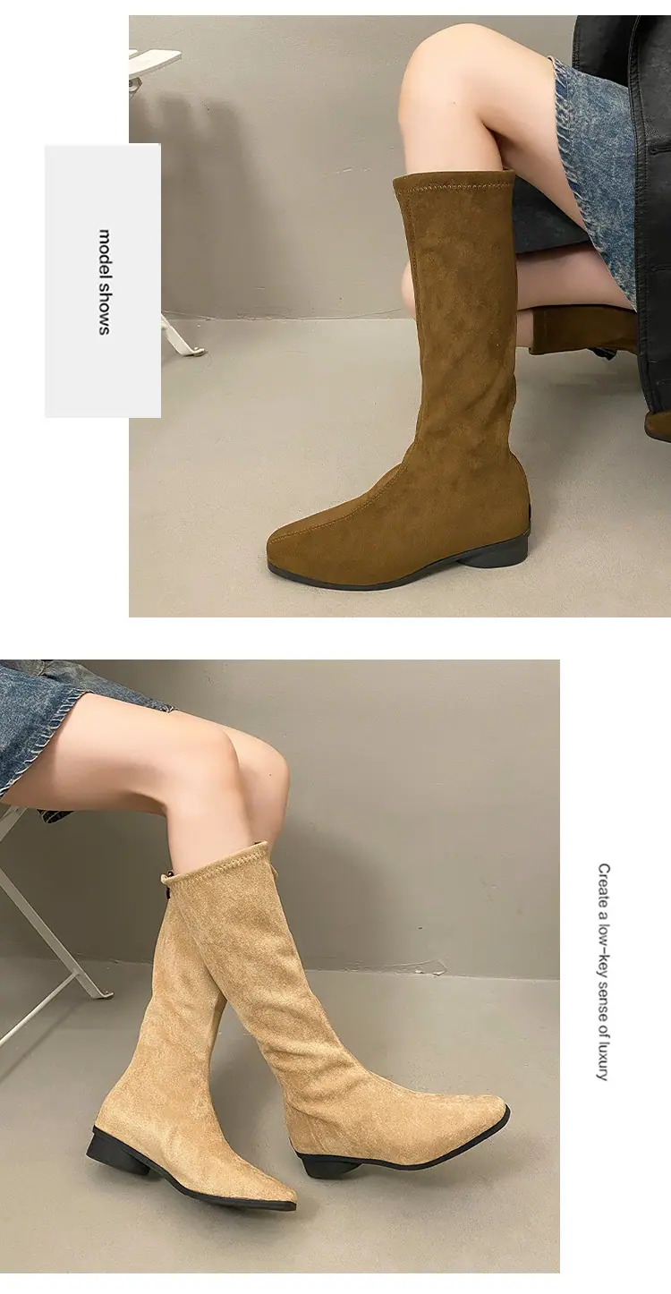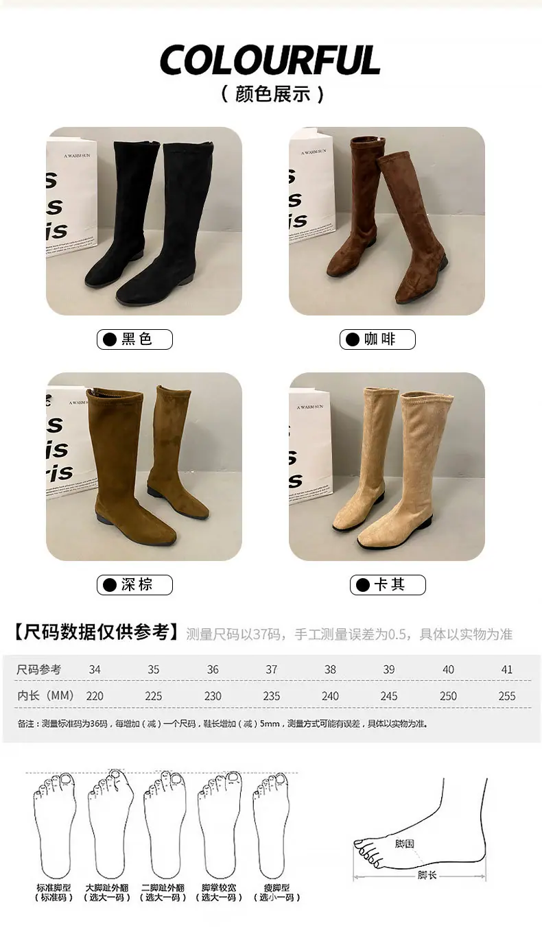 Botas Retro Planas hasta la Rodilla Zapatos de Mujer 2025 Otoño e Invierno Nuevas Botas de Caballero Simples Versátiles Botas Largas Botas Individuales de Primavera y Otoño