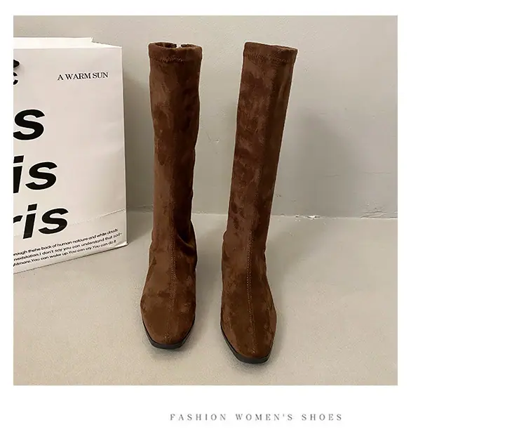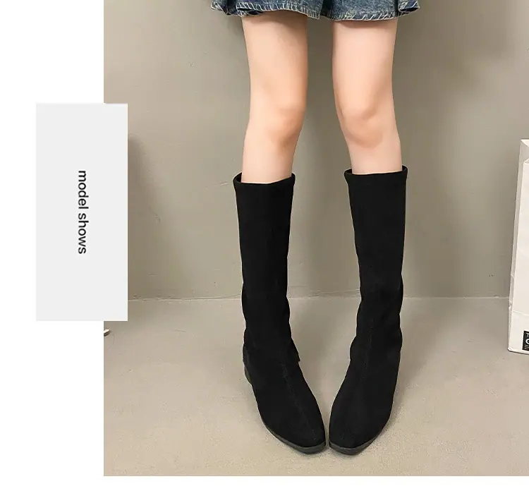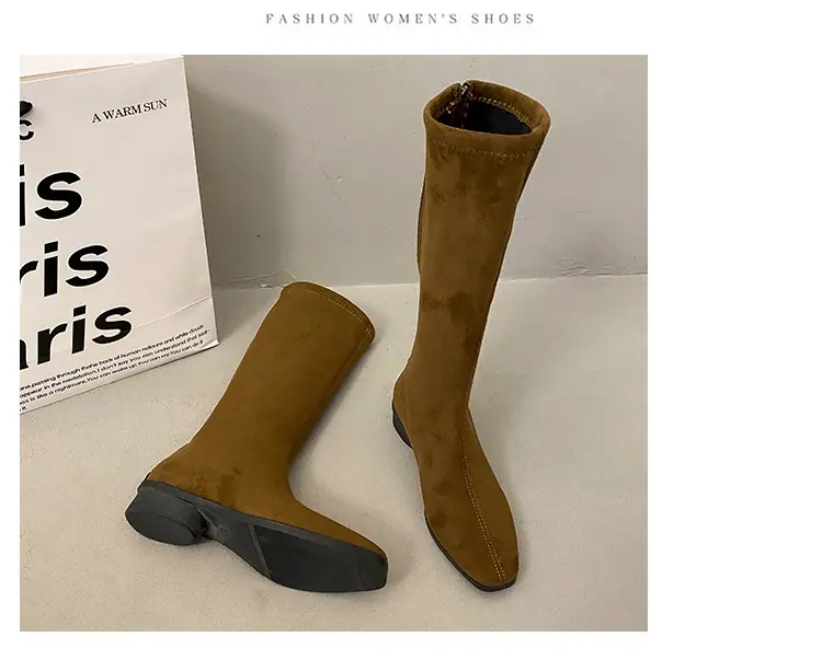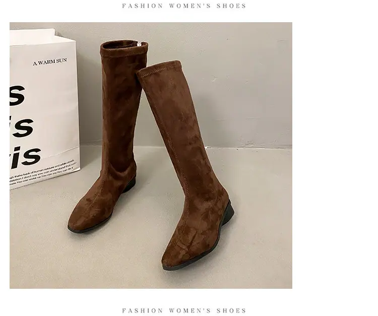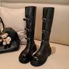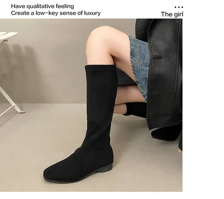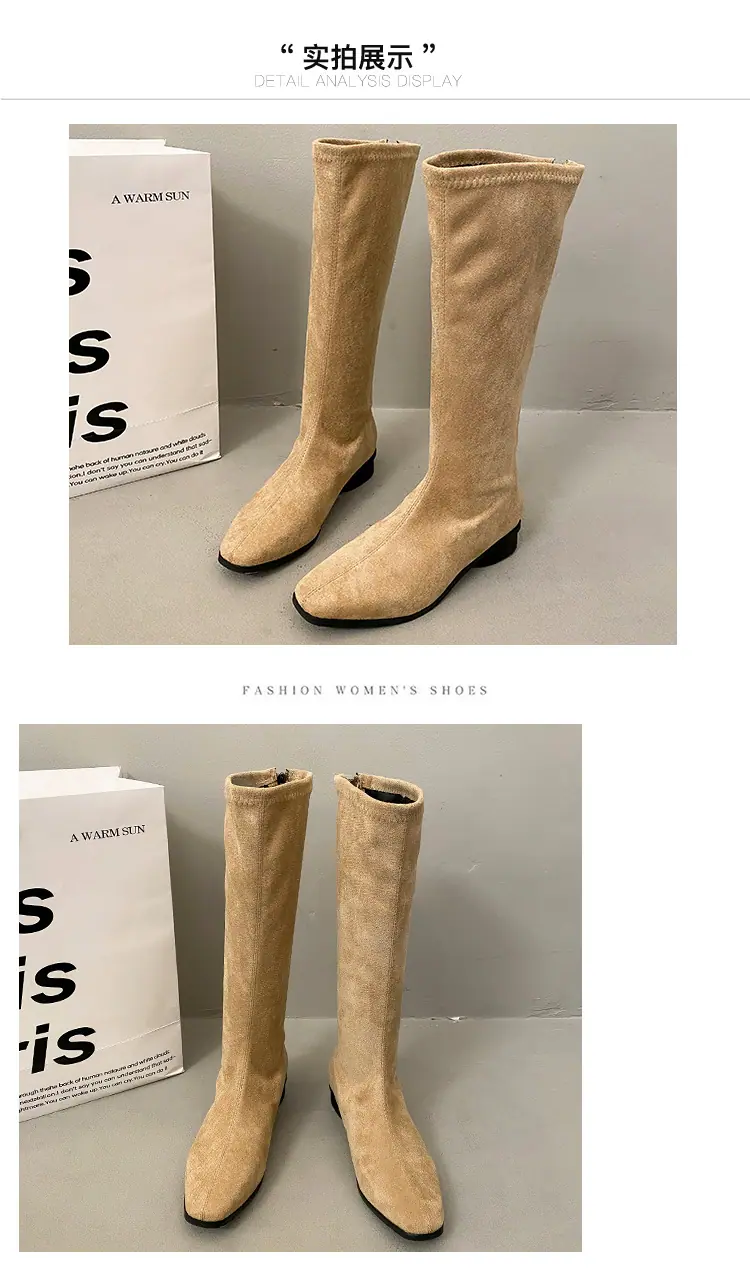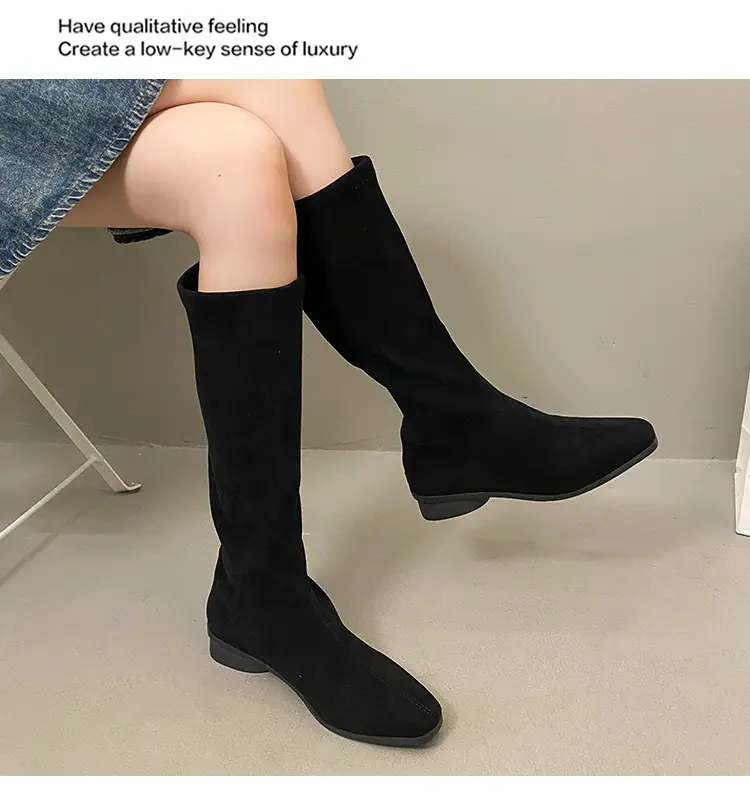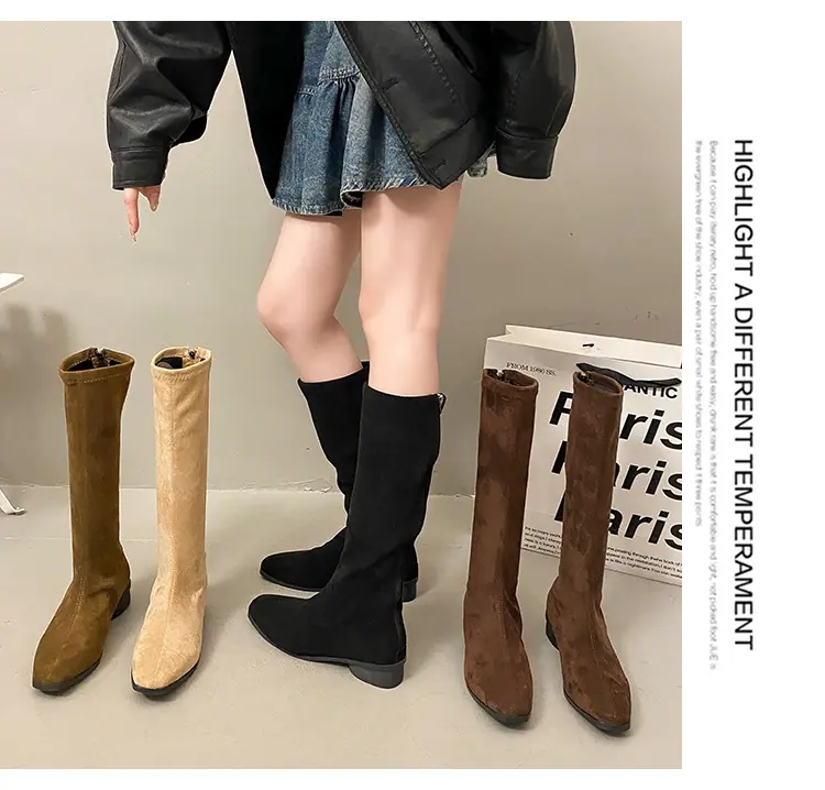 Botas Retro Planas hasta la Rodilla Zapatos de Mujer 2025 Otoño e Invierno Nuevas Botas de Caballero Simples Versátiles Botas Largas Botas Individuales de Primavera y Otoño