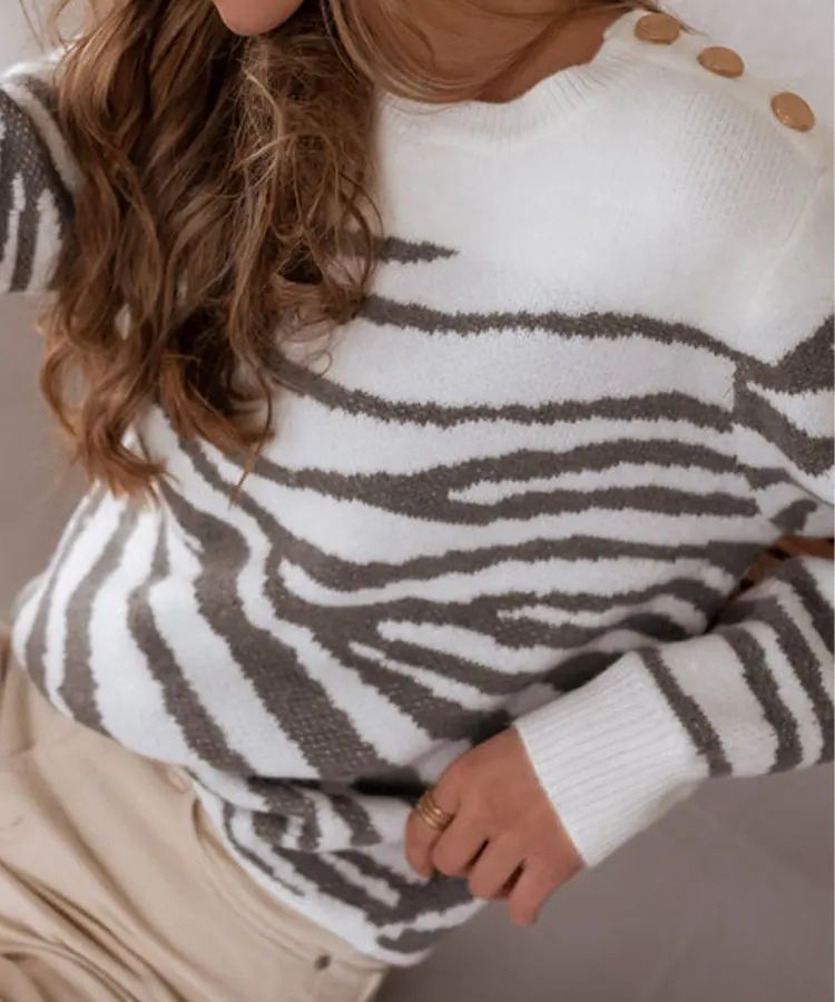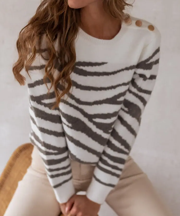 2023 Otoño e Invierno Transfronterizo Europeo y Americano Nuevo Suéter de Cuello Redondo y Cuello Alto de Punto a Rayas Casual para Mujer