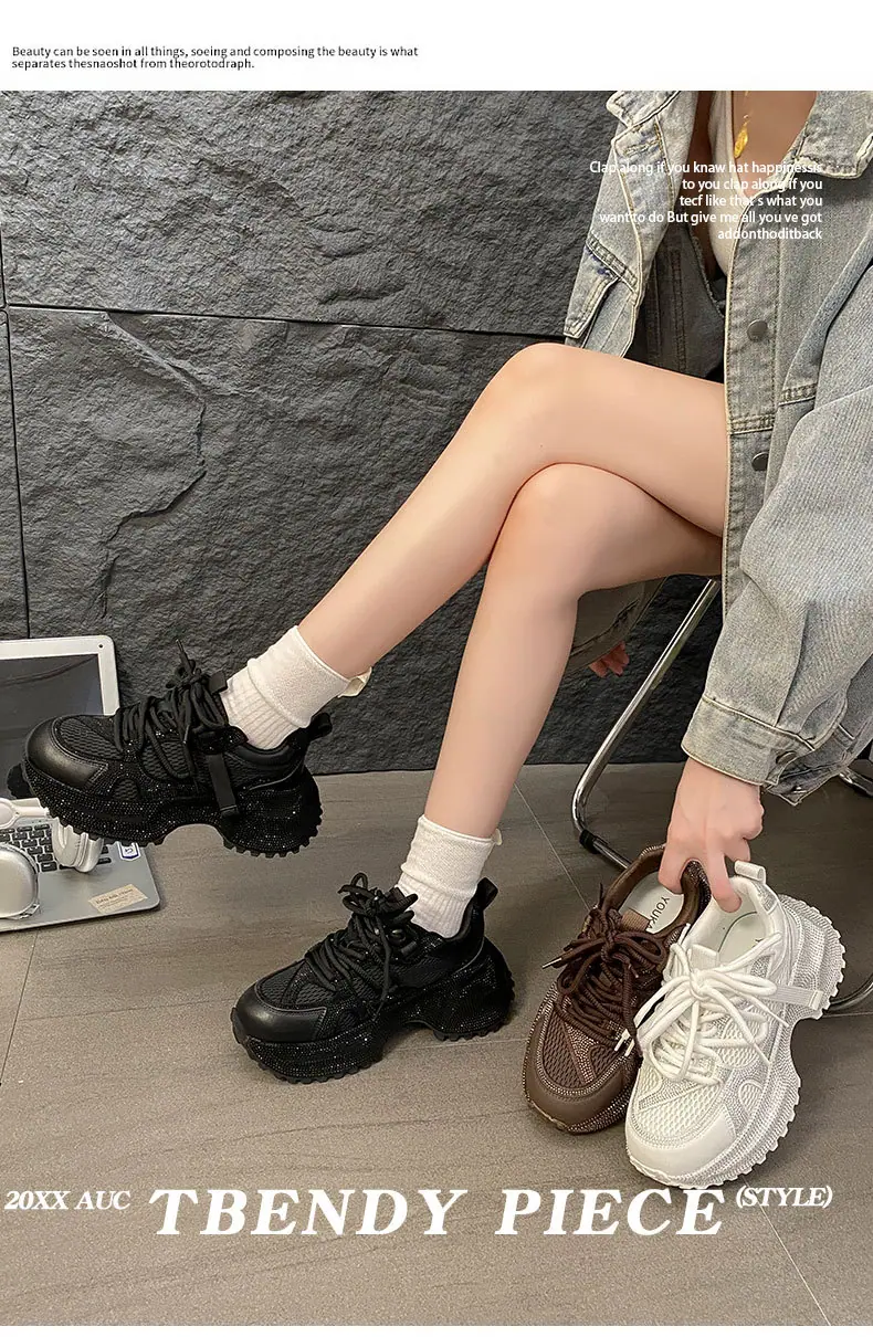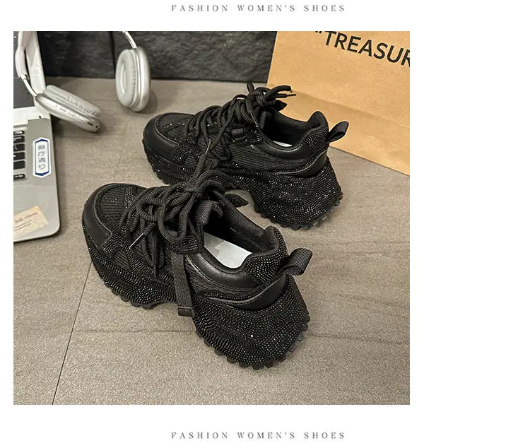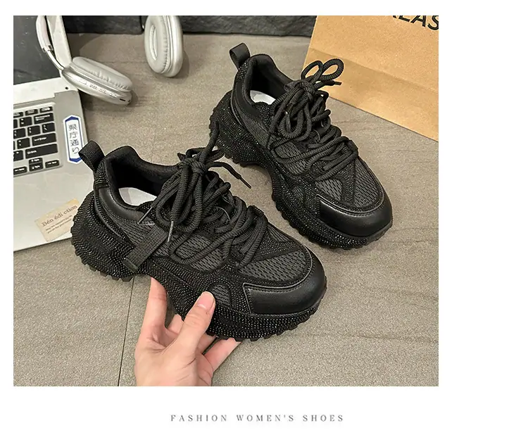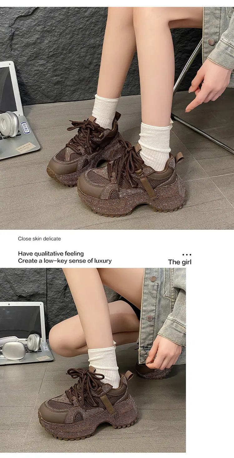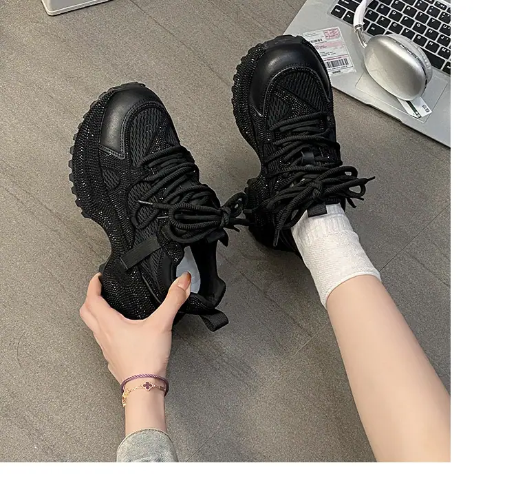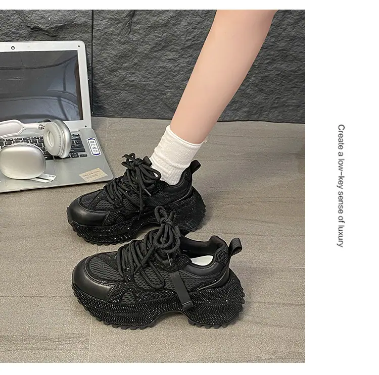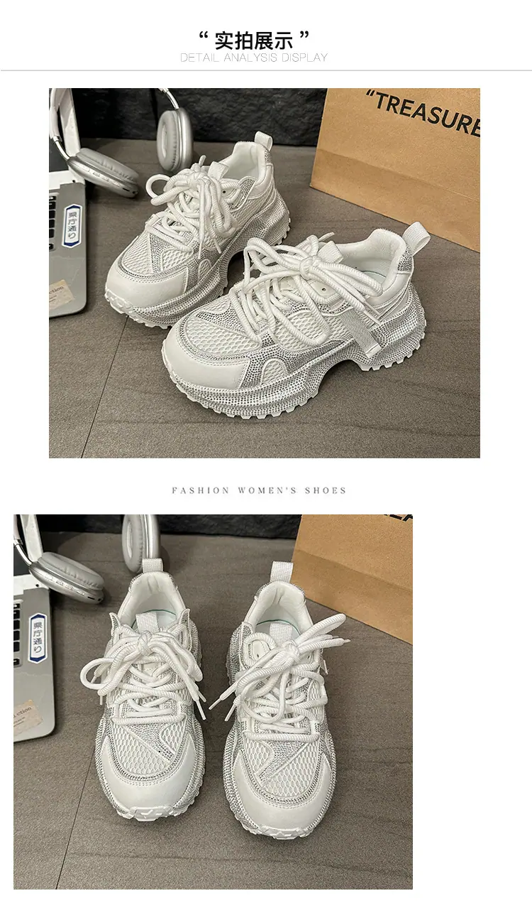 Zapatos de Papá de Suela Gruesa para Mujer ins Tendencia 2025 Otoño Nuevo Transpirable Diamante de Imitación Diamante Completo Estilo Urbano Zapatos Deportivos Casuales Súper Calientes