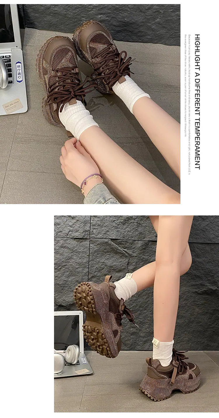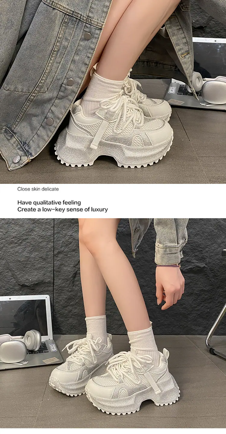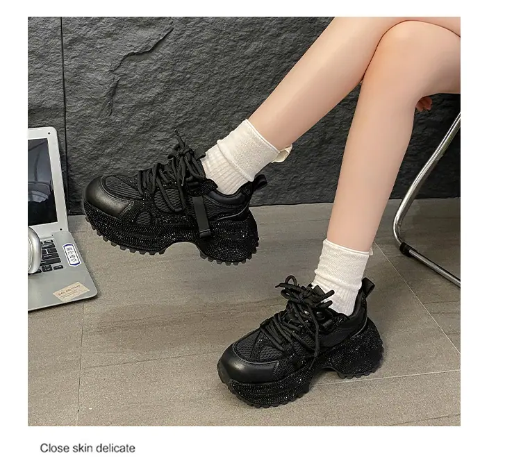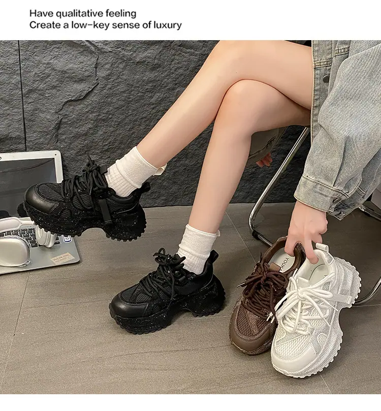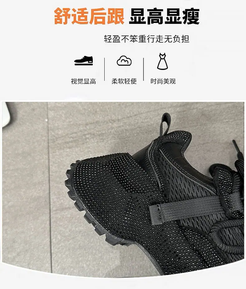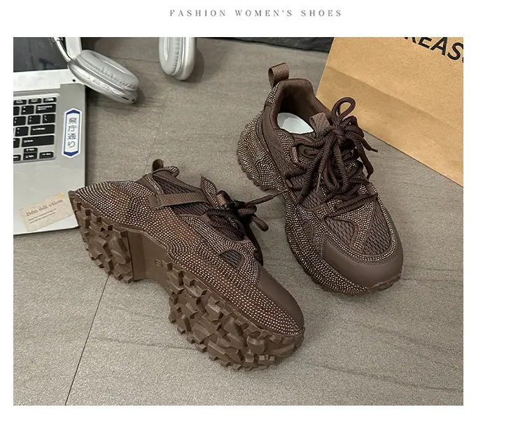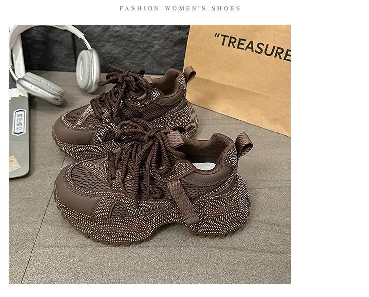Zapatos de Papá de Suela Gruesa para Mujer ins Tendencia 2025 Otoño Nuevo Transpirable Diamante de Imitación Diamante Completo Estilo Urbano Zapatos Deportivos Casuales Súper Calientes