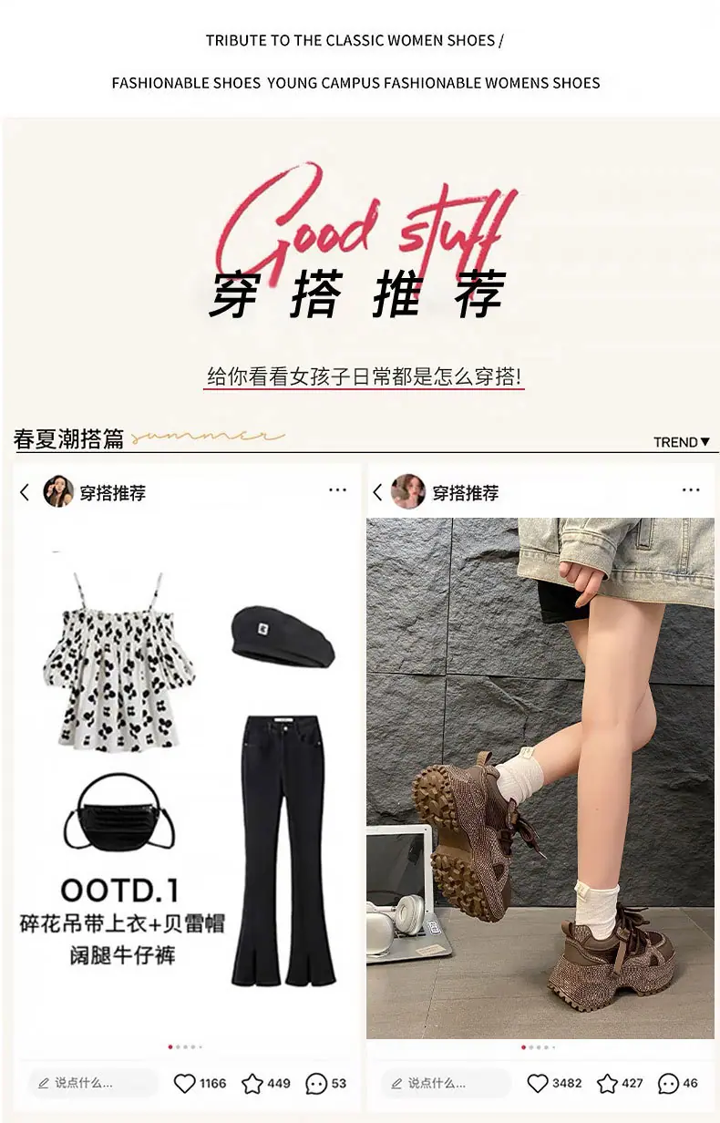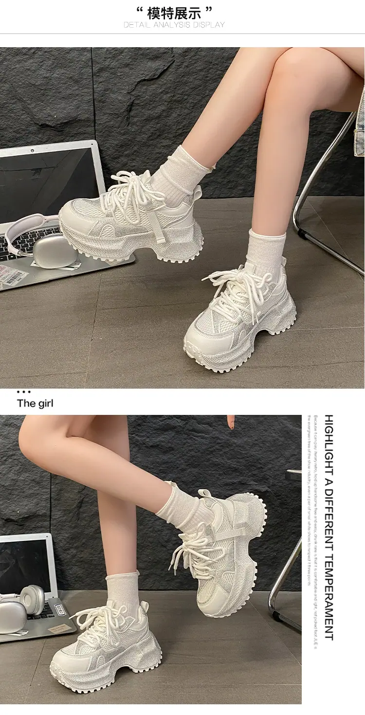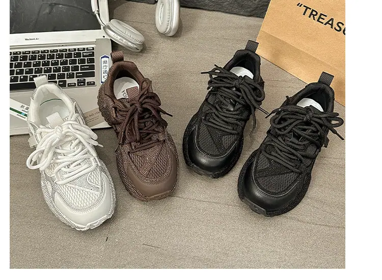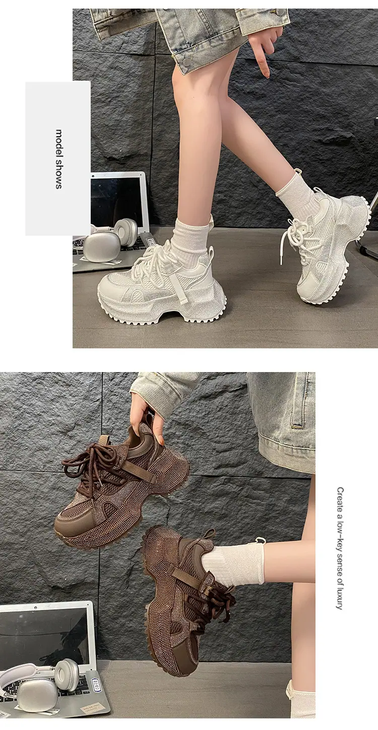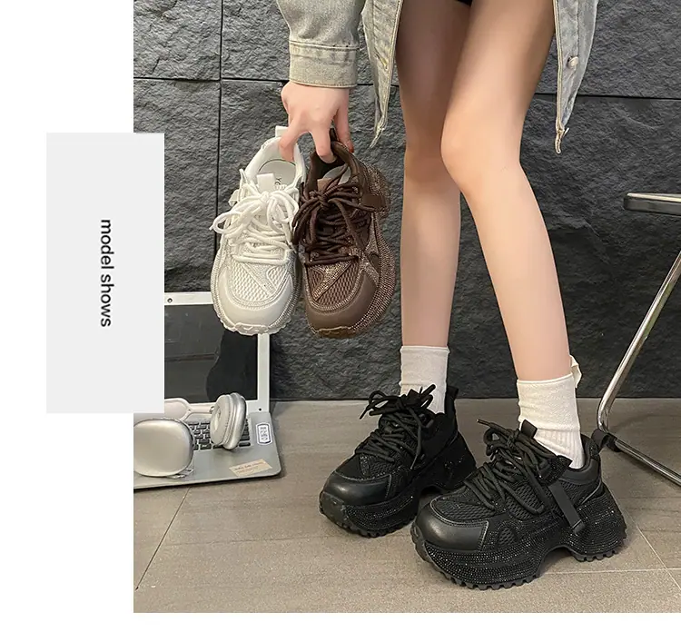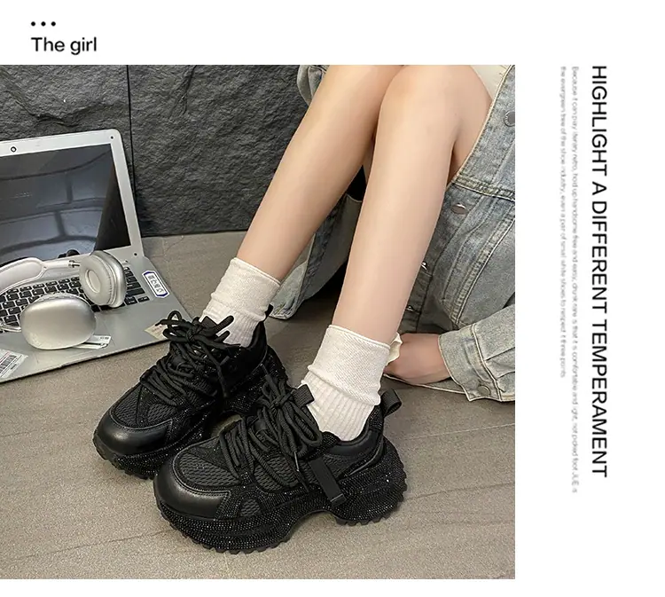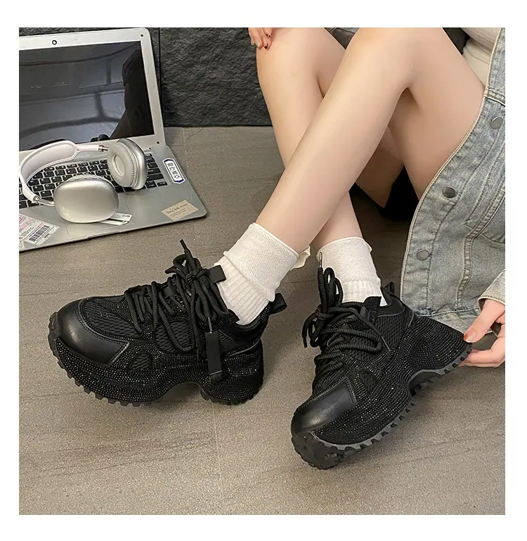 Zapatos de Papá de Suela Gruesa para Mujer ins Tendencia 2025 Otoño Nuevo Transpirable Diamante de Imitación Diamante Completo Estilo Urbano Zapatos Deportivos Casuales Súper Calientes