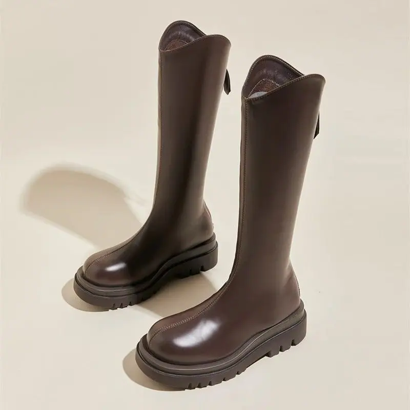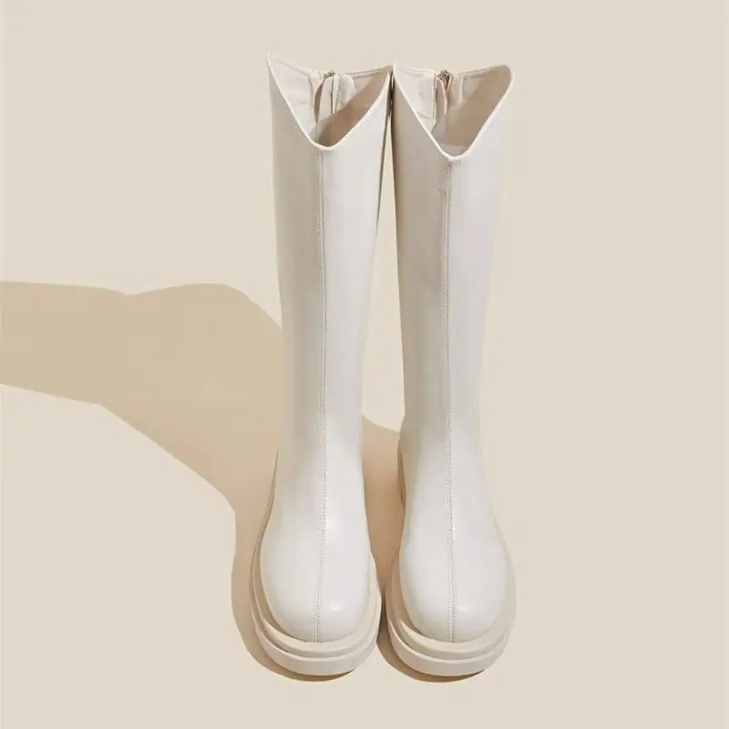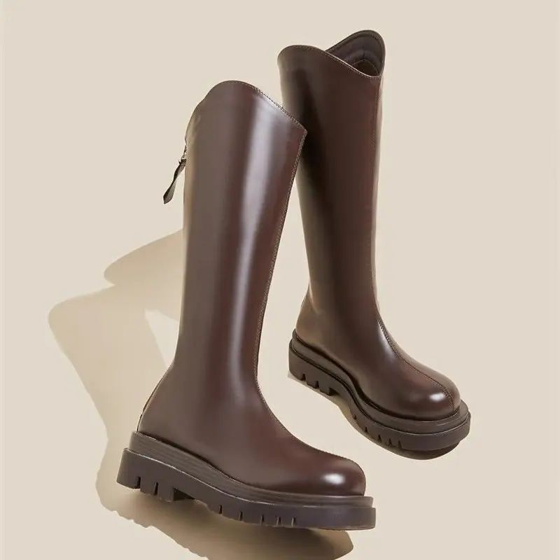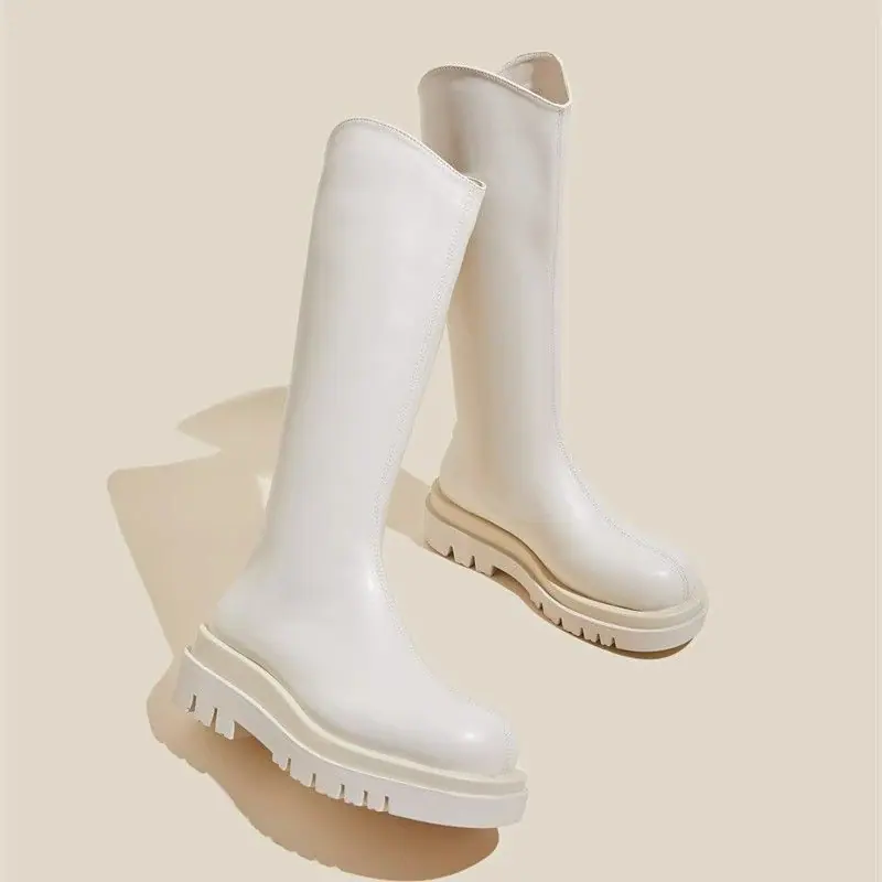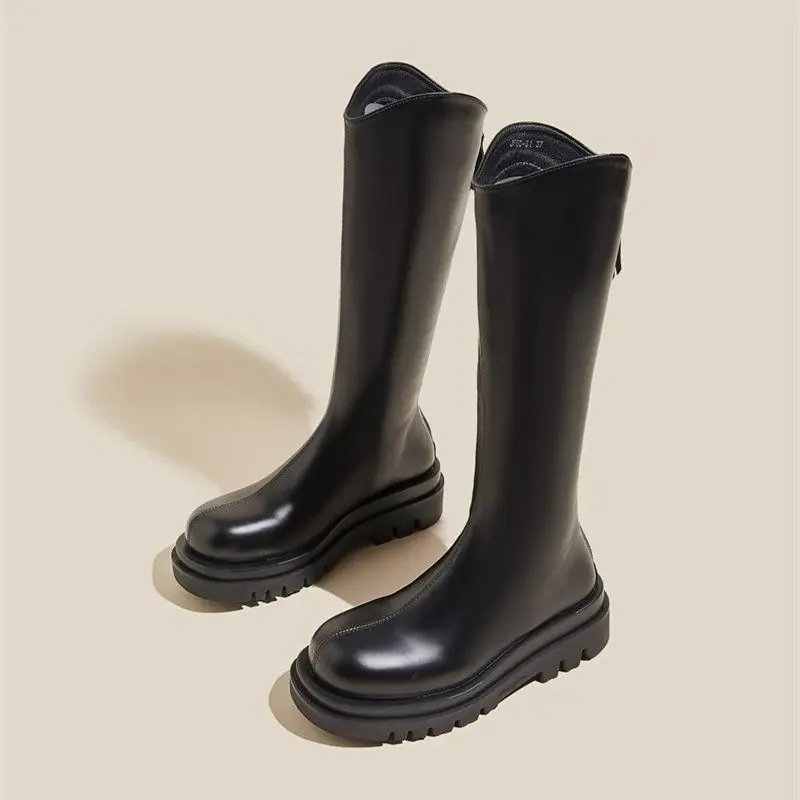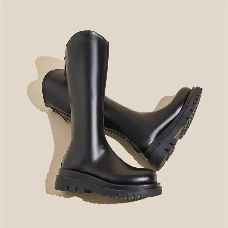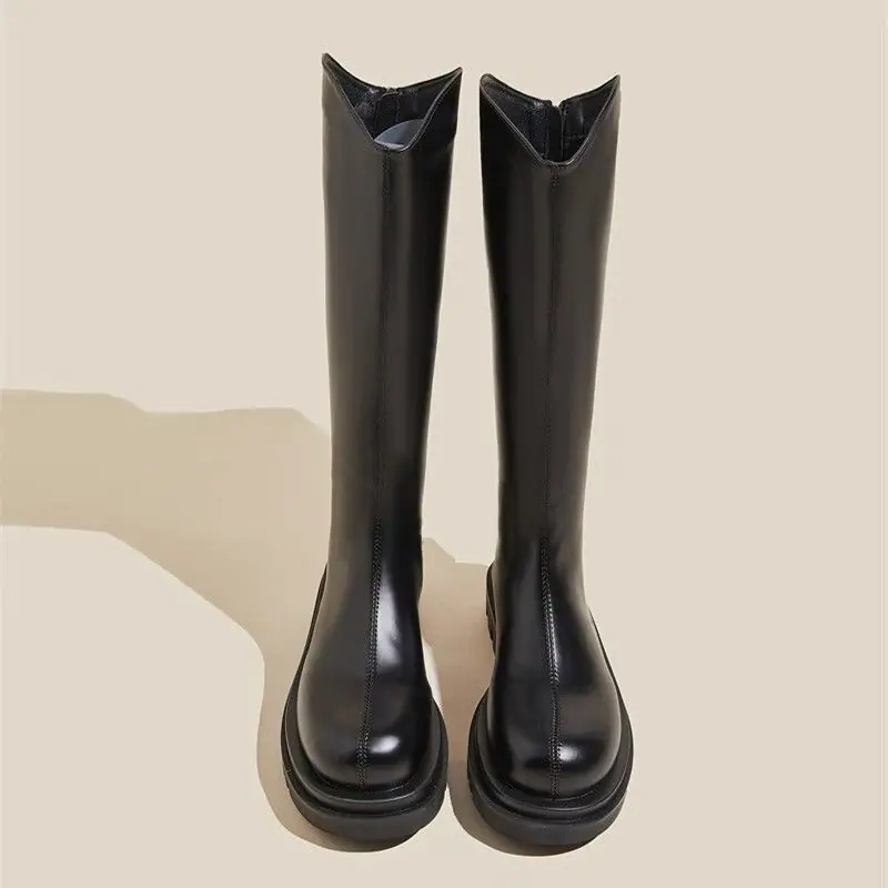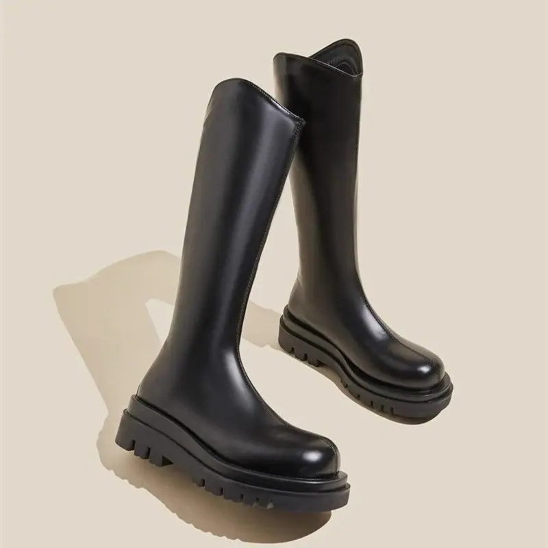 Botas largas hasta la rodilla de celebridad de internet para mujer 2025 otoño nuevo suela gruesa adelgazantes de fondo plano moda de caña alta botas de caballero tendencia