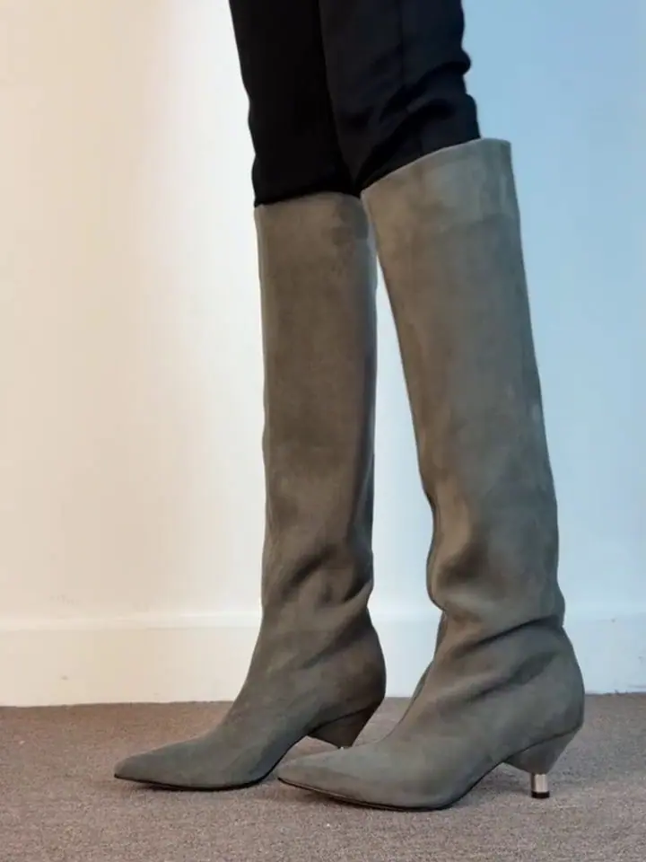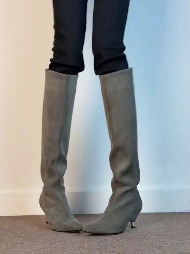 2025 nueva moda otoño e invierno versátil versátil adelgazante elástico botas skinny moda mujer punta puntiaguda tacón de aguja tacón alto botas largas