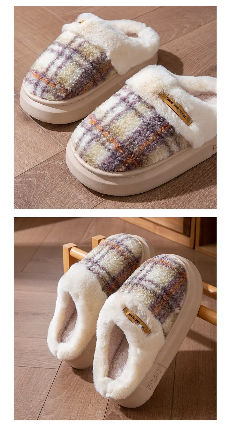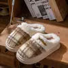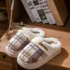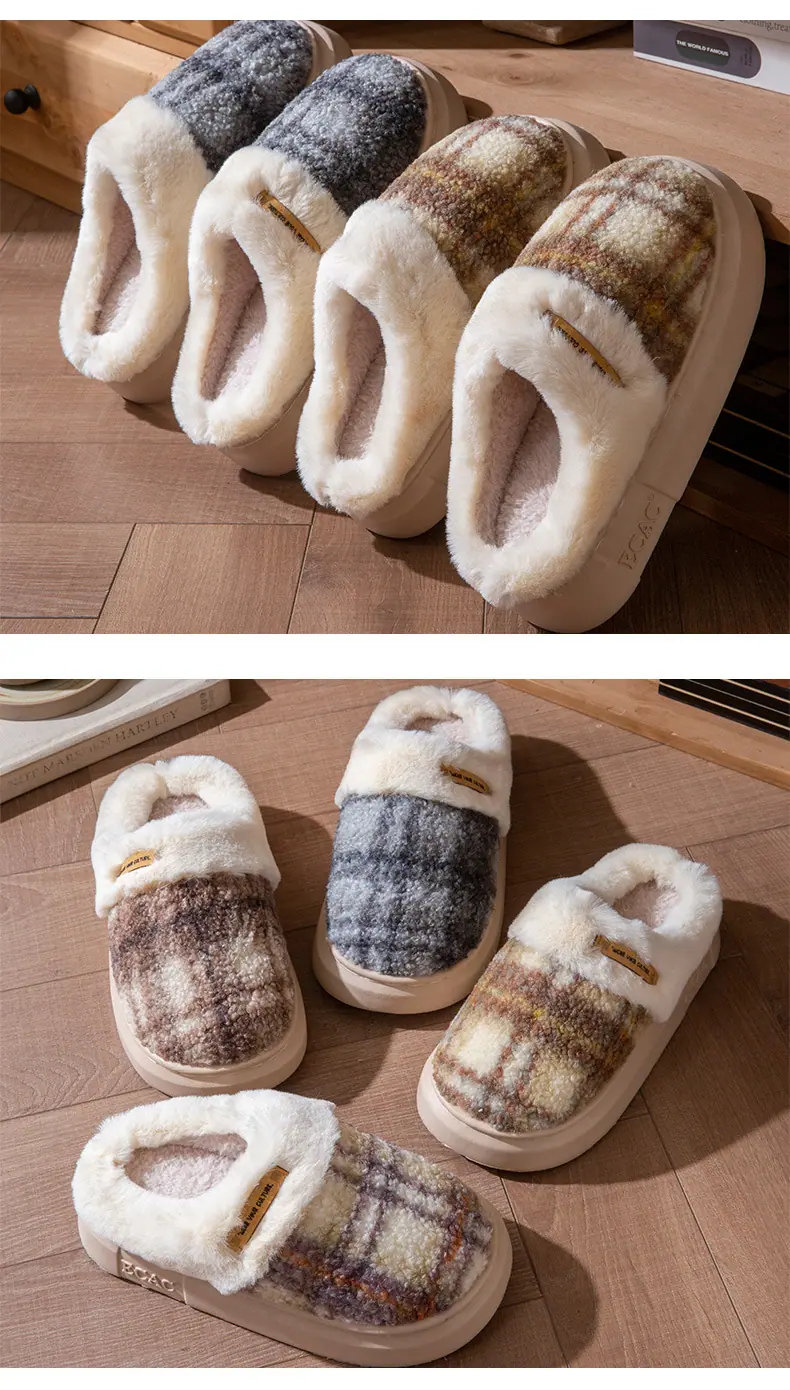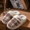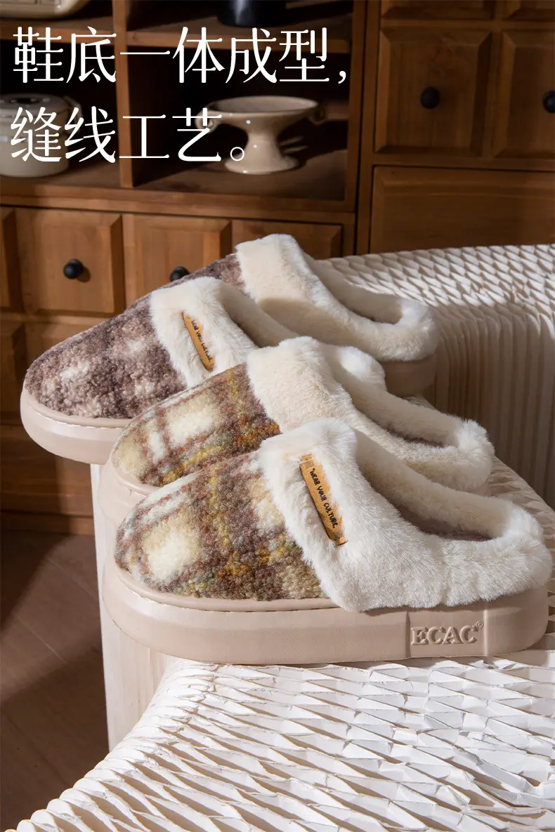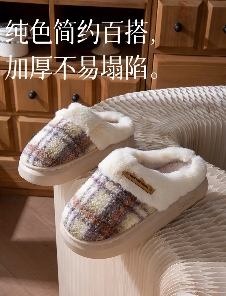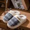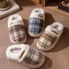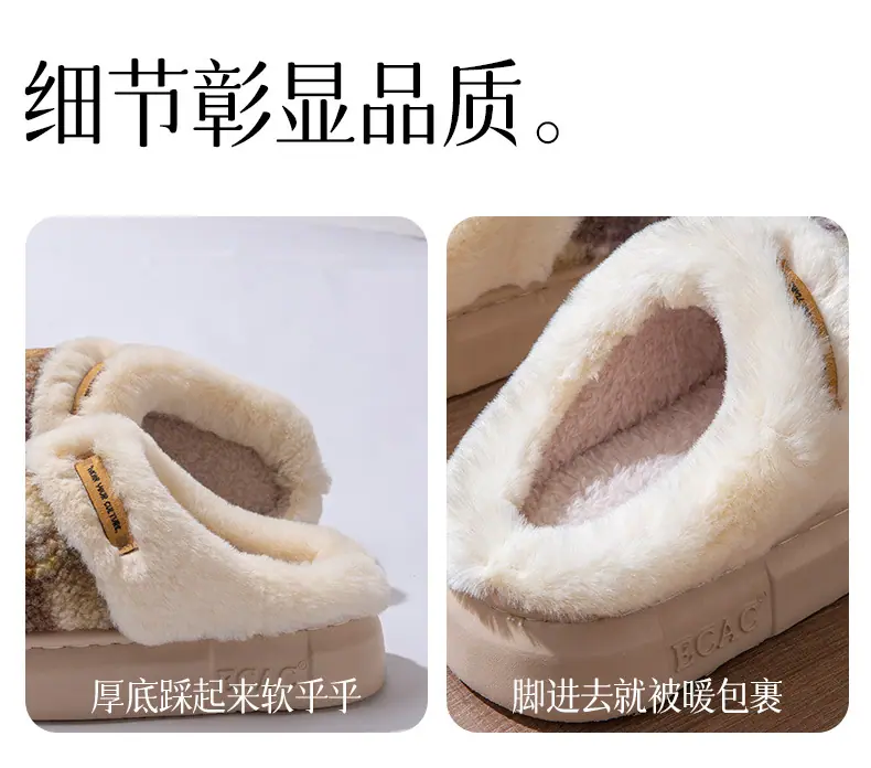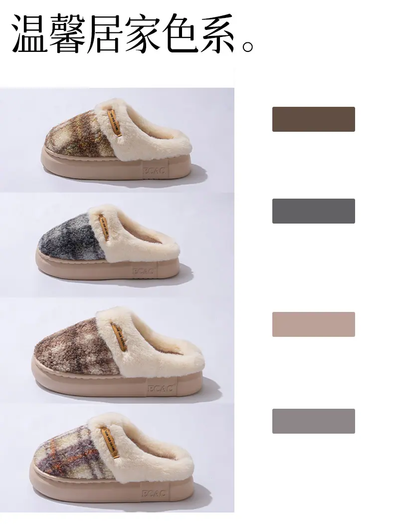 2025 Pantuflas de algodón antideslizantes de otoño e invierno para mujer, felpa, bloque de color, zapatos cálidos, para interior, para pareja, para el hogar, de algodón perezoso de suela gruesa