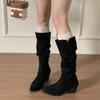 Botas Retro Francesas de Pila Botas Vaqueras Occidentales Otoño e Invierno 2025 Nuevo Botines Altos Estilo Coreano Transpirables de Moda para Mujer