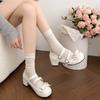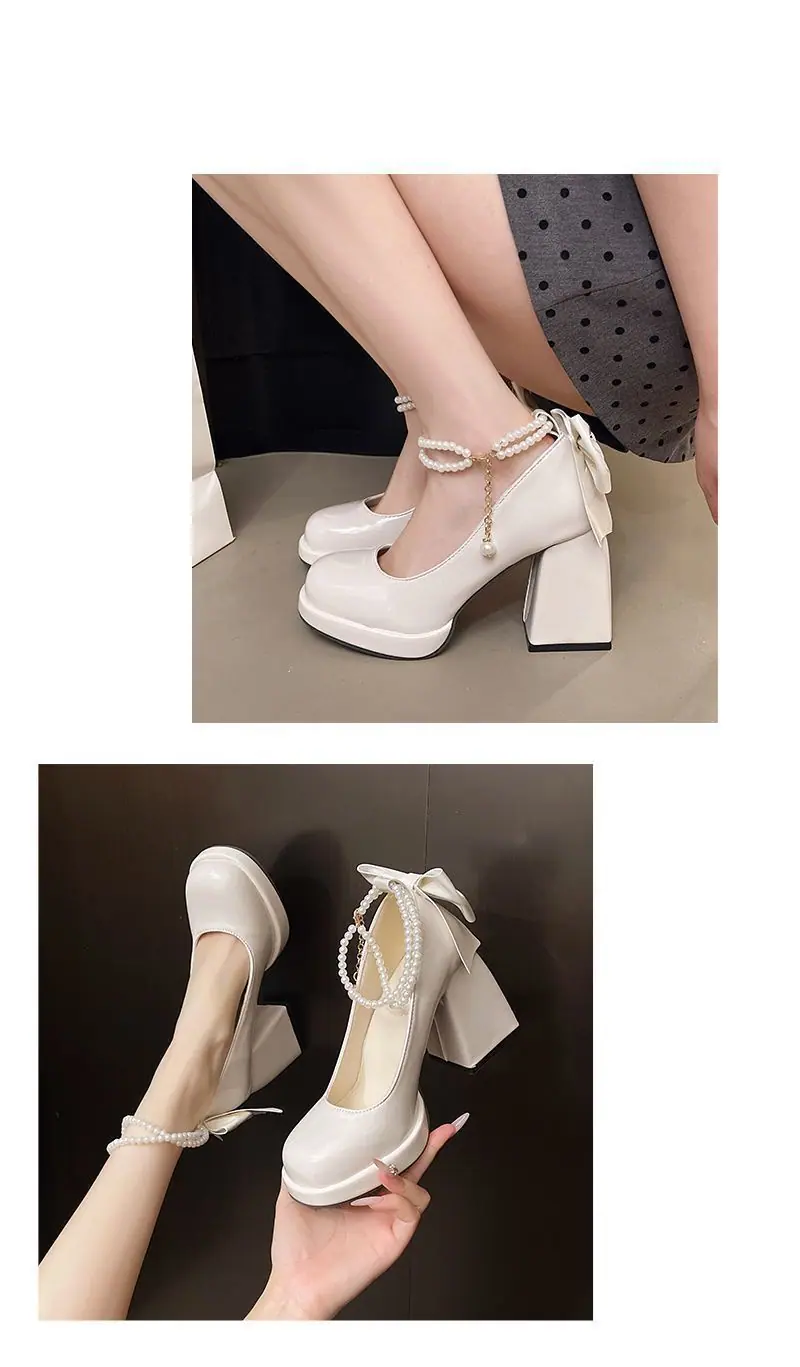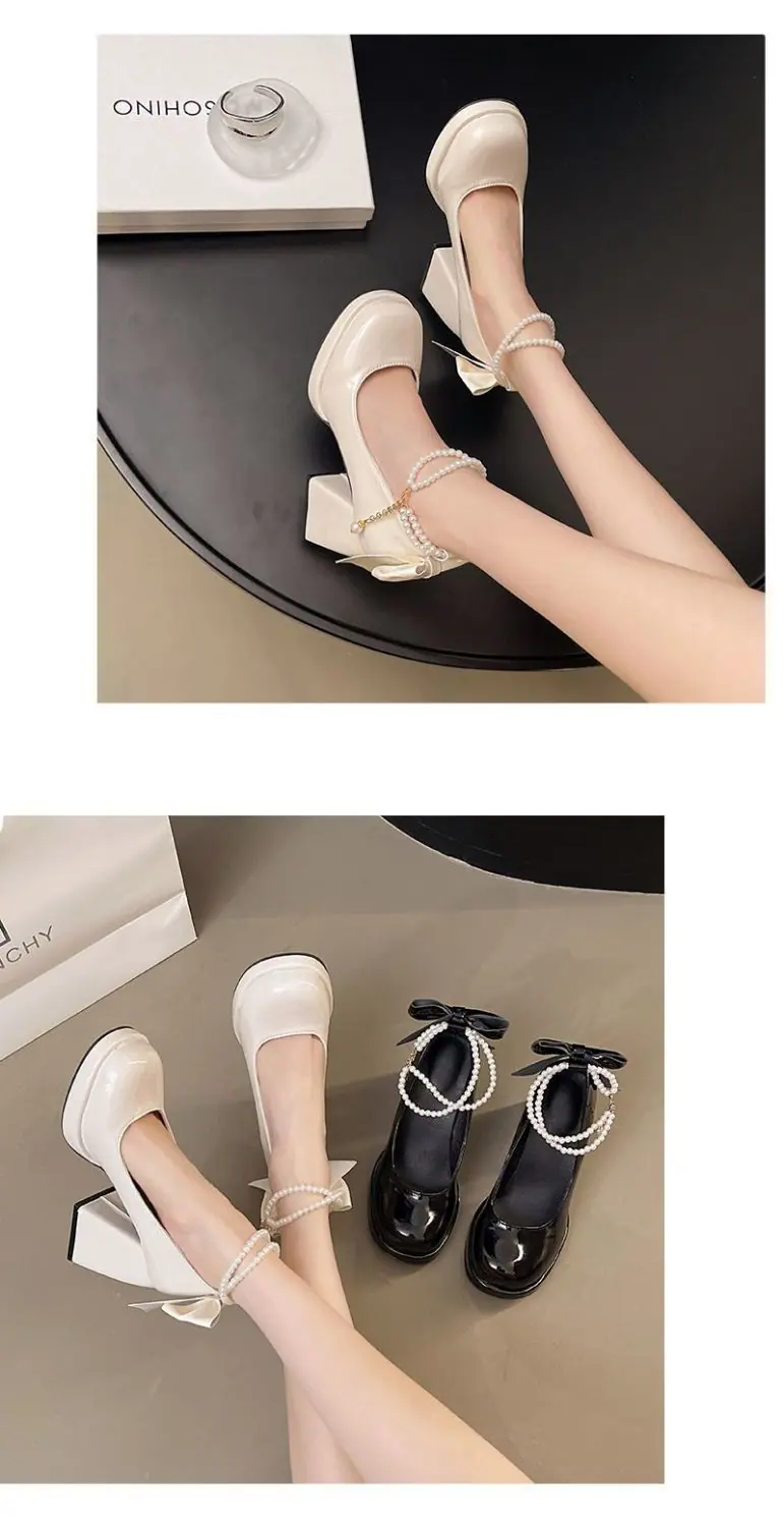 Zapatos de Moda de Estilo Hada de Una Tira Bailarinas de Perlas Mujer 2025 Primavera/Verano Nuevos Mary Janes Tacón Grueso con Falda Tacones Altos