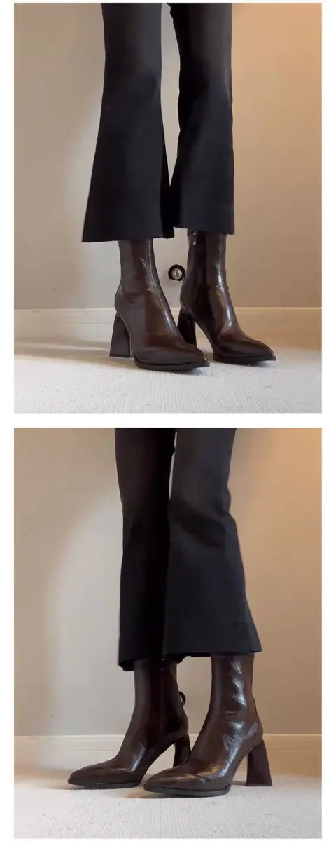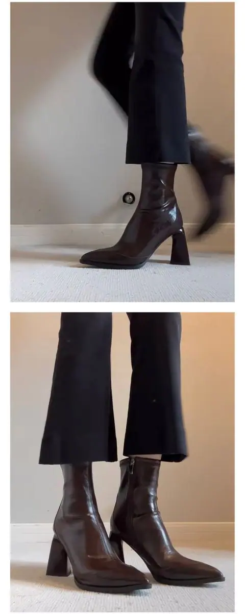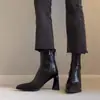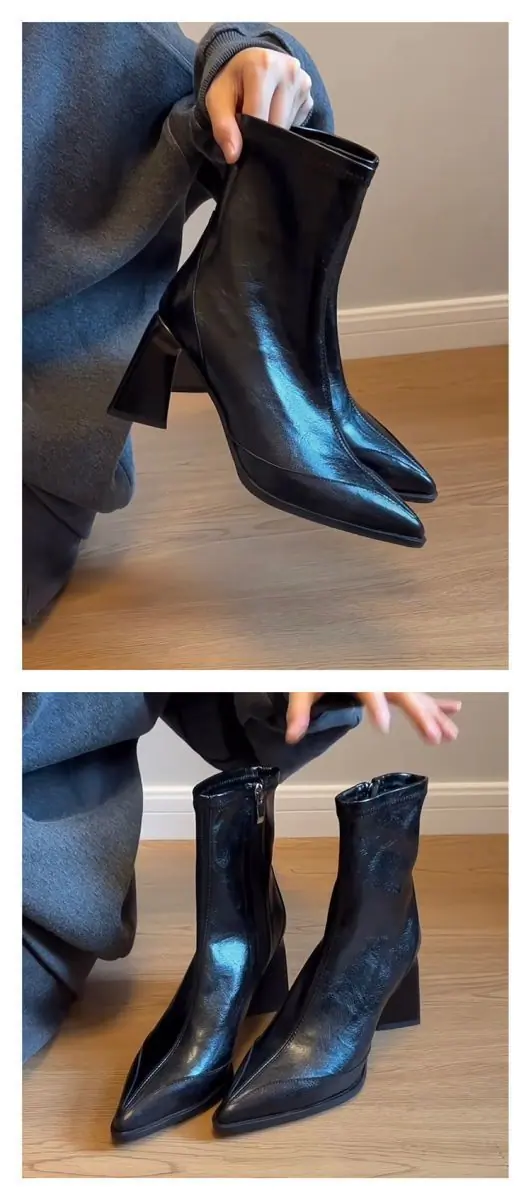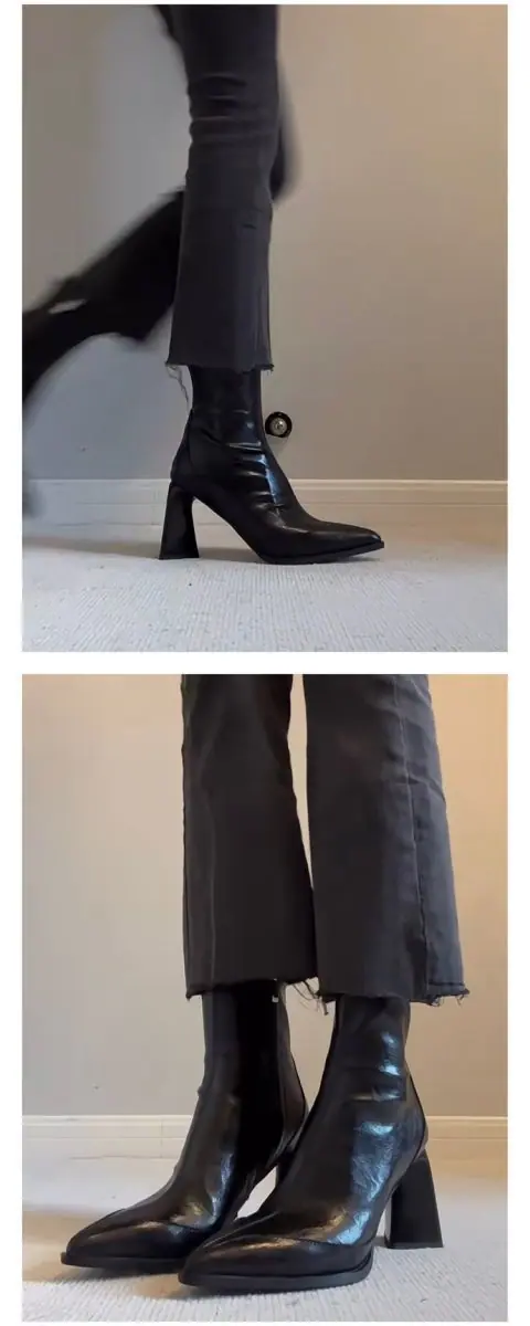 Tacones Altos de Punta para Mujer Otoño Invierno 2025 Nuevos Negros Cierre Lateral Tacón de Aguja Botines Retro Franceses Elásticos Ajustados