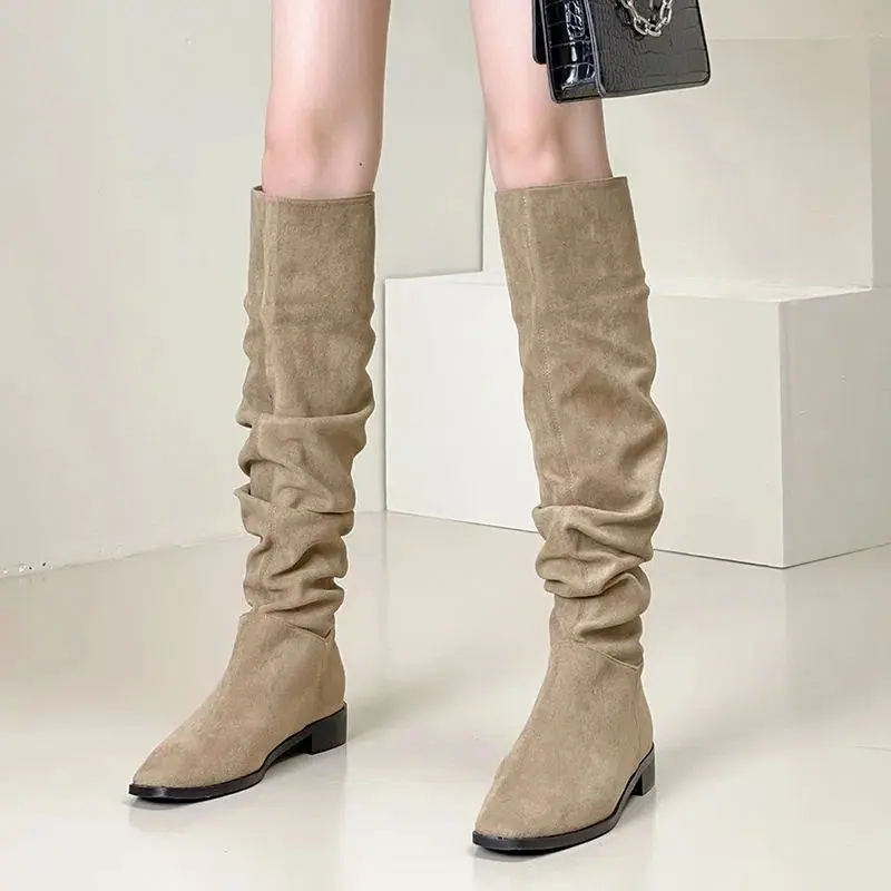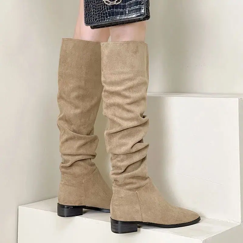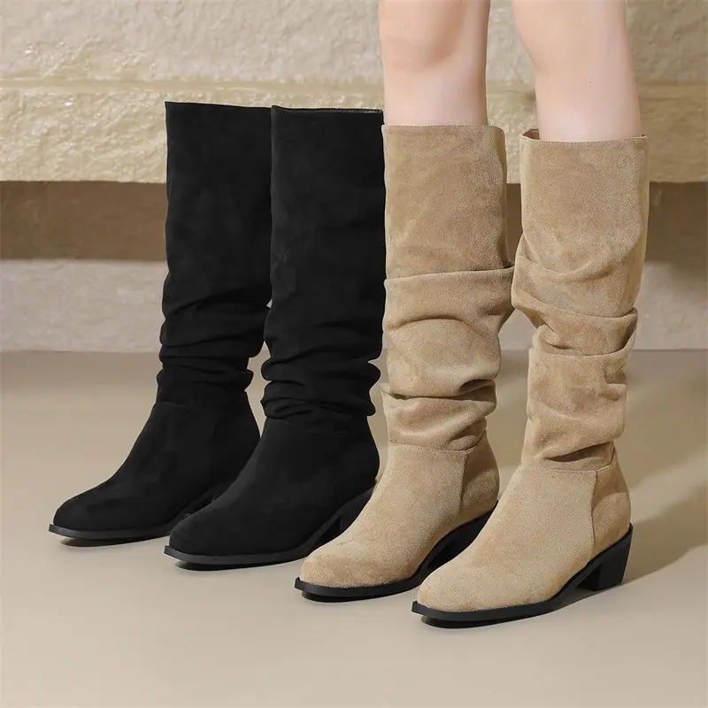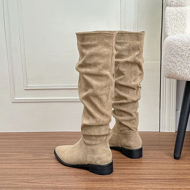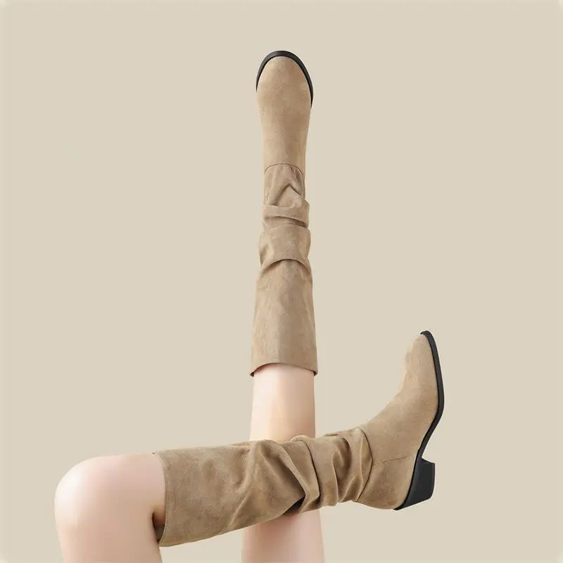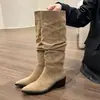 Botas moda zapatos de mujer tacón grueso botas de montar adelgazantes por encima de la rodilla estilo vintage caliente botas slouch 2025 nuevo