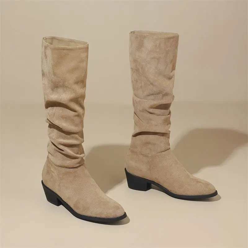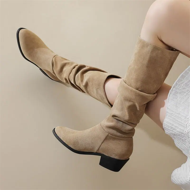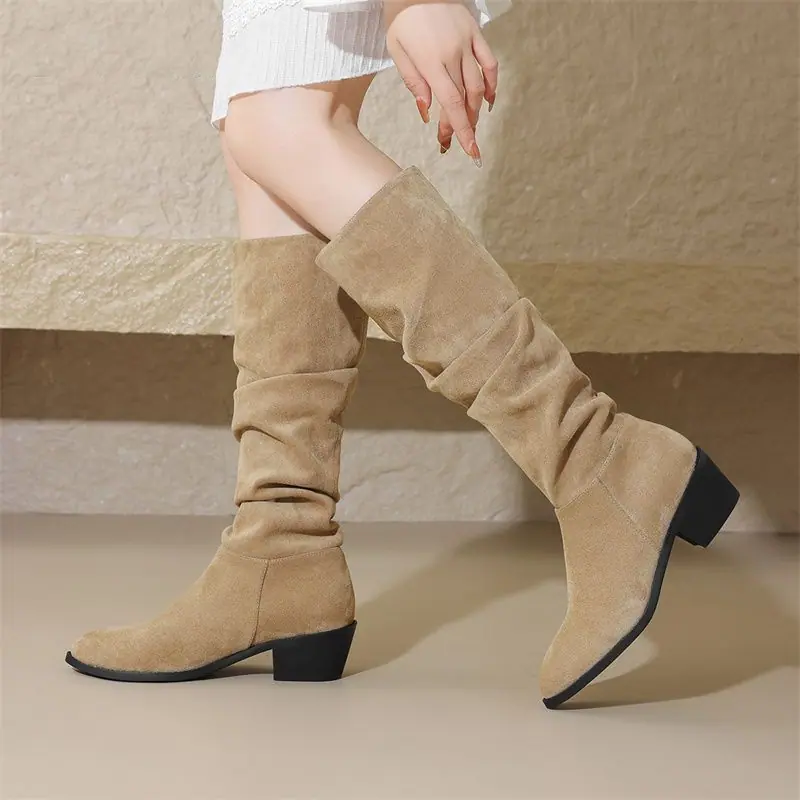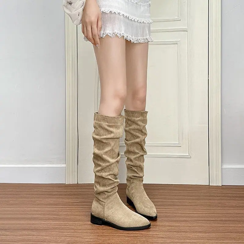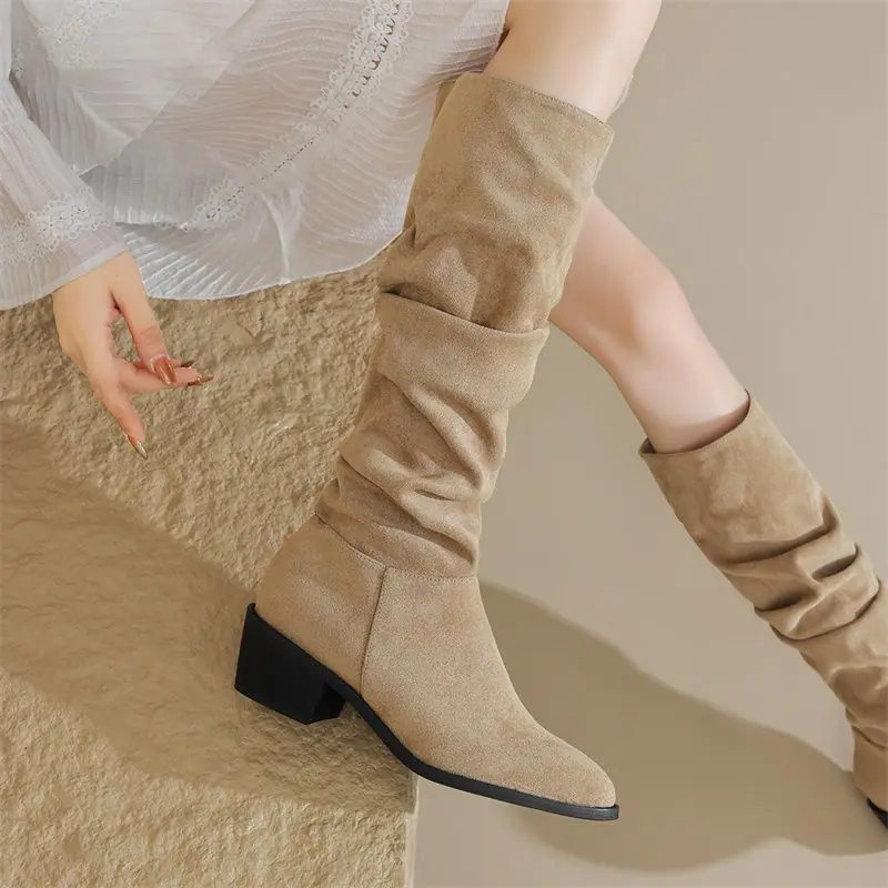 Botas moda zapatos de mujer tacón grueso botas de montar adelgazantes por encima de la rodilla estilo vintage caliente botas slouch 2025 nuevo