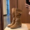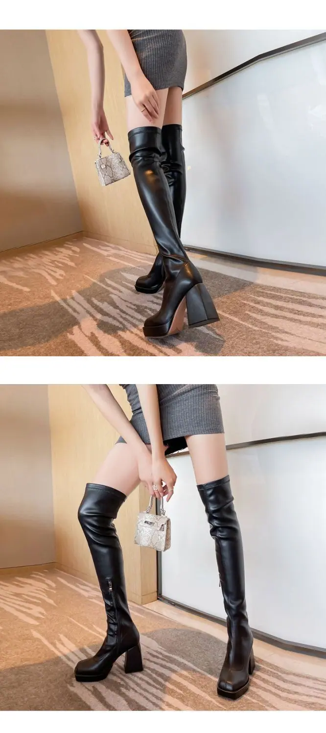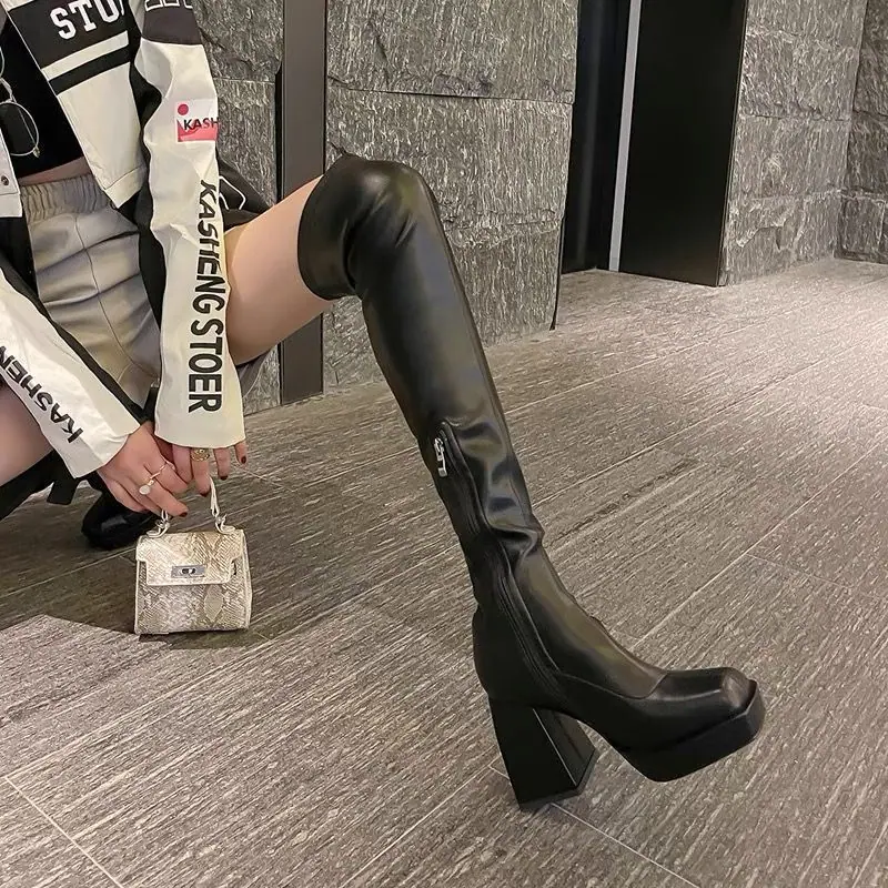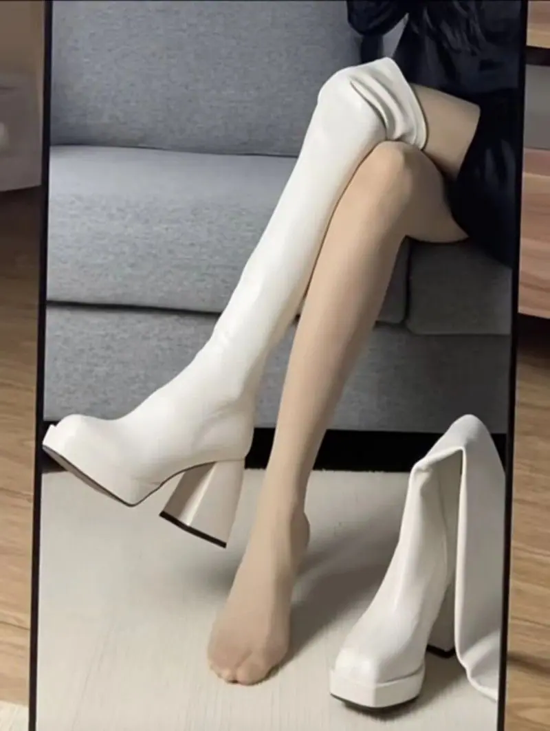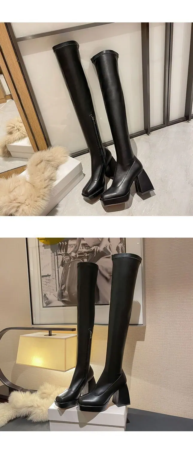 Botas delgadas estilo hada francés versátiles botas altas por encima de la rodilla 2025 otoño e invierno nuevas botas altas de plataforma de tacón alto