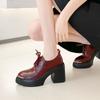 Compra Zapatos de Cordones con Tacón Ultra Alto de 10 cm en Burdeos Profundo, Nuevo Estilo Primavera 2026, Puntera Redonda, Suela Gruesa, Tacón Grueso, Zapatos de Cuero que Aumentan la Altura al por mayor en Joom.pro