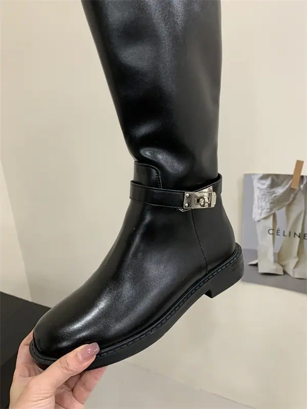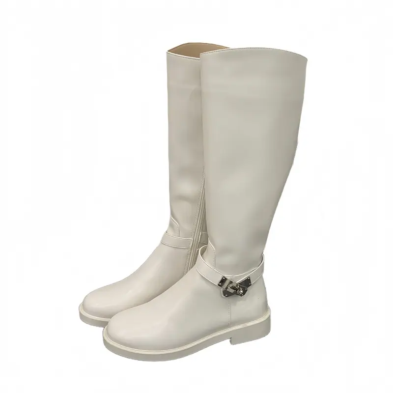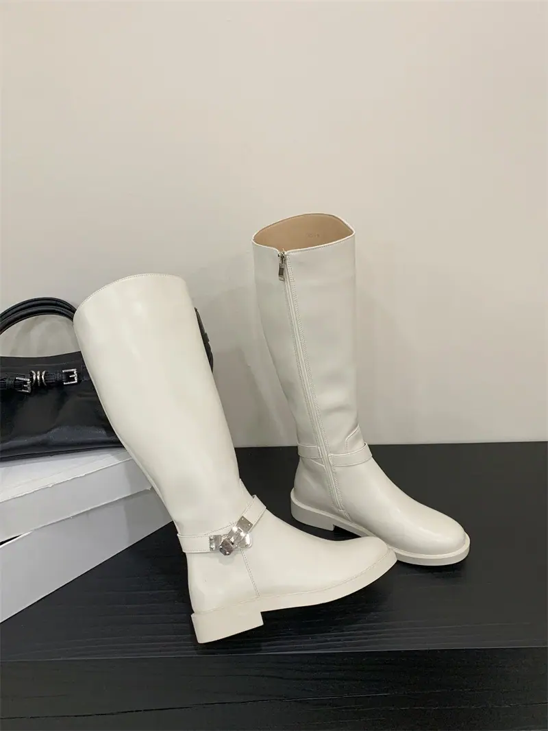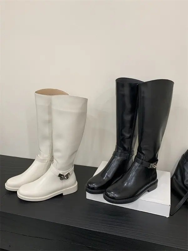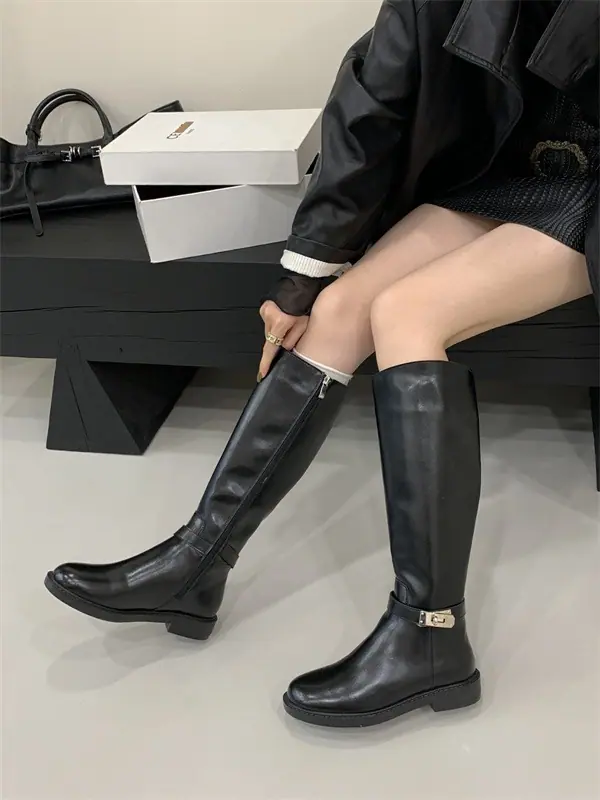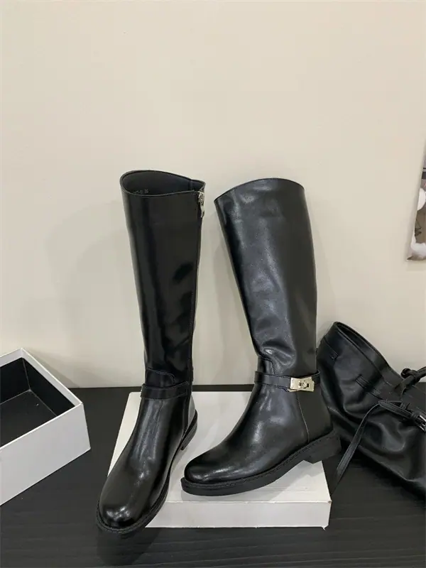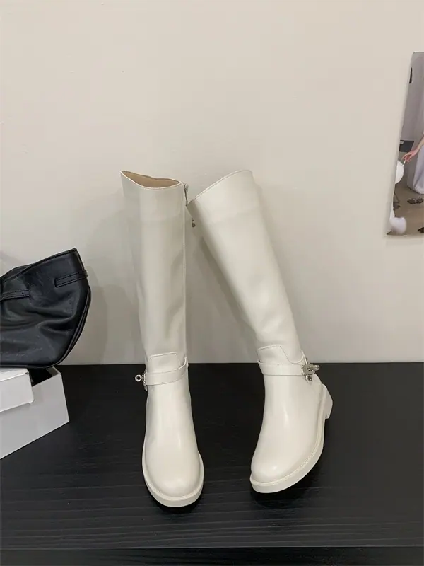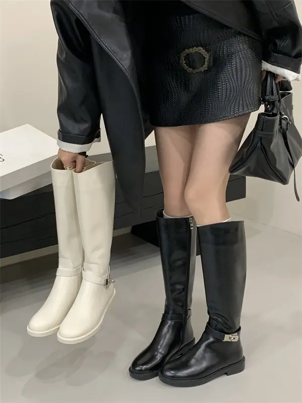 Botas Largas por Encima de la Rodilla para Mujer Estilo Británico con Hebilla Metálica 2025 Otoño/Invierno Nuevas Botas de Caballero de Caña Alta con Tacón Grueso