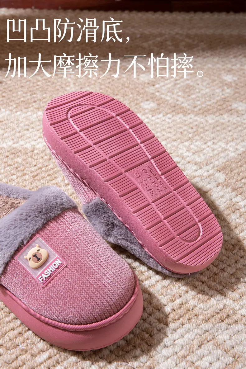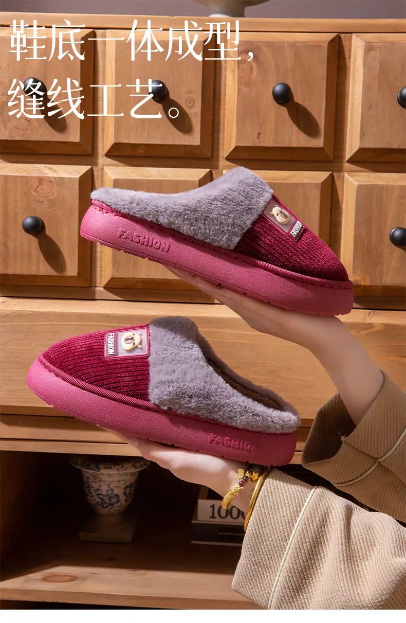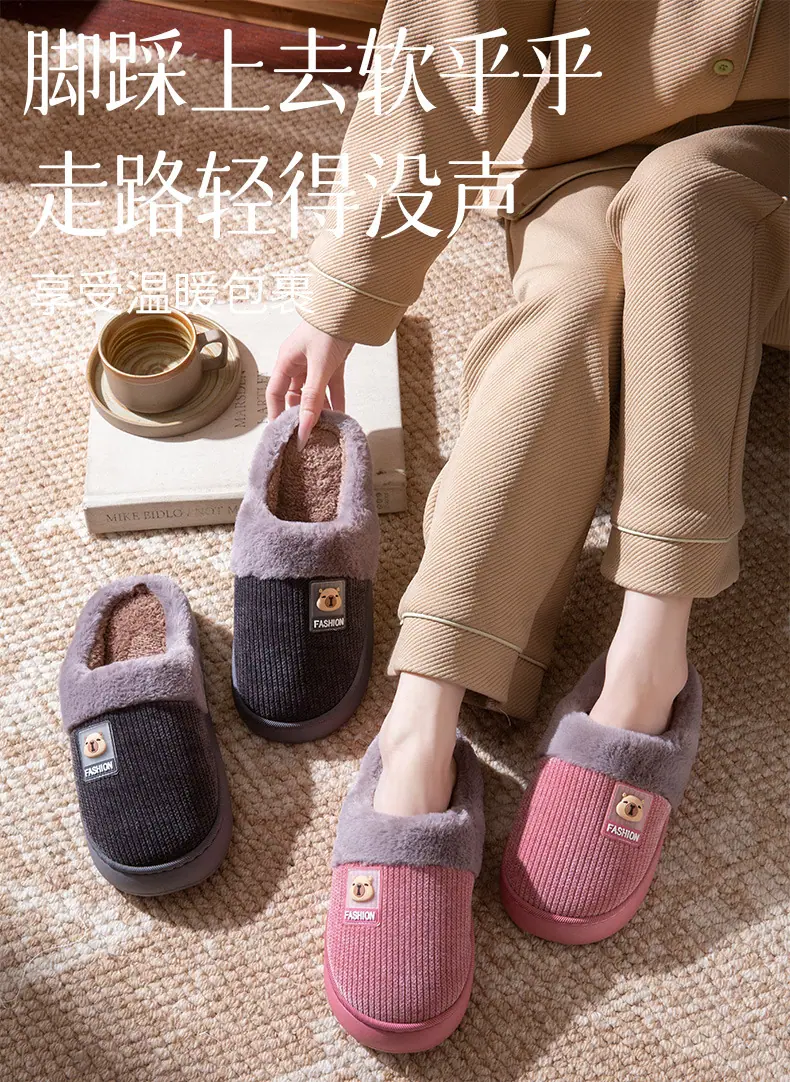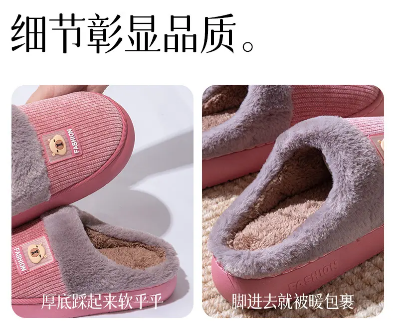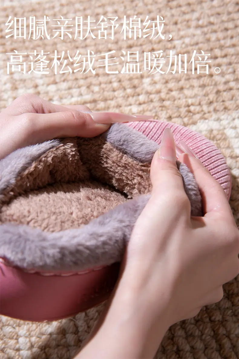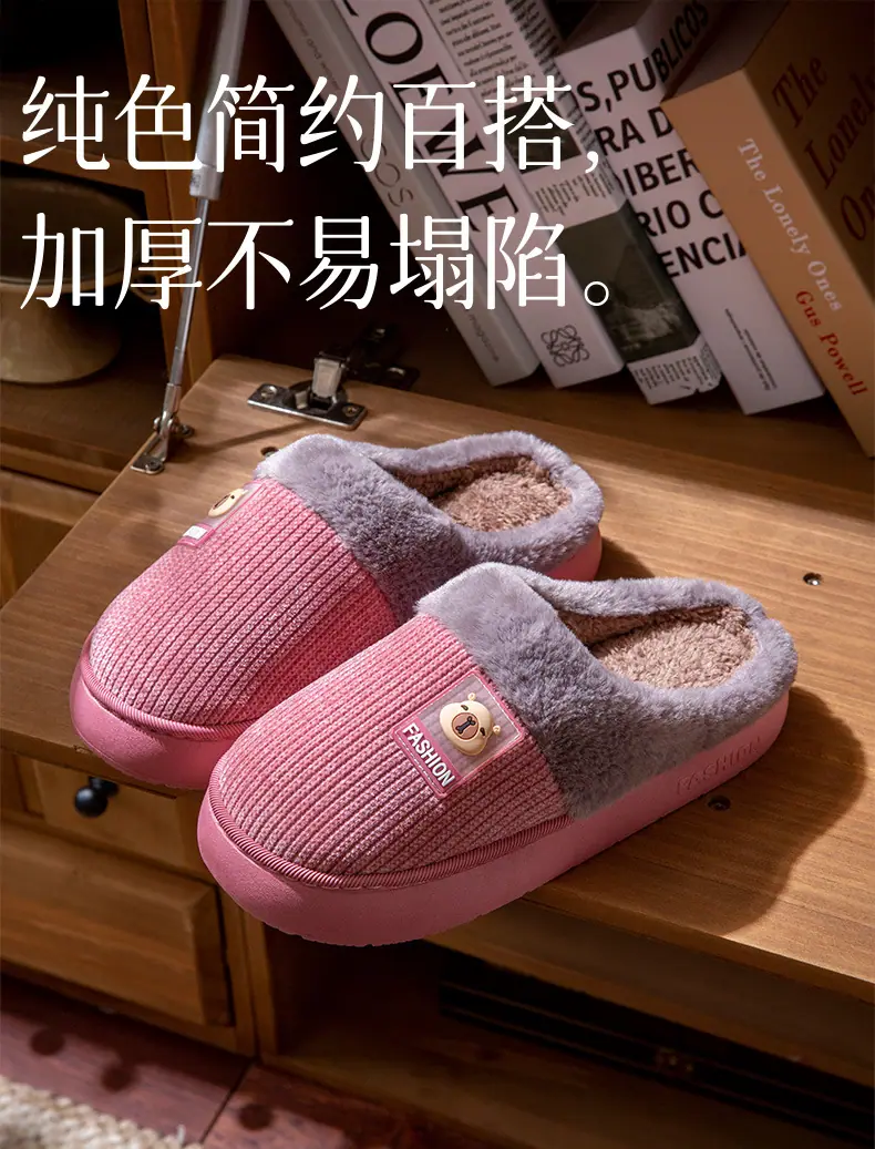 2025 Invierno Bolsa de Pareja Tacón Zapatillas de Algodón Interior Hogar Antideslizante Resistente al Desgaste Cálido Suela Gruesa Sensación de Pisar Mierda Zapatos de Algodón Hombres